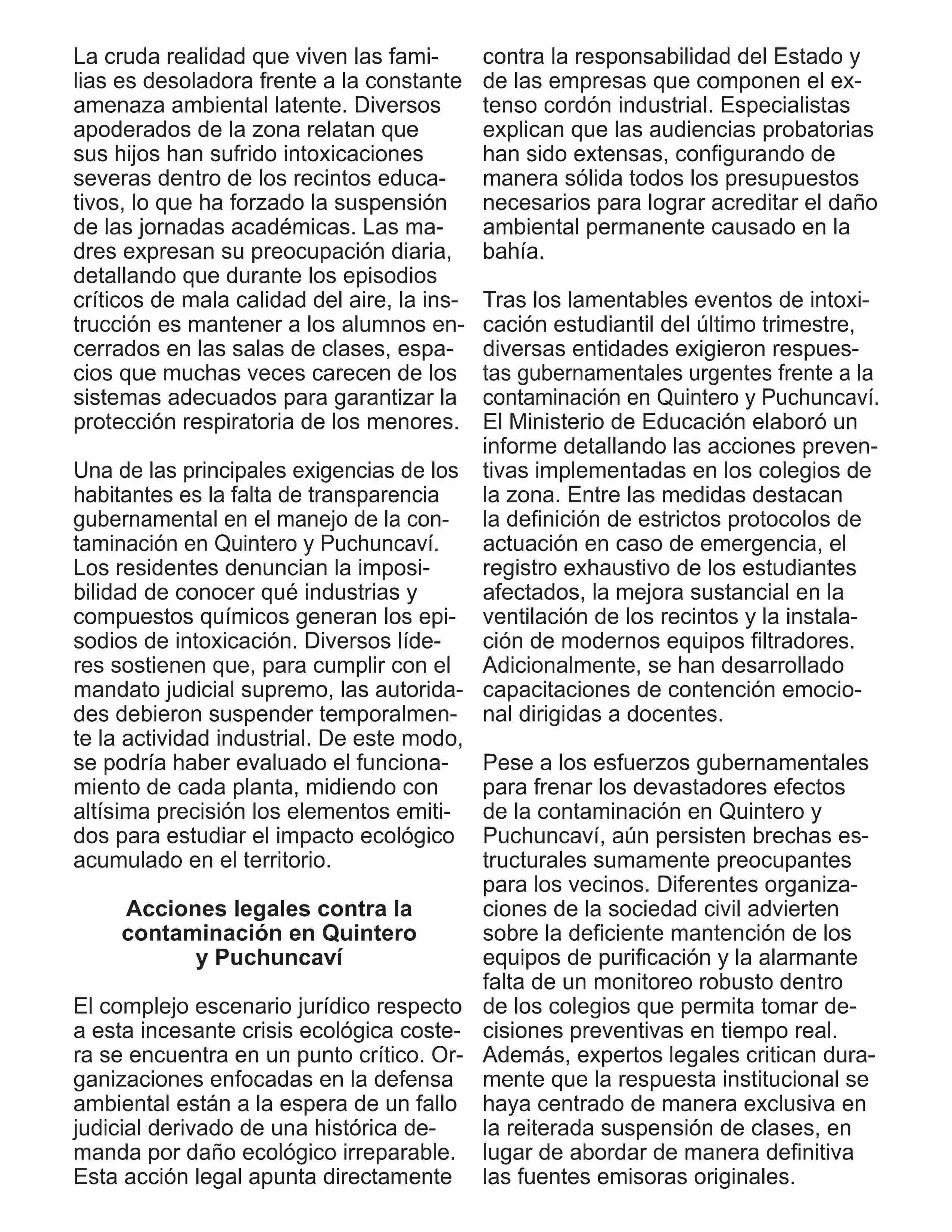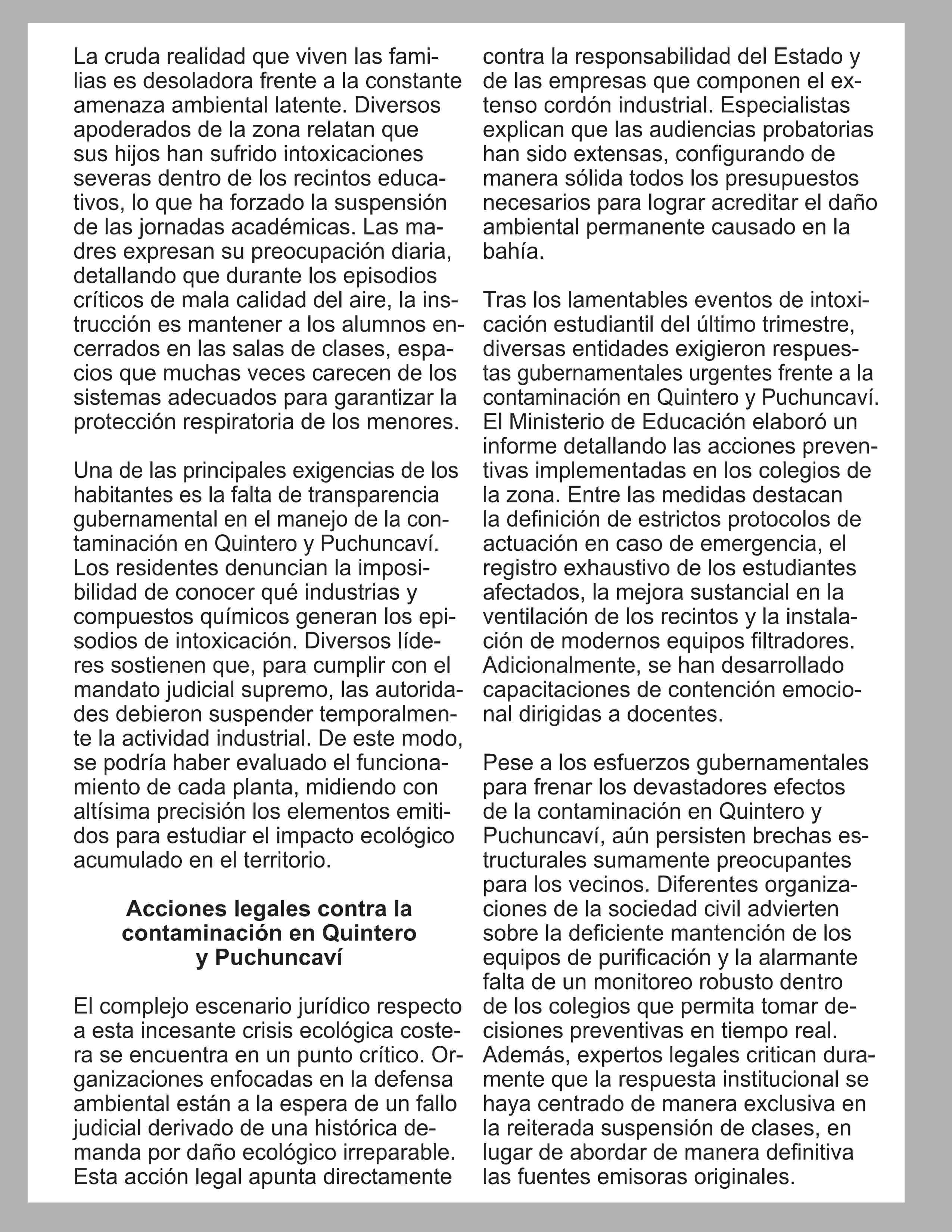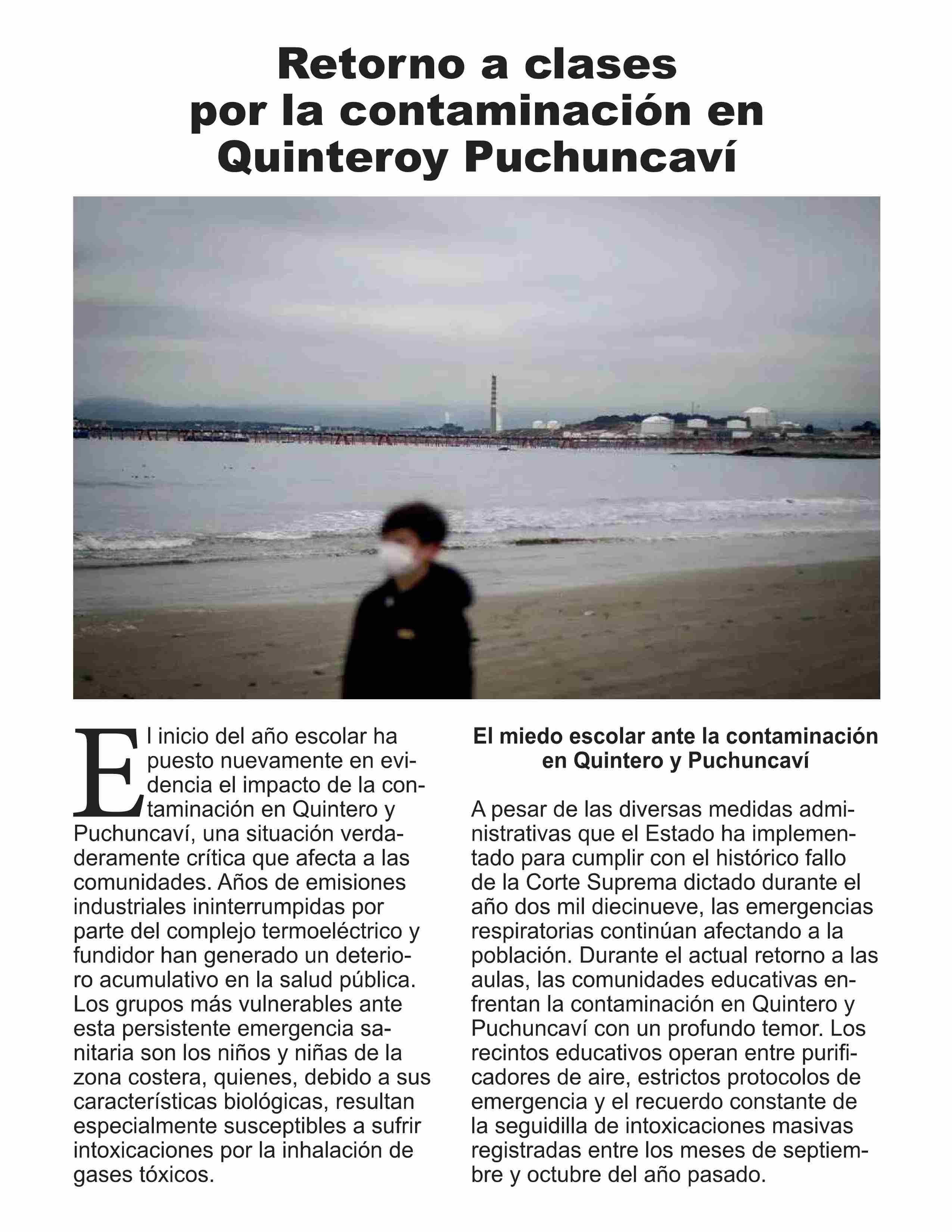 Título: Retorno a clases por la contaminación en Quinteroy Puchuncaví