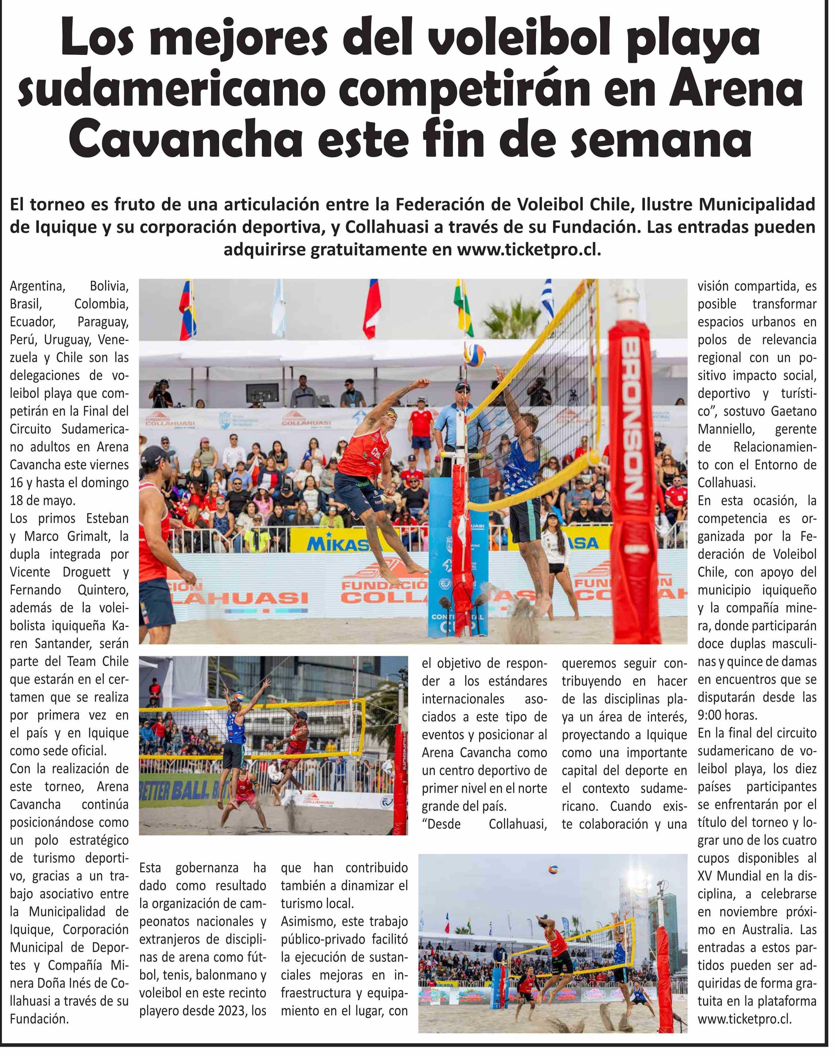 | Título: | Los mejores del voleibol playa sudamericano competirán en Arena Cavancha este fin de semana |