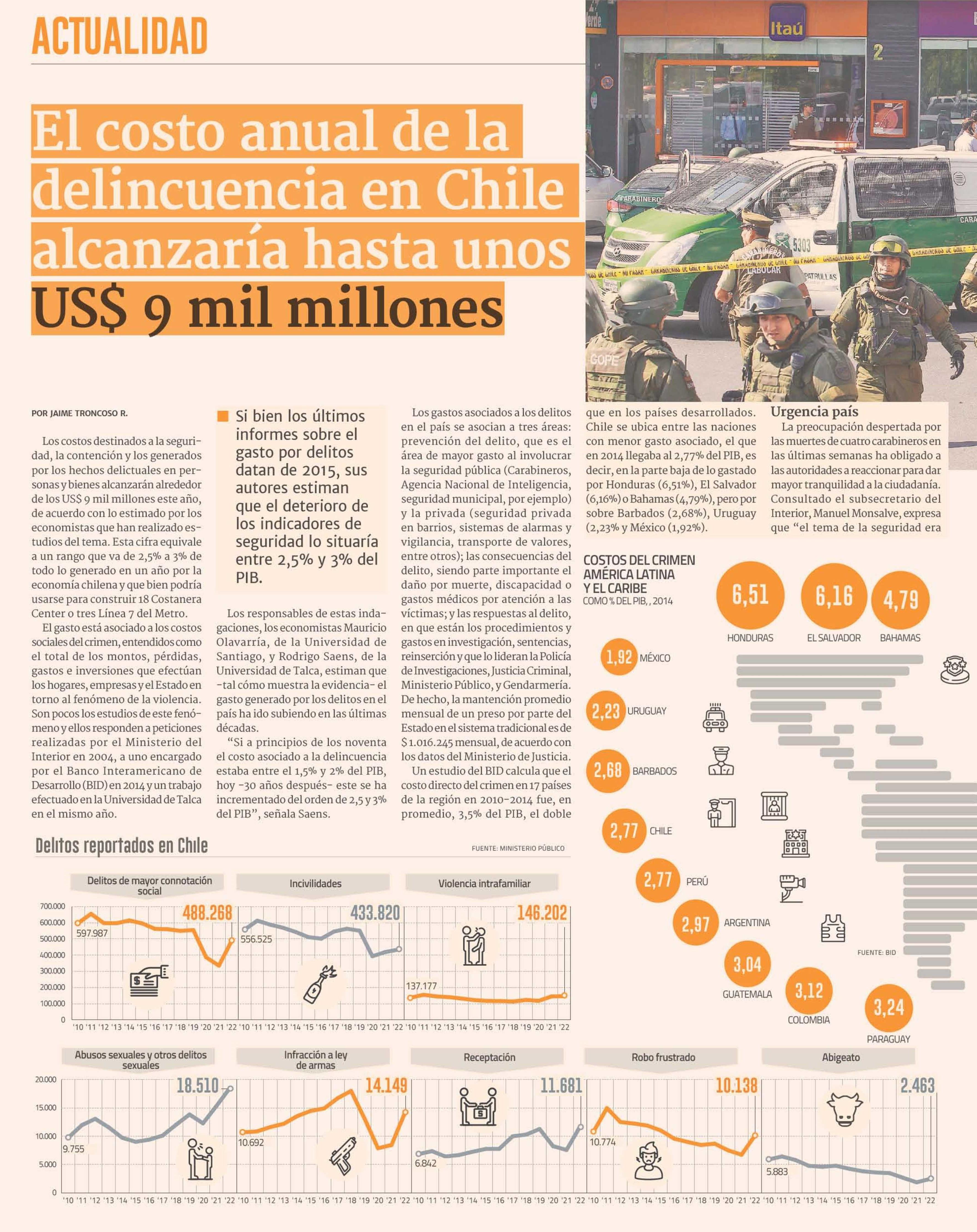 | Título: | El costo anual de la delincuencia en Chile alcanzaría hasta unos US$ 9 mil millones |