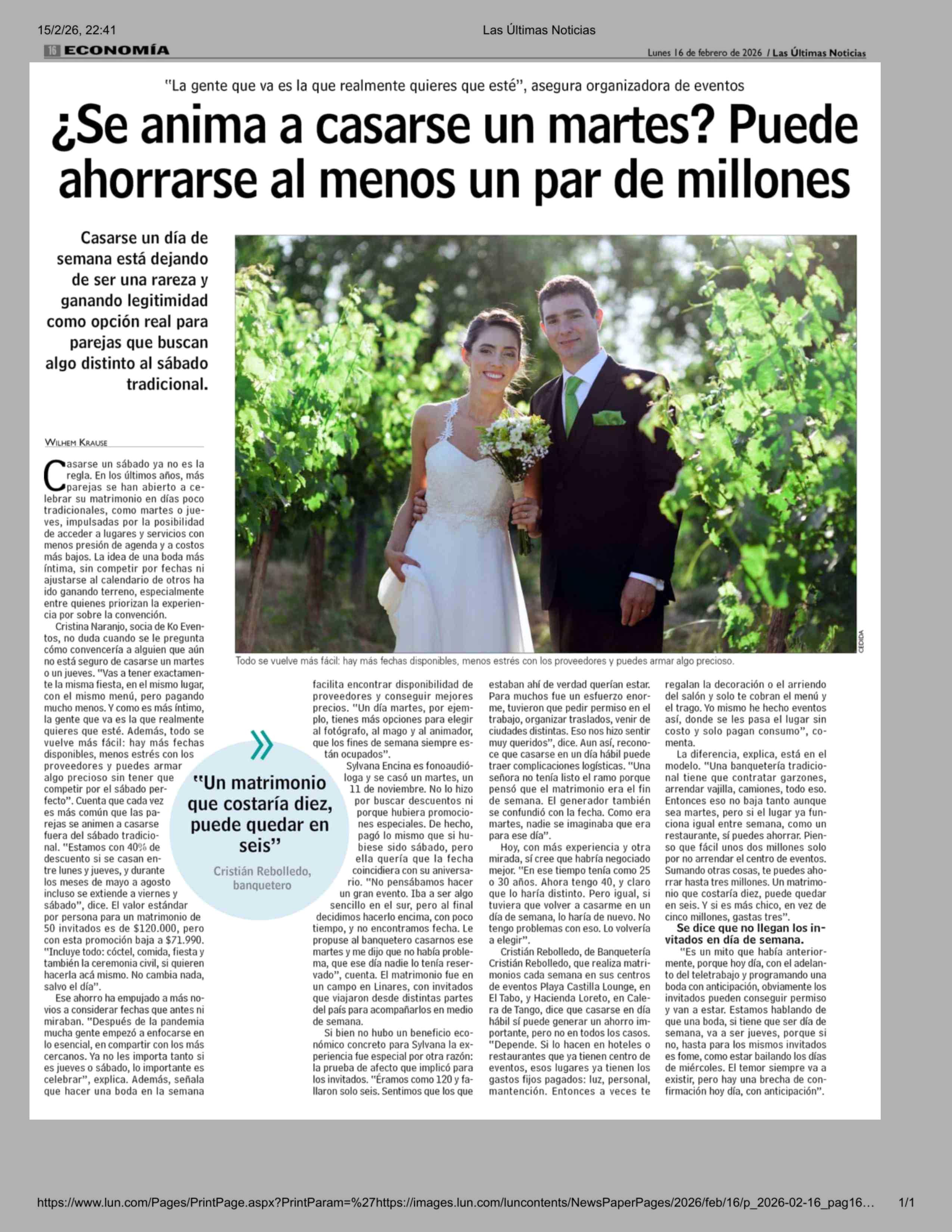 ¿Se anima a casarse un martes? Puede ahorrarse al menos un par de millones 16-02-2026 Las Últimas Noticias |
