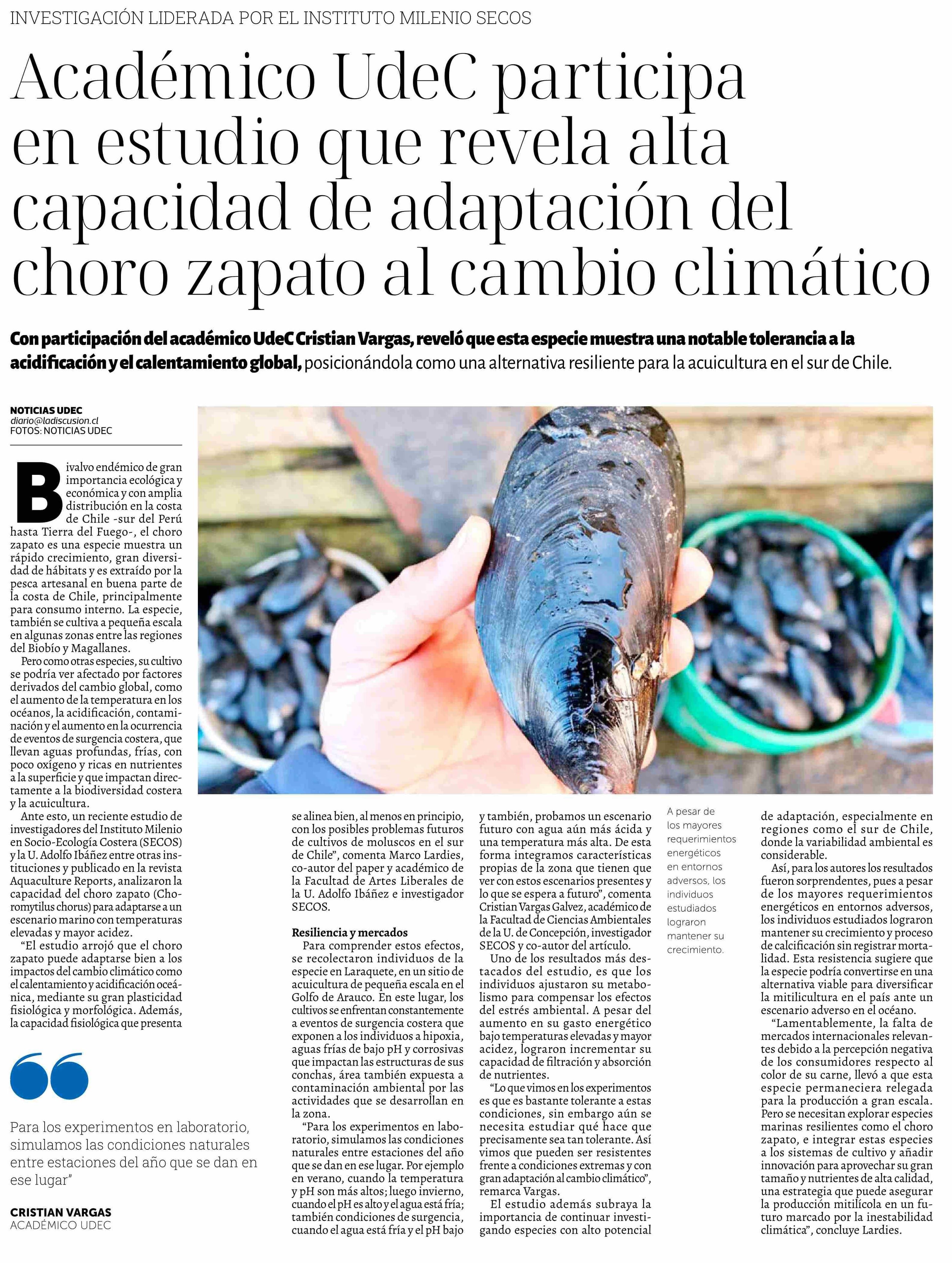 Título: Académico UdeC participa en estudio que revela alta capacidad de adaptación del choro zapato al cambio climático