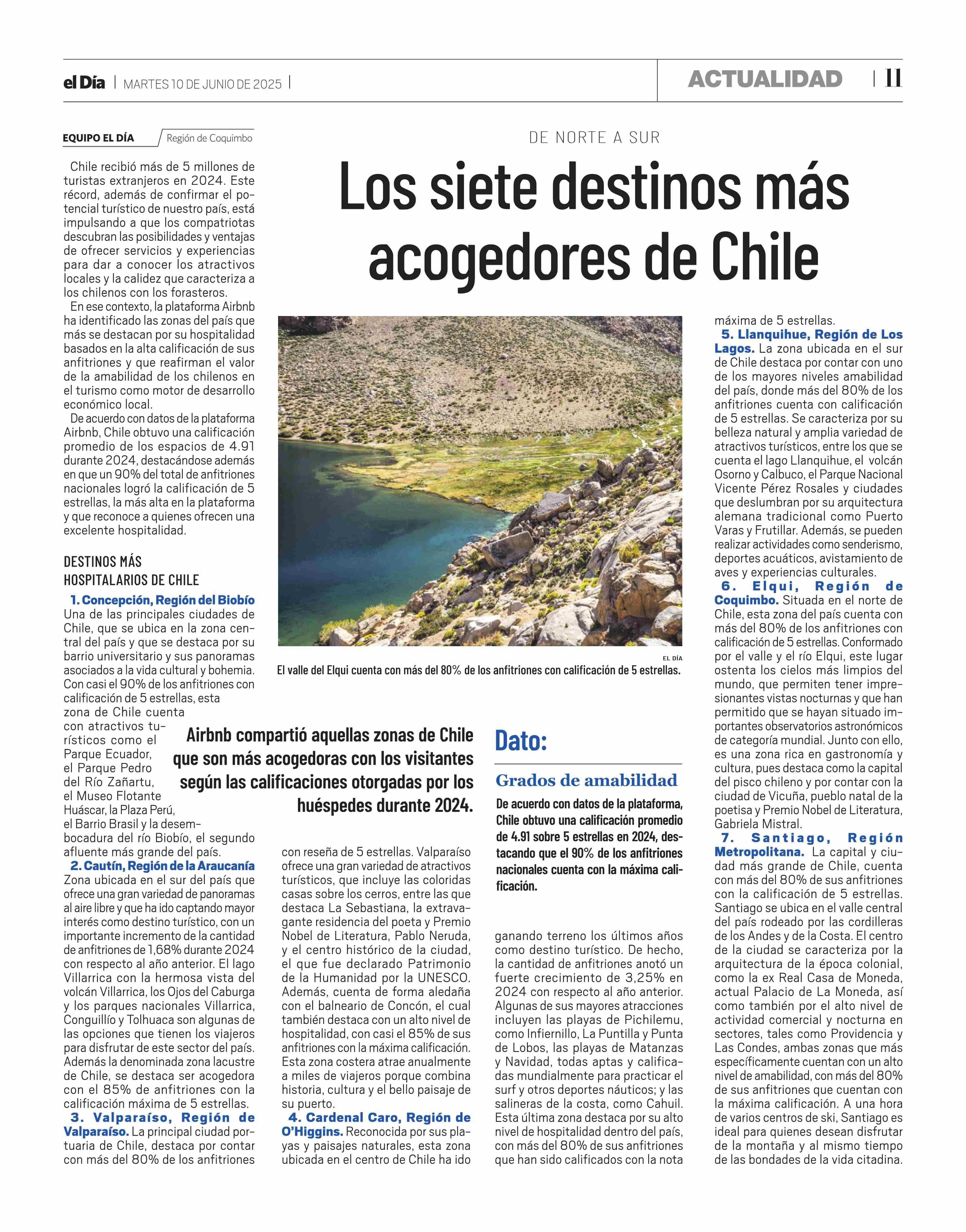 Los siete destinos más acogedores de Chile 10-06-2025 El Día |