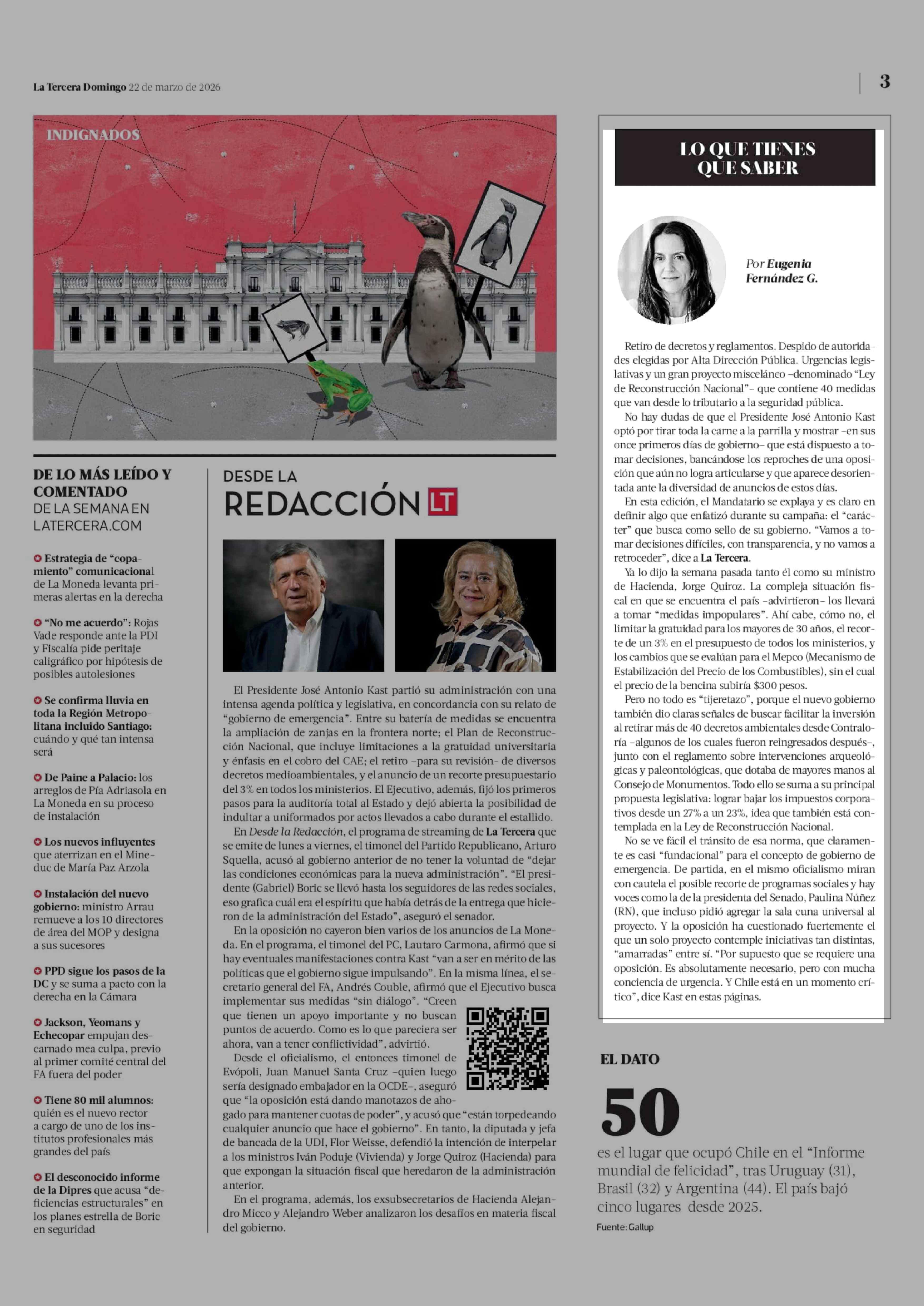 Columnas de Opinión: LO QUE TIENES QUE SABER 22-03-2026 La Tercera |