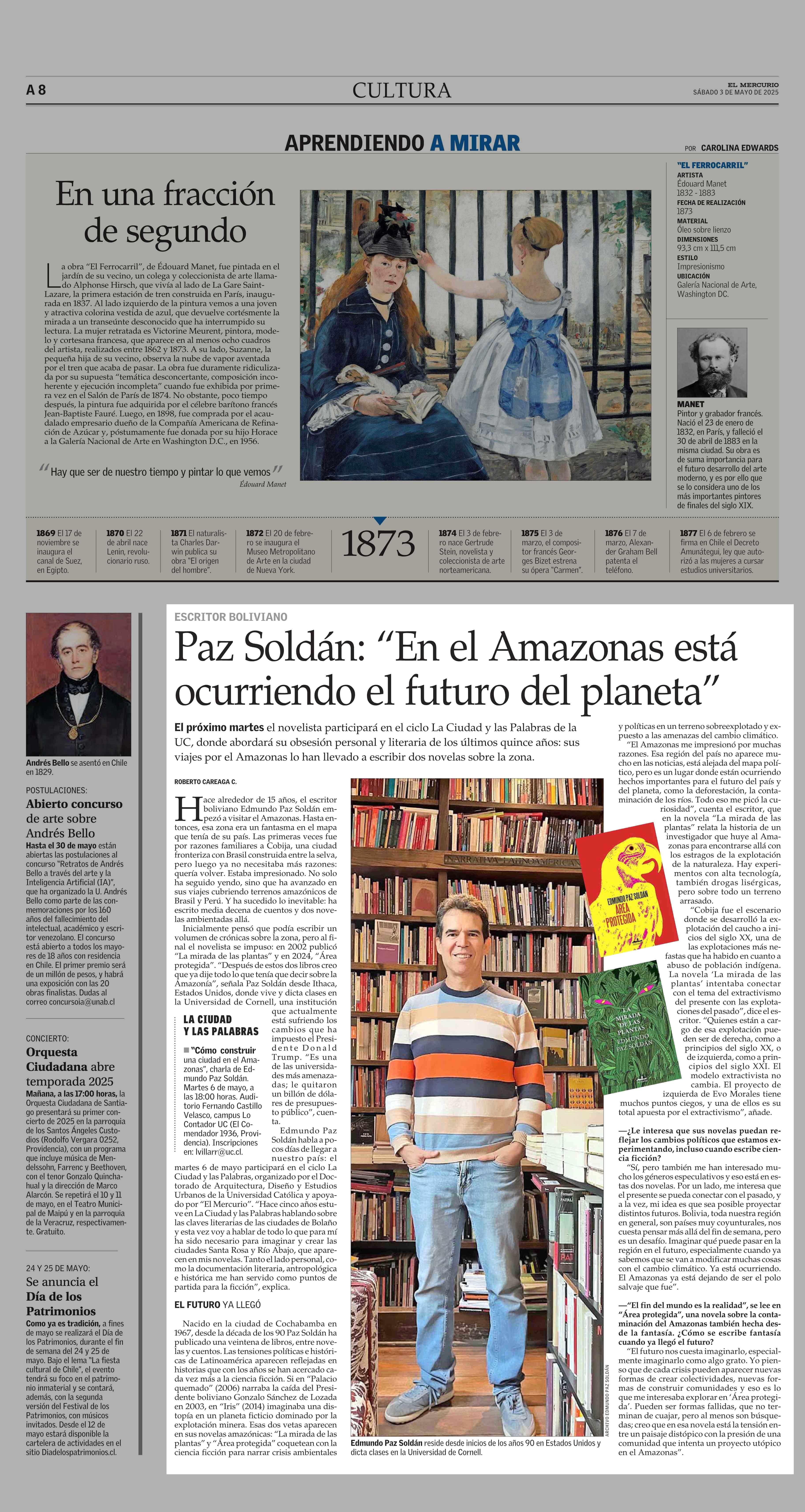 Paz Soldán: “En el Amazonas está ocurriendo el futuro del planeta” 03-05-2025 El Mercurio |