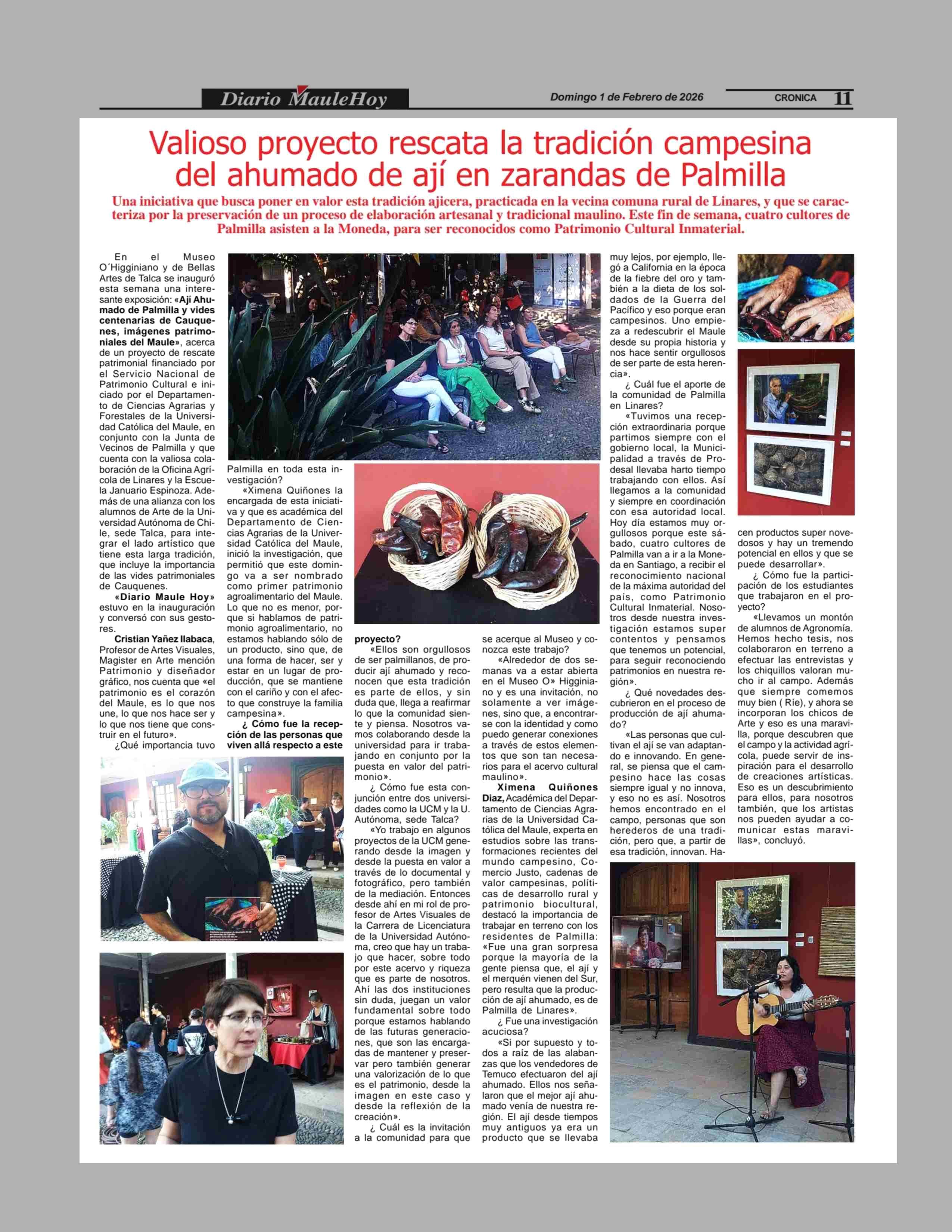 Título: Valioso proyecto rescata la tradición campesina del ahumado de ají en zarandas de Palmilla