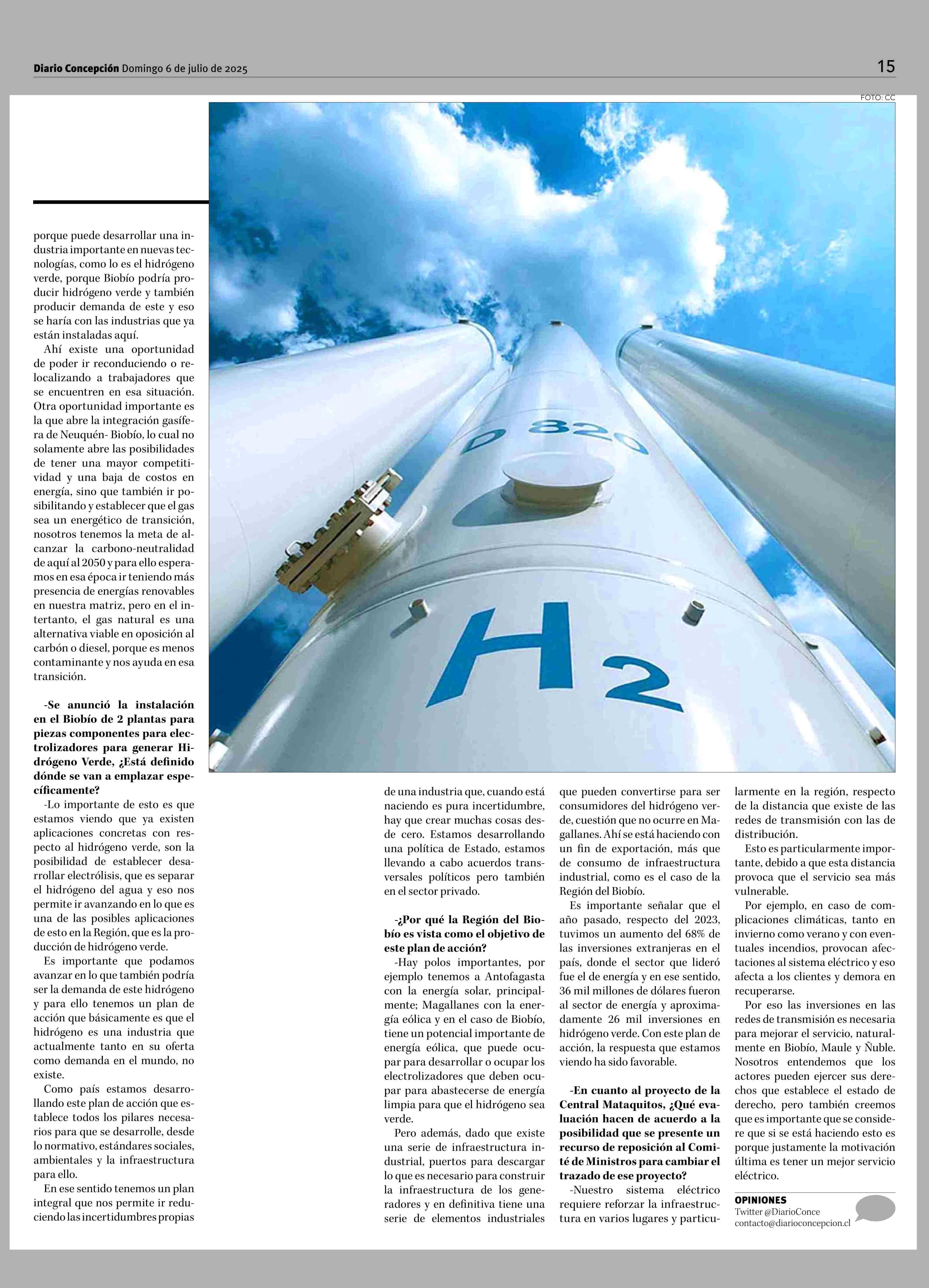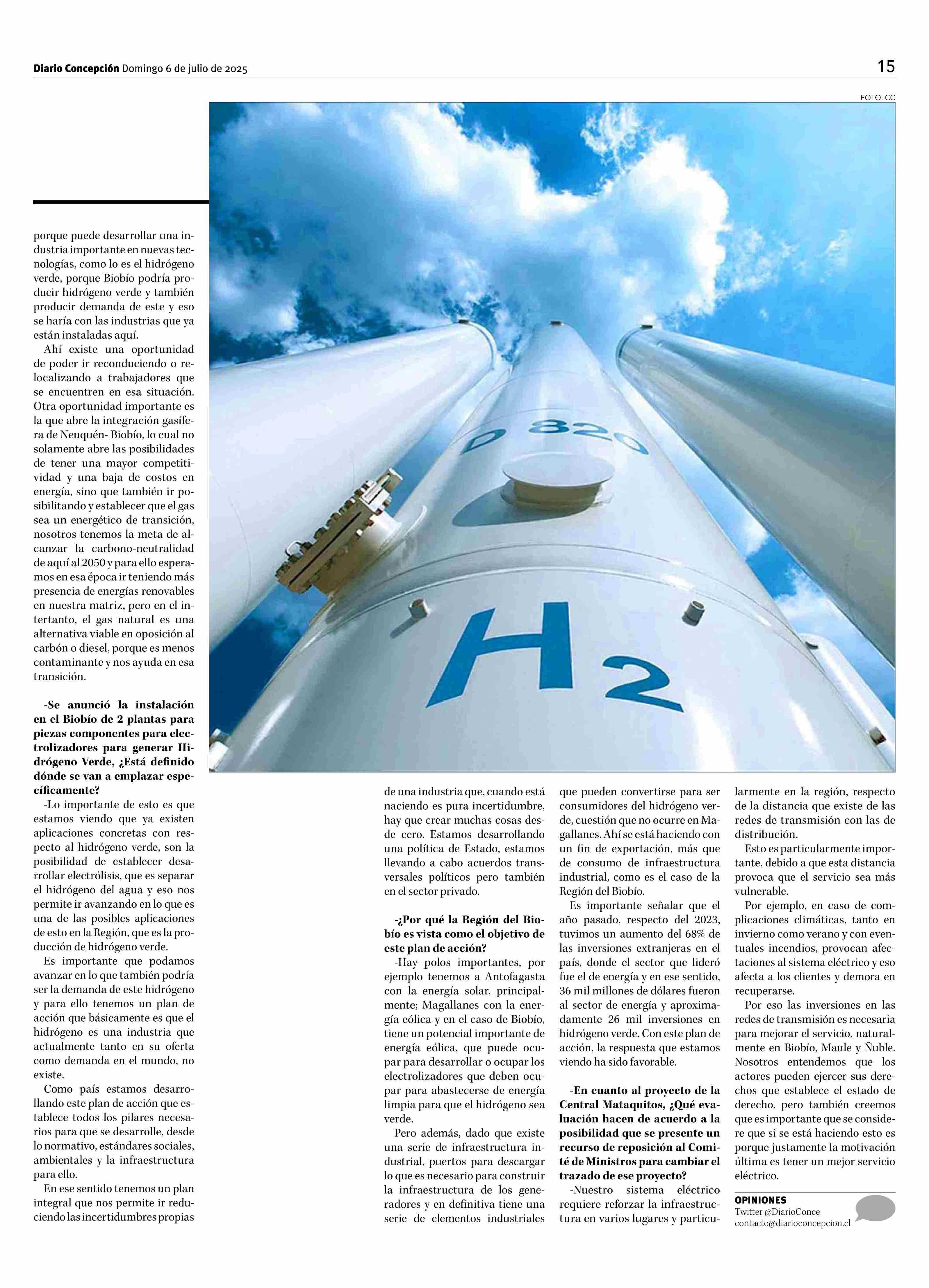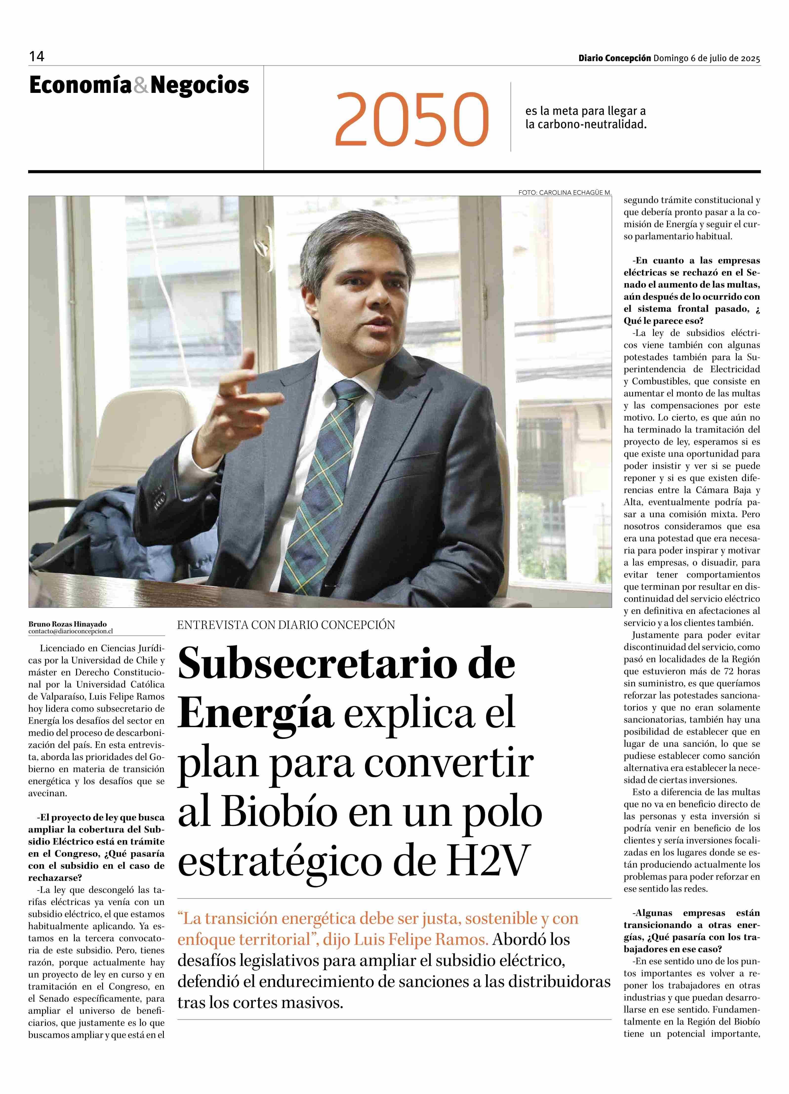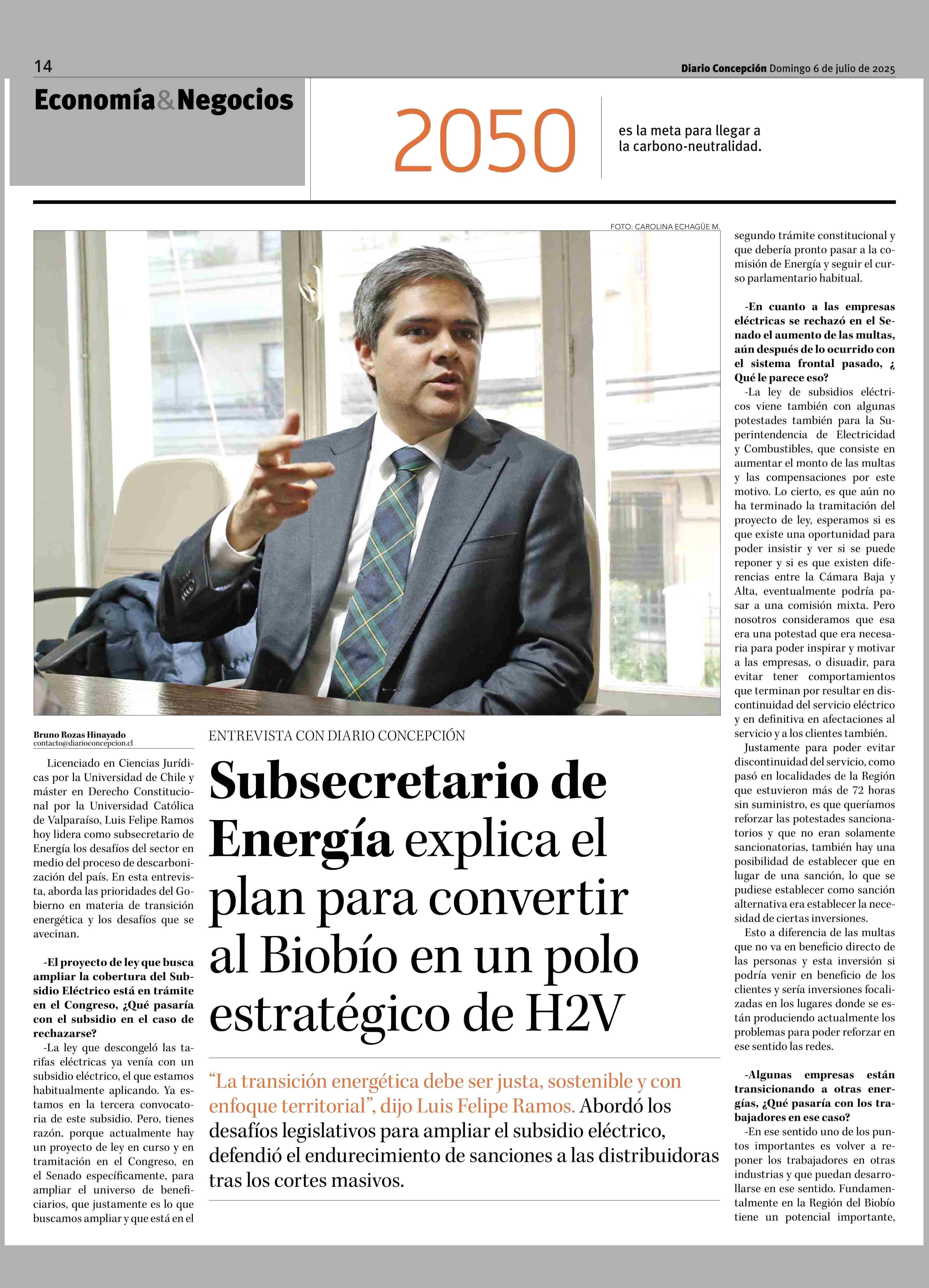 Subsecretario de Energía explica el plan para convertir al Biobío en un polo estratégico de H2V 06-07-2025 Diario Concepción |