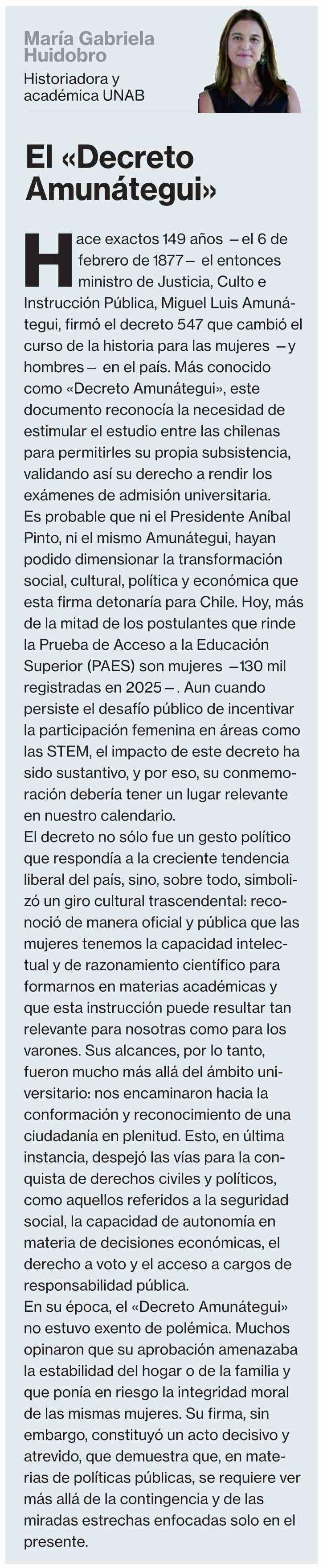 COLUMNAS DE OPINIÓN: El «Decreto Amunátegui» 06-02-2026 La Segunda |