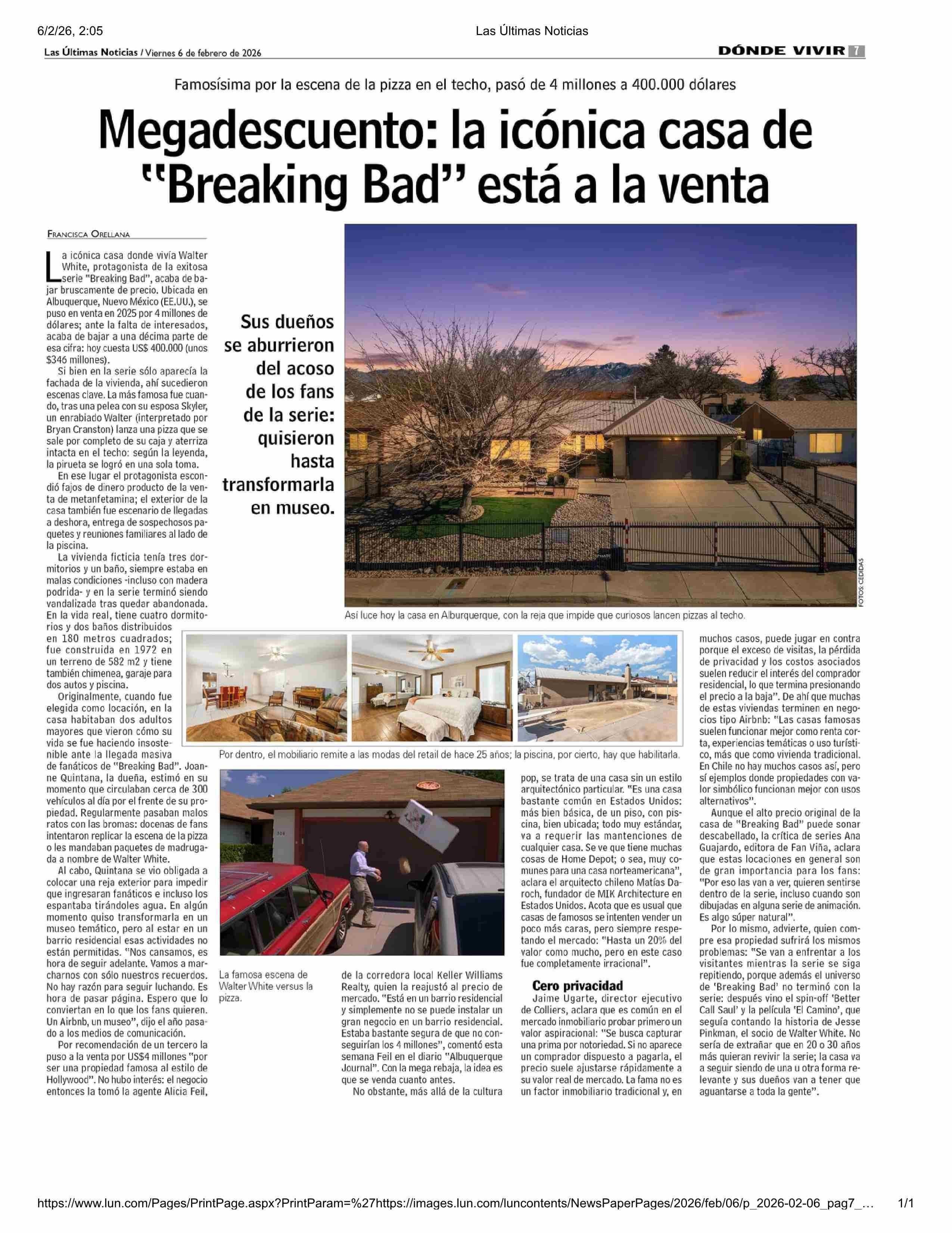 Megadescuento: la icónica casa de “Breaking Bad” está a la venta 06-02-2026 Las Últimas Noticias |