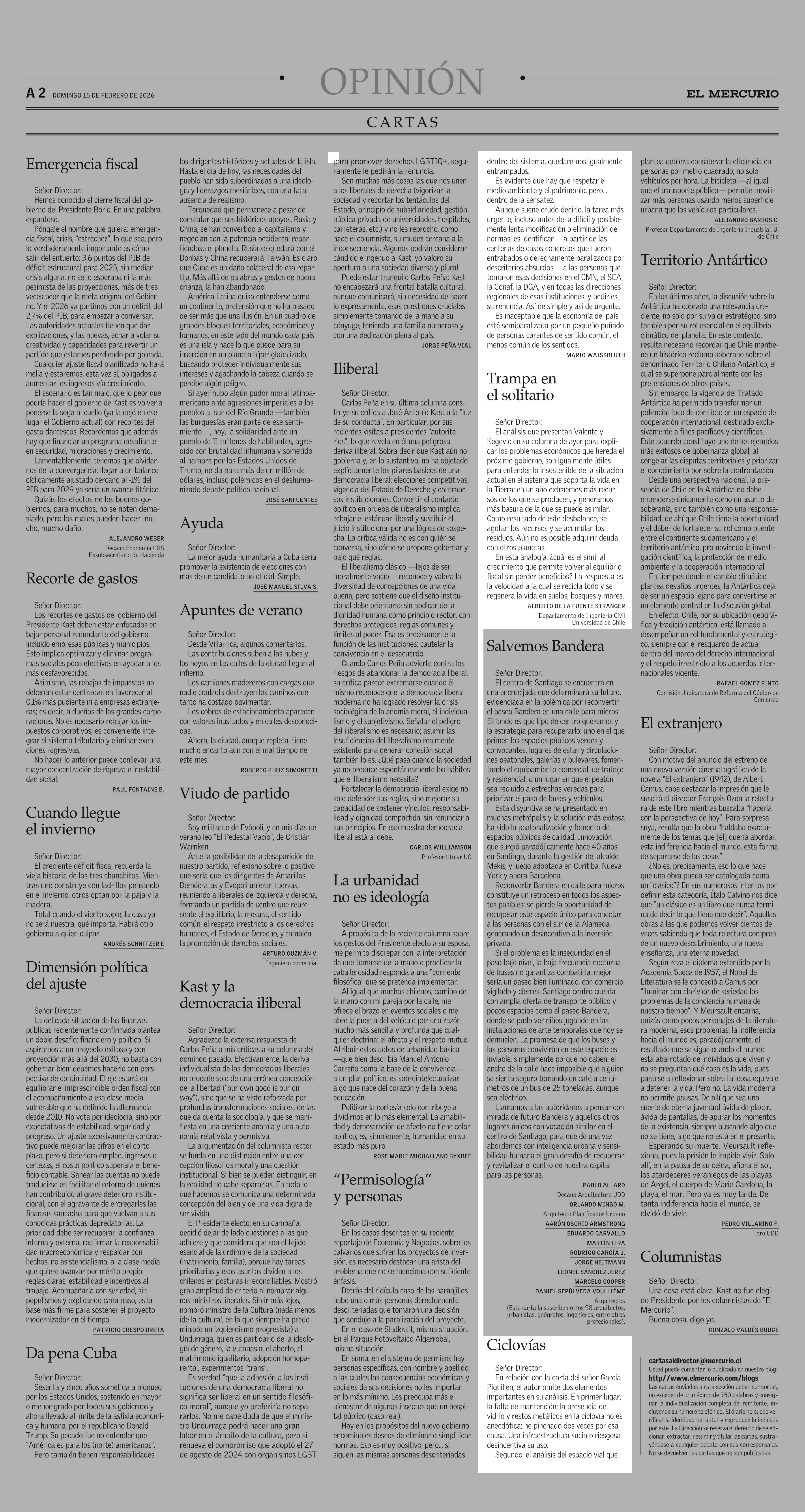 CARTAS: “Permisología” y personas 15-02-2026 El Mercurio |