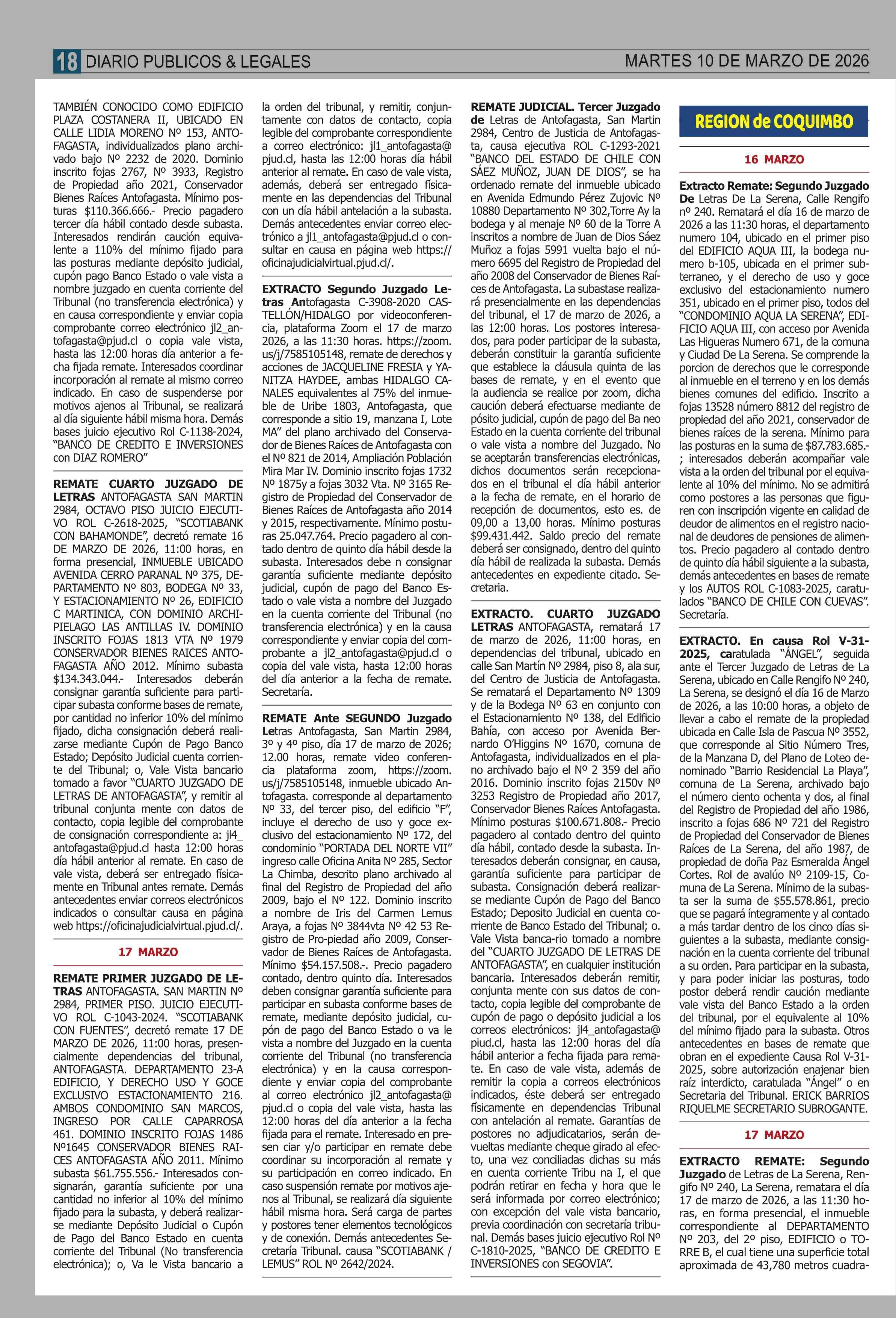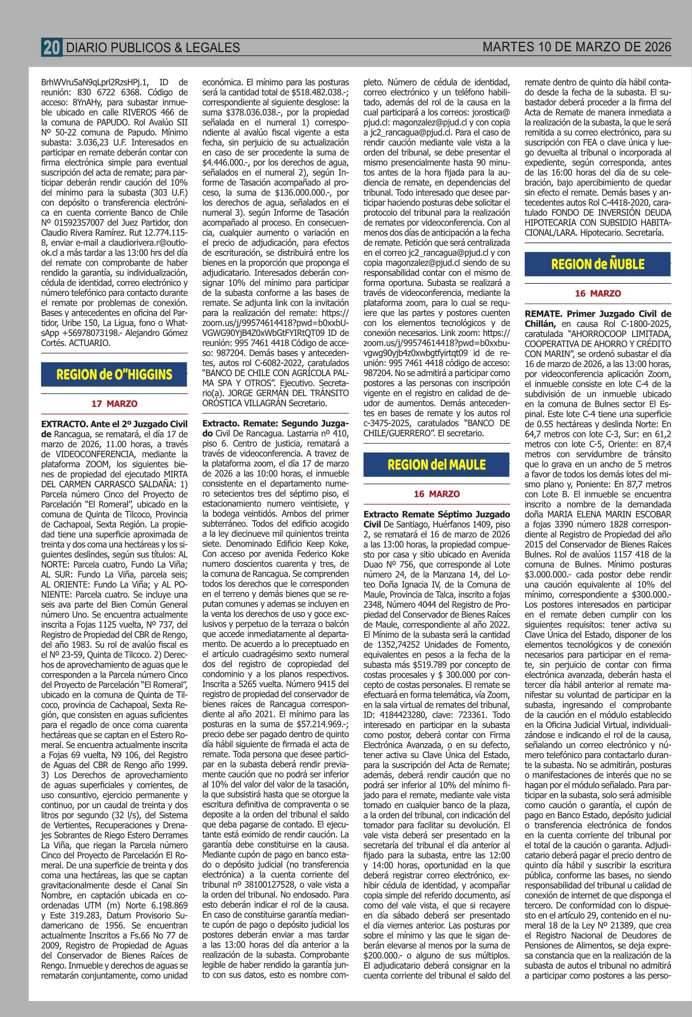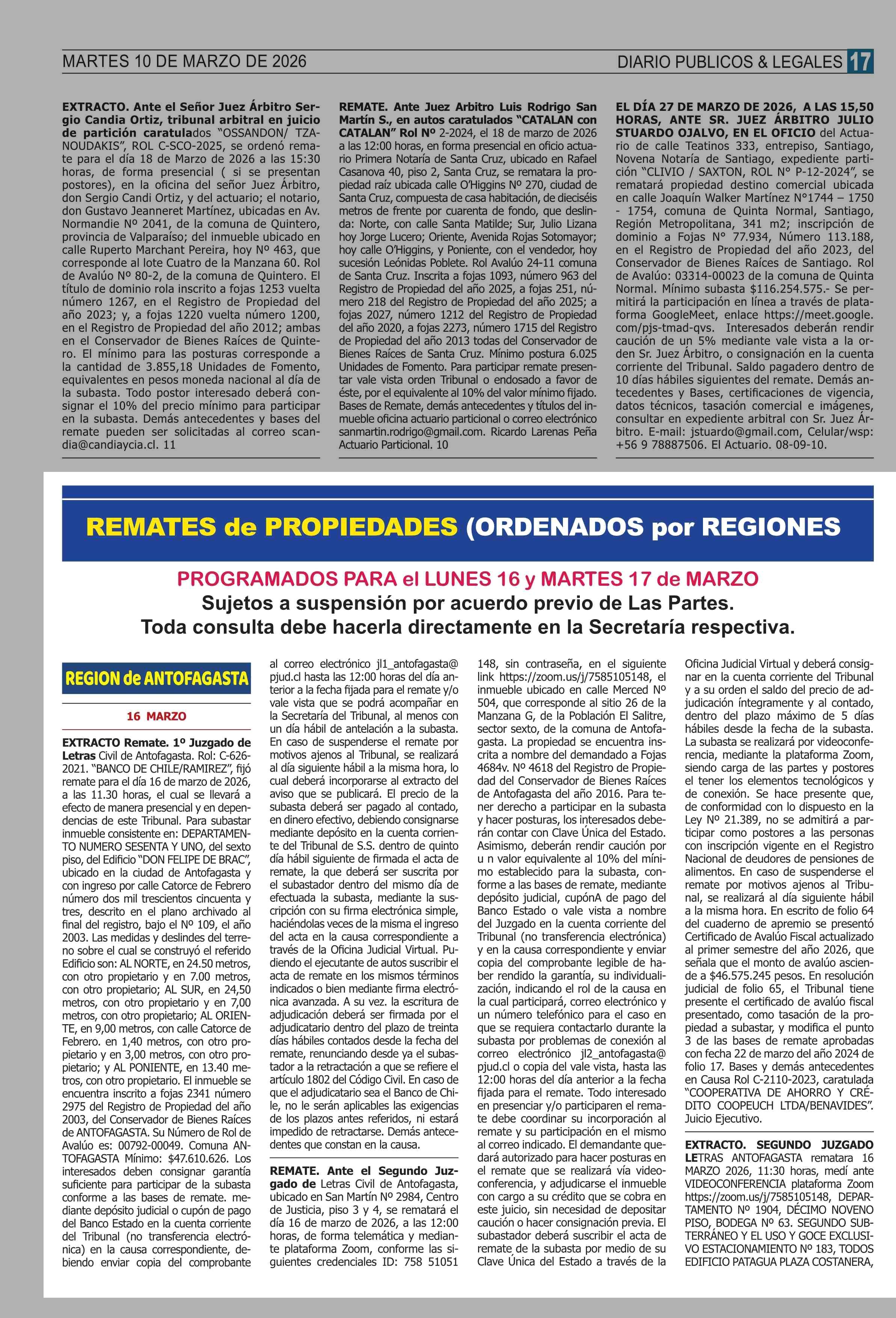 Fecha: 10-03-2026 Sector: Remates Región: Región Metropolitana de Santiago