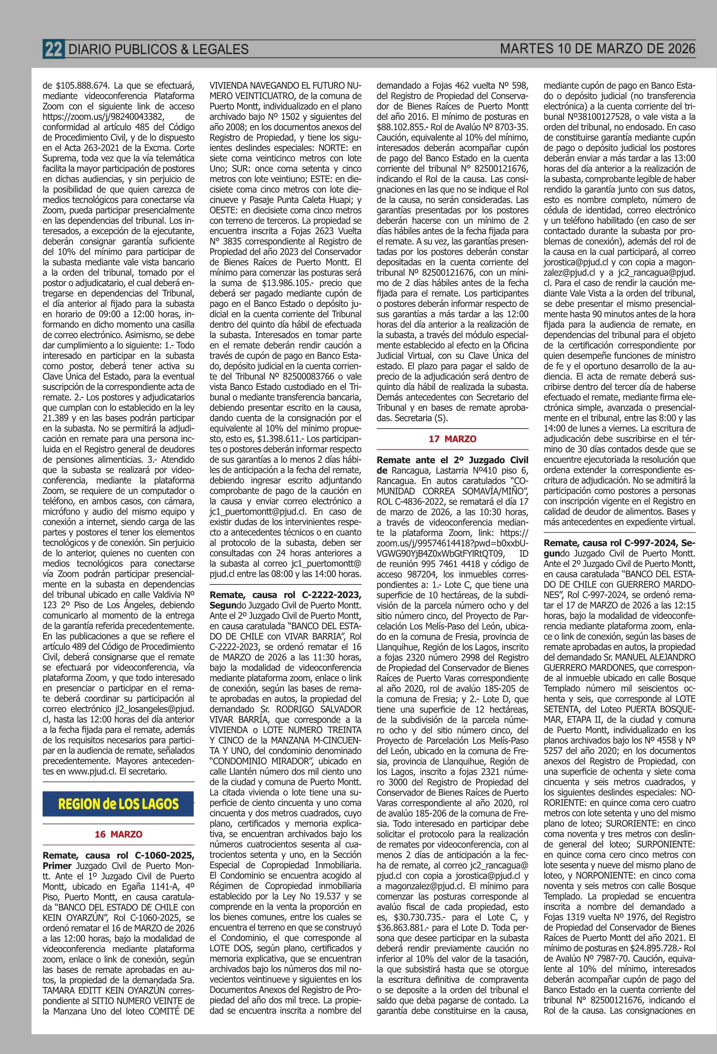 Título: REMATES: REMATES de PROPIEDADES (ORDENADOS por REGIONES
