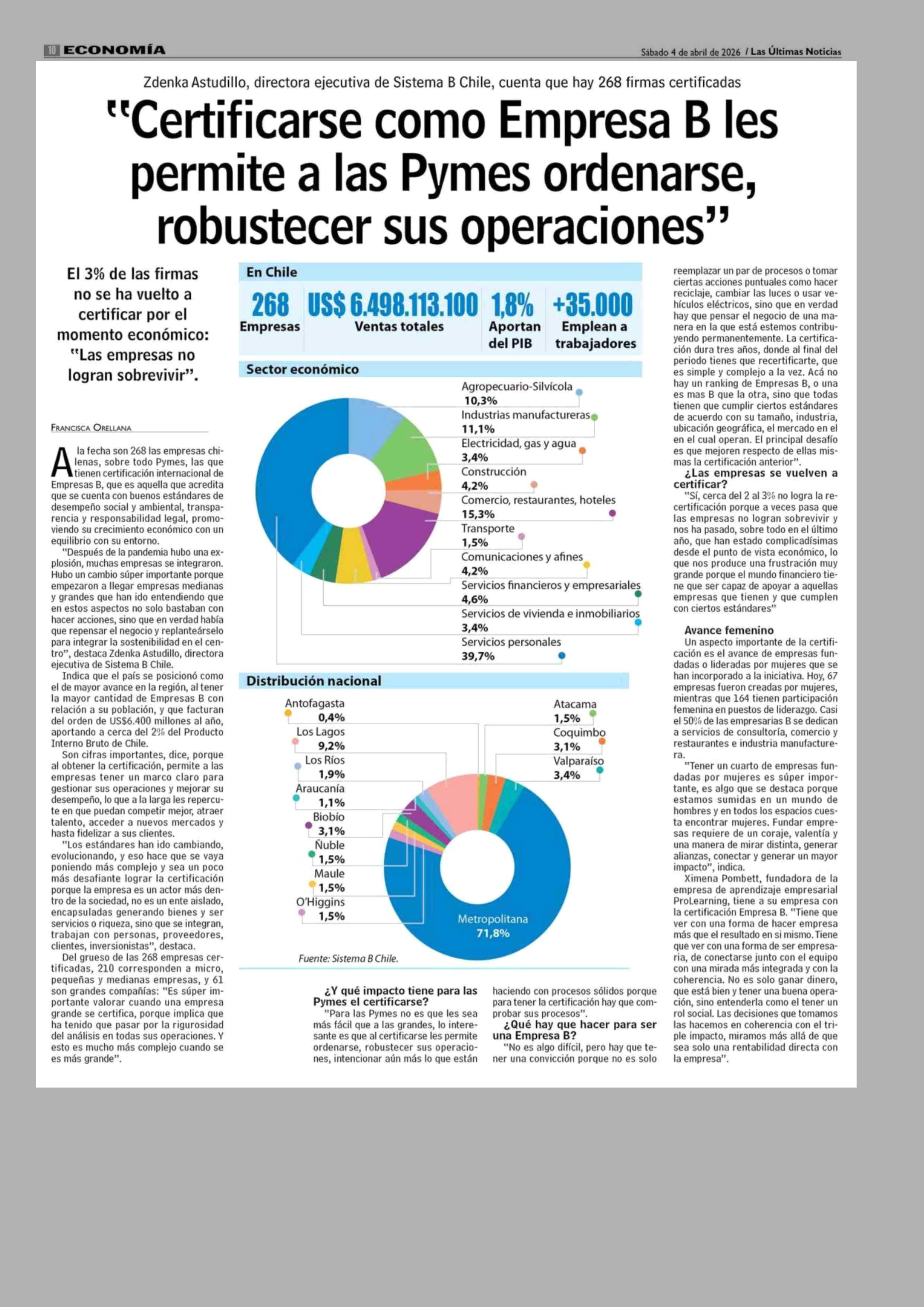 "Certificarse como Empresa B les permite a las Pymes ordenarse, robustecer sus operaciones" 04-04-2026 Las Últimas Noticias |
