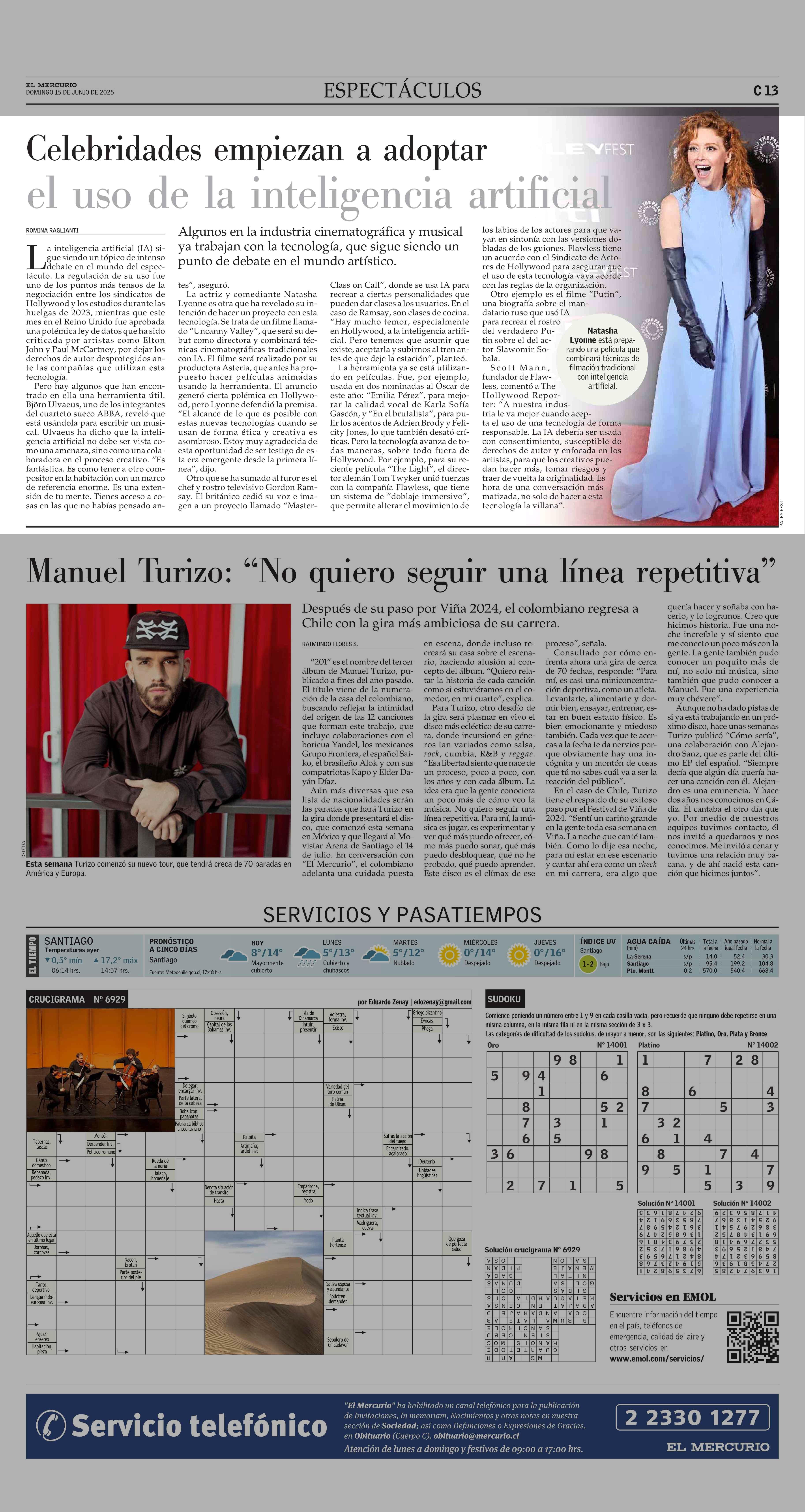 Celebridades empiezan a adoptar el uso de la inteligencia artificial 15-06-2025 El Mercurio |