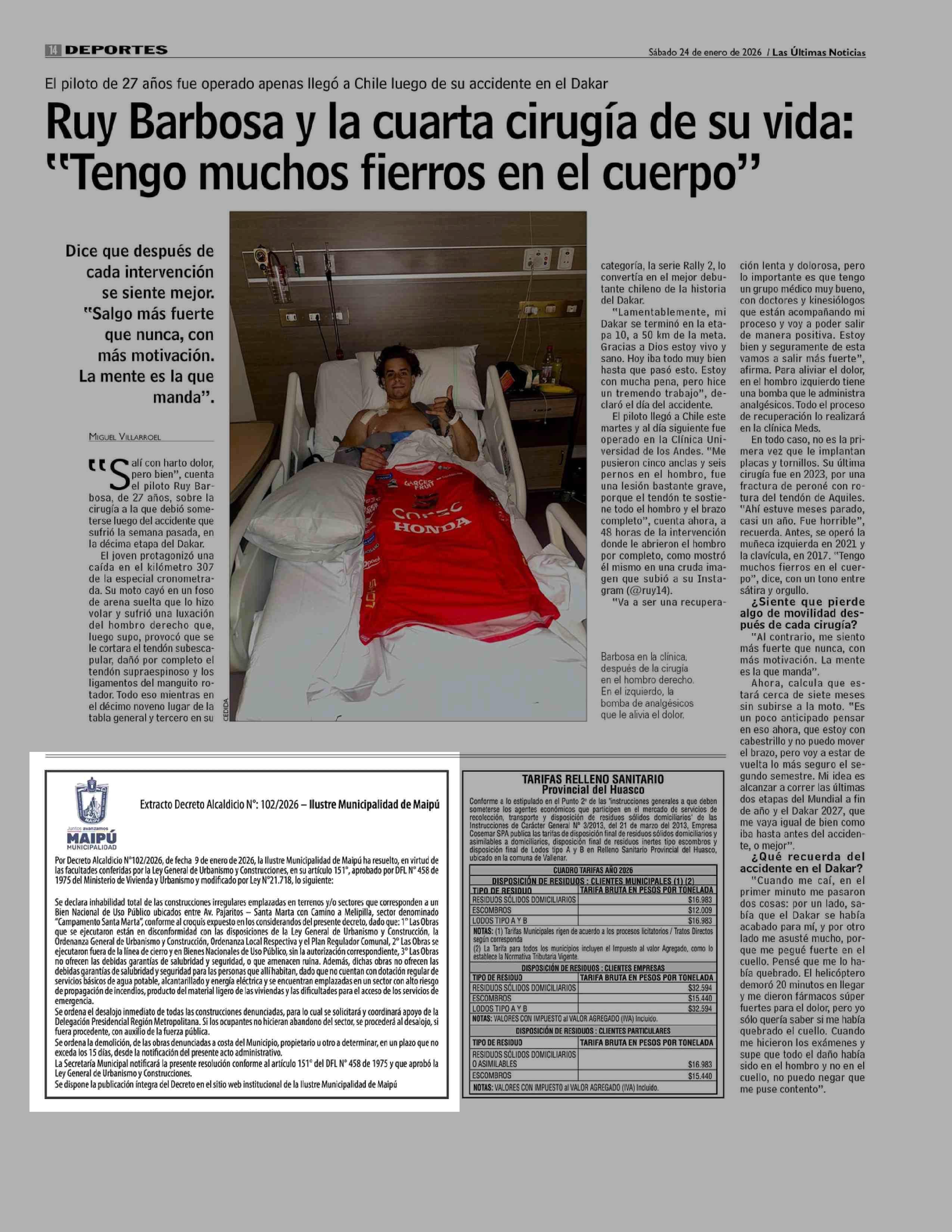 Extractos: Extracto Decreto Alcaldicio Nº: 102/2026 - Ilustre Municipalidad de Maipú 24-01-2026 Las Últimas Noticias |