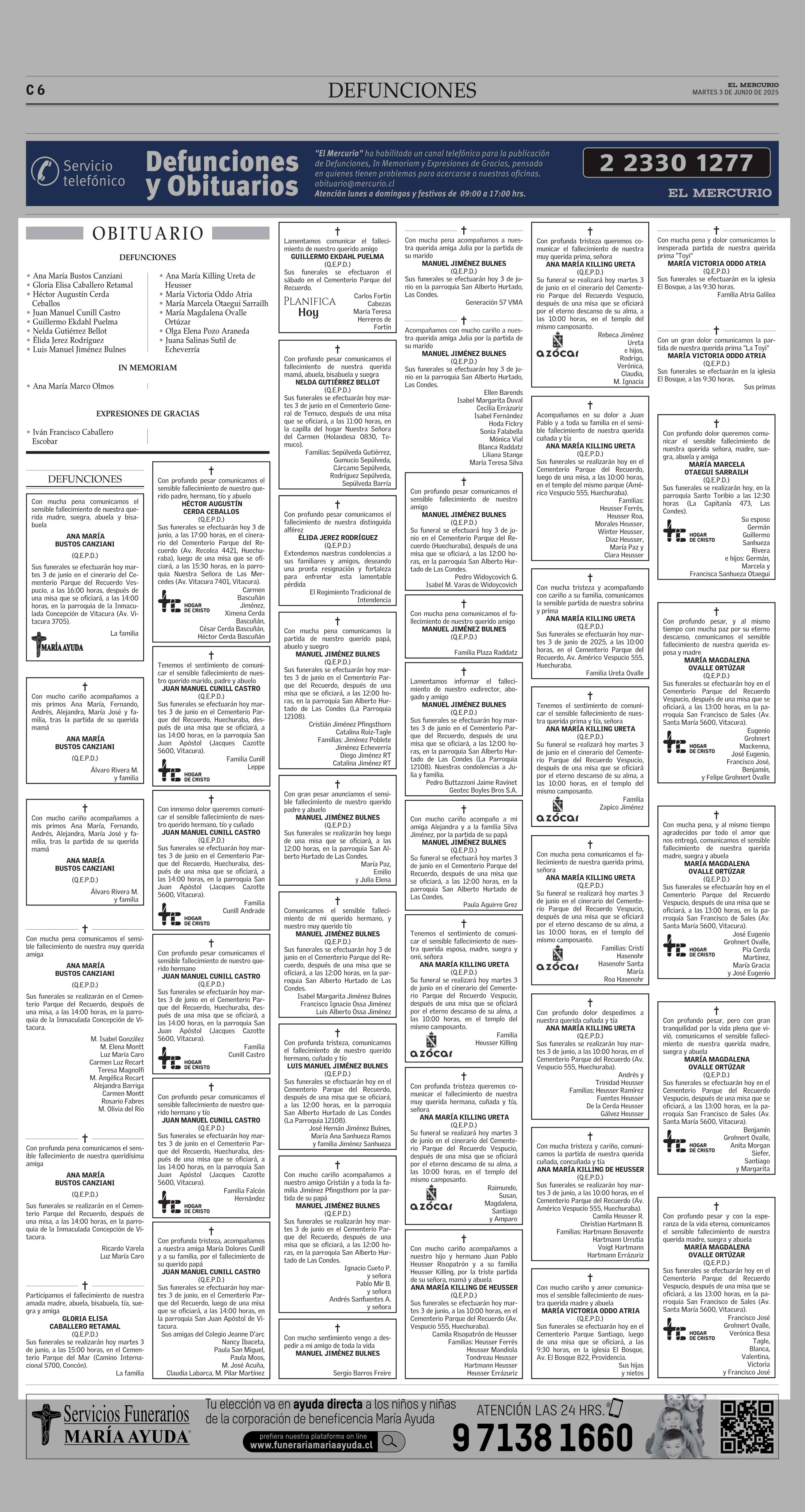 Fecha: 03-06-2025 Sector: Obituario Región: Región Metropolitana de Santiago