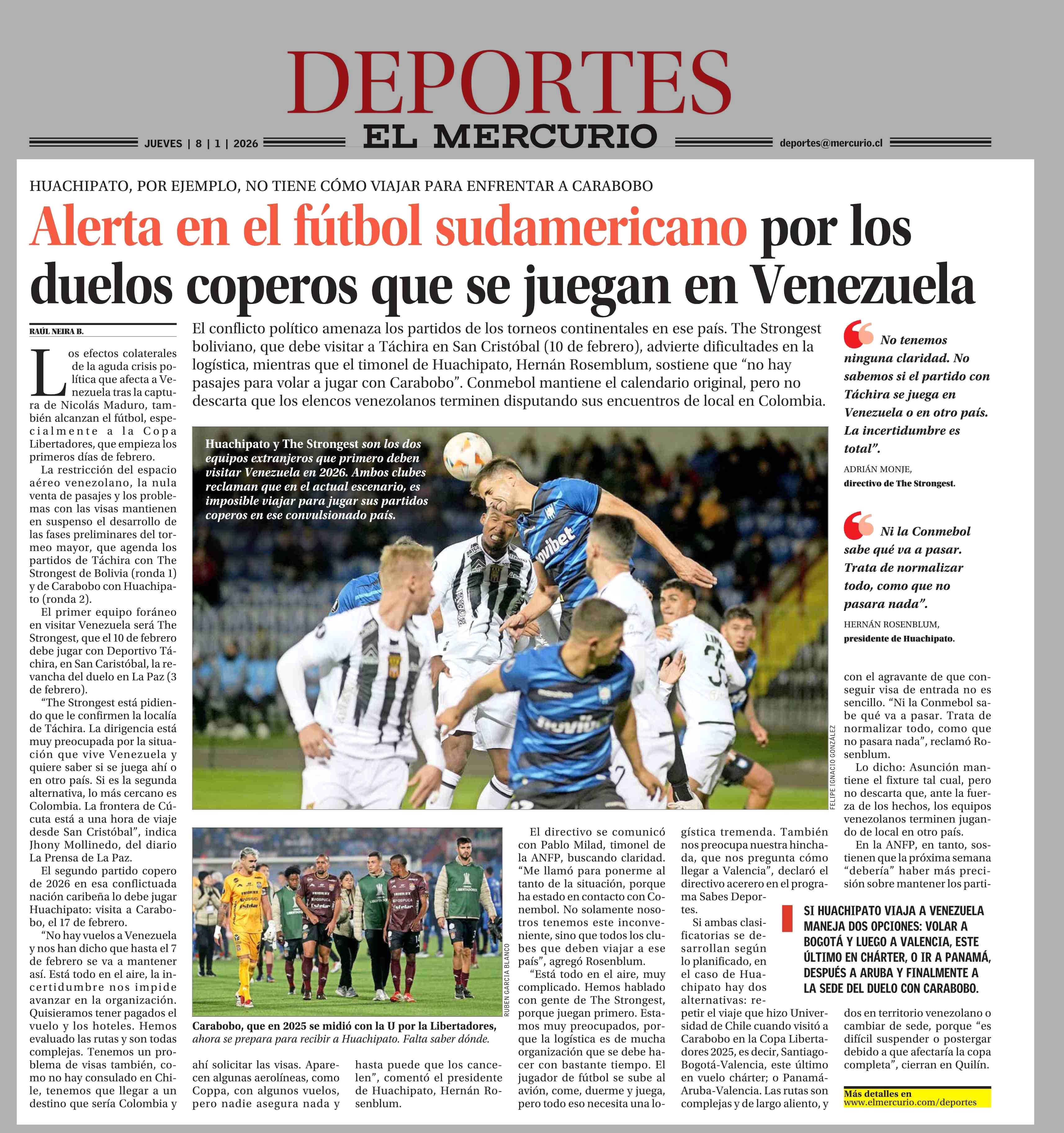 Alerta en el fútbol sudamericano por los duelos coperos que se juegan en Venezuela 08-01-2026 El Mercurio |