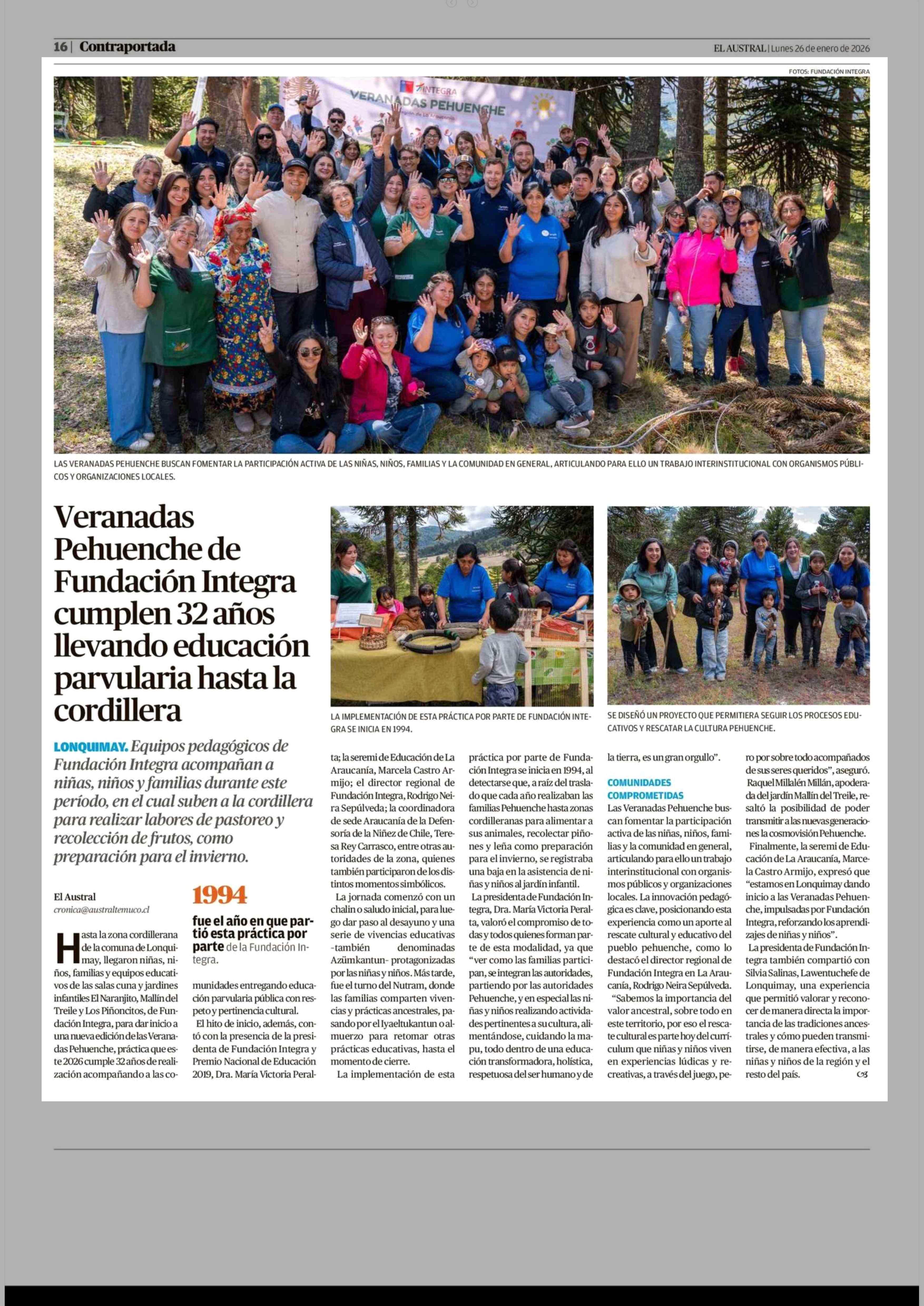 Veranadas Pehuenche de Fundación Integra cumplen 32 años llevando educación parvularia hasta la cordillera 26-01-2026 El Austral de la Araucanía |