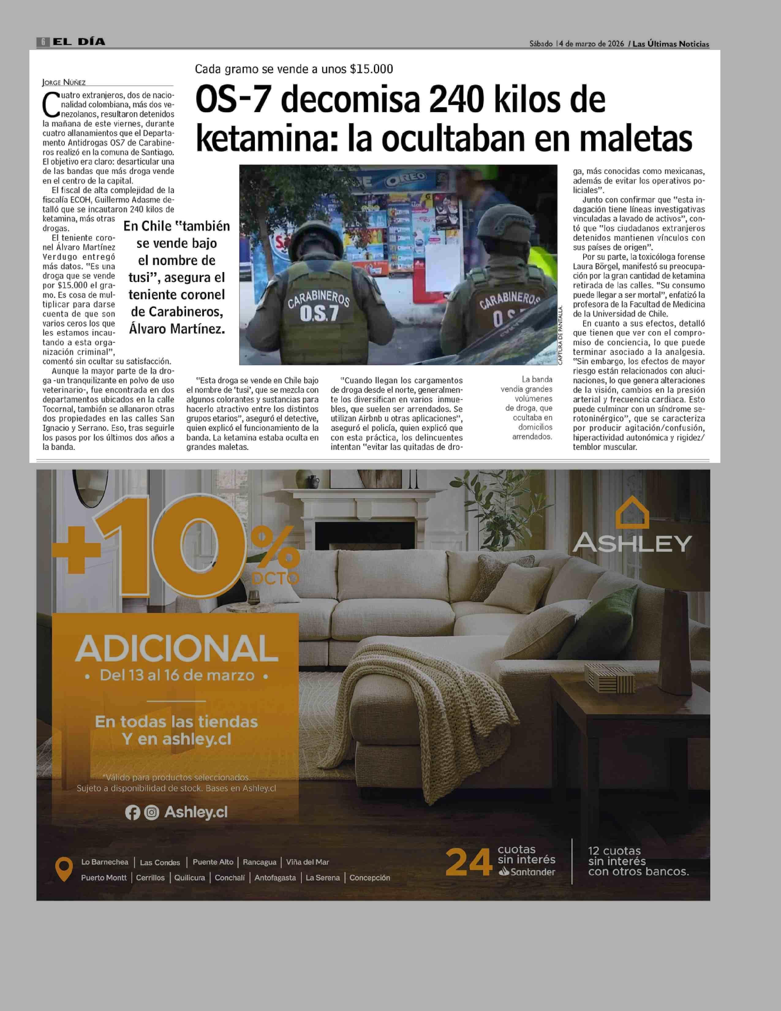 OS-7 decomisa 240 kilos de ketamina: la ocultaban en maletas 14-03-2026 Las Últimas Noticias |
