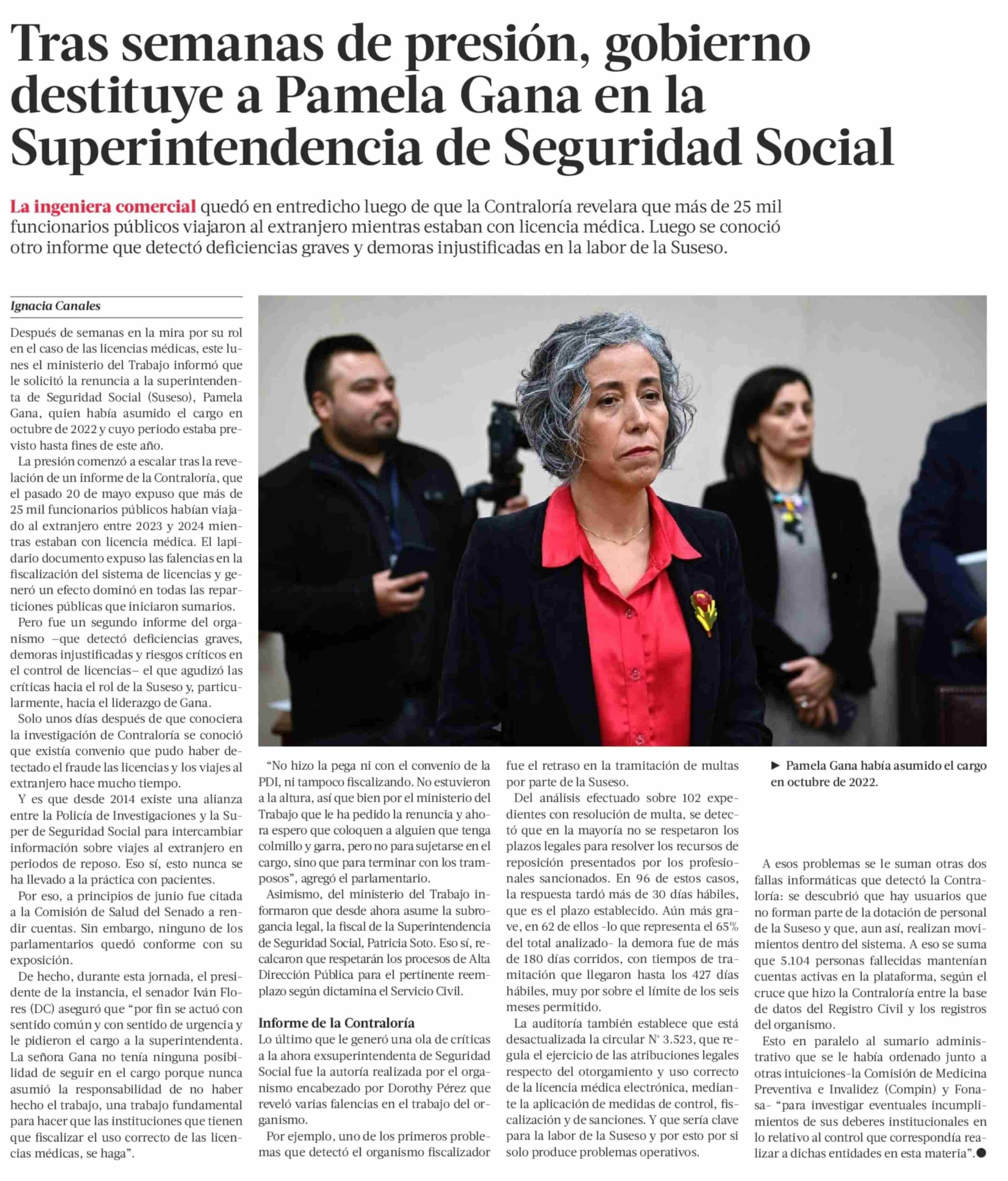 | Título: | Tras semanas de presión, gobierno destituye a Pamela Gana en la Superintendencia de Seguridad Social |