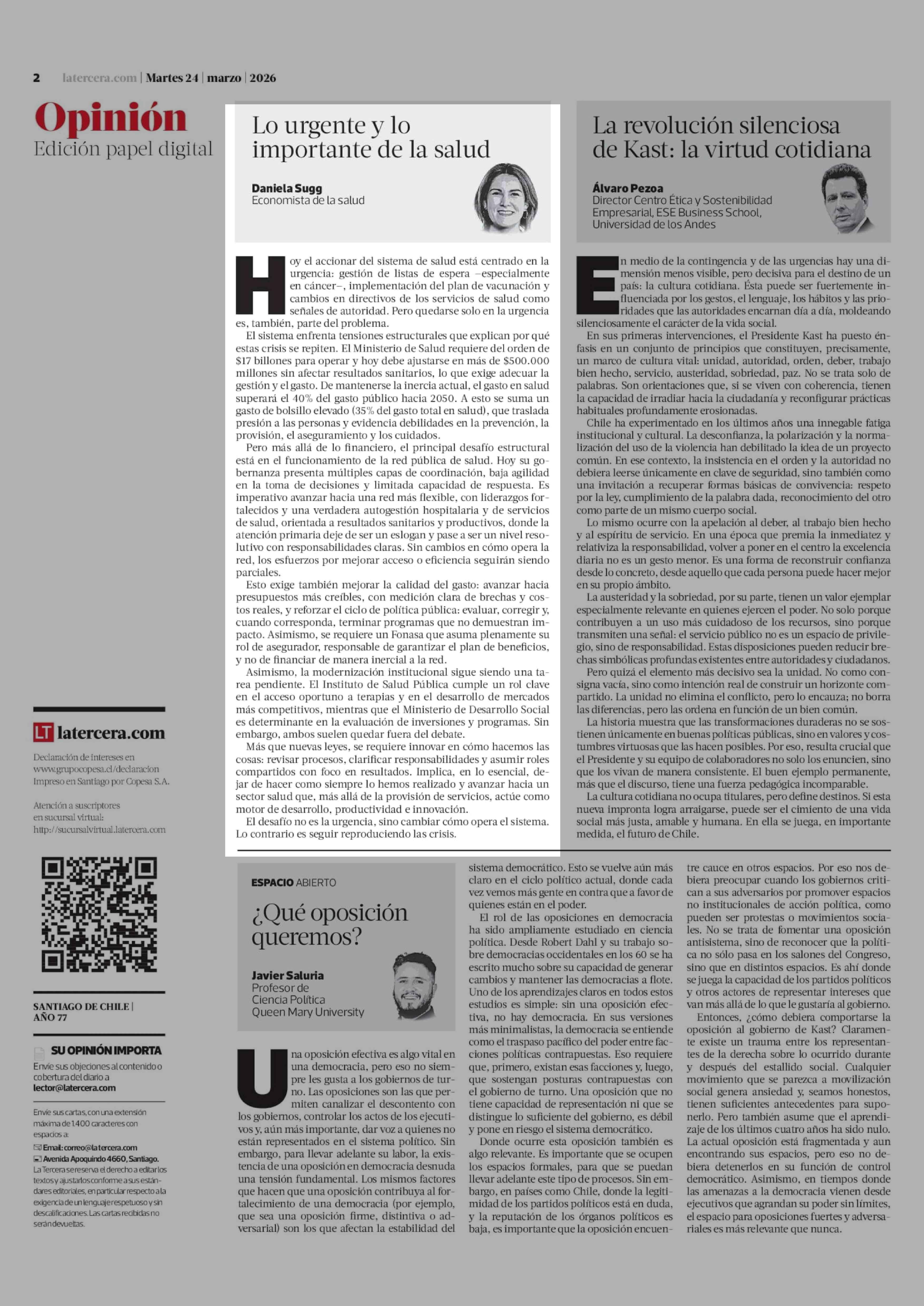 Columnas de Opinión: Lo urgente y lo importante de la salud 24-03-2026 La Tercera |