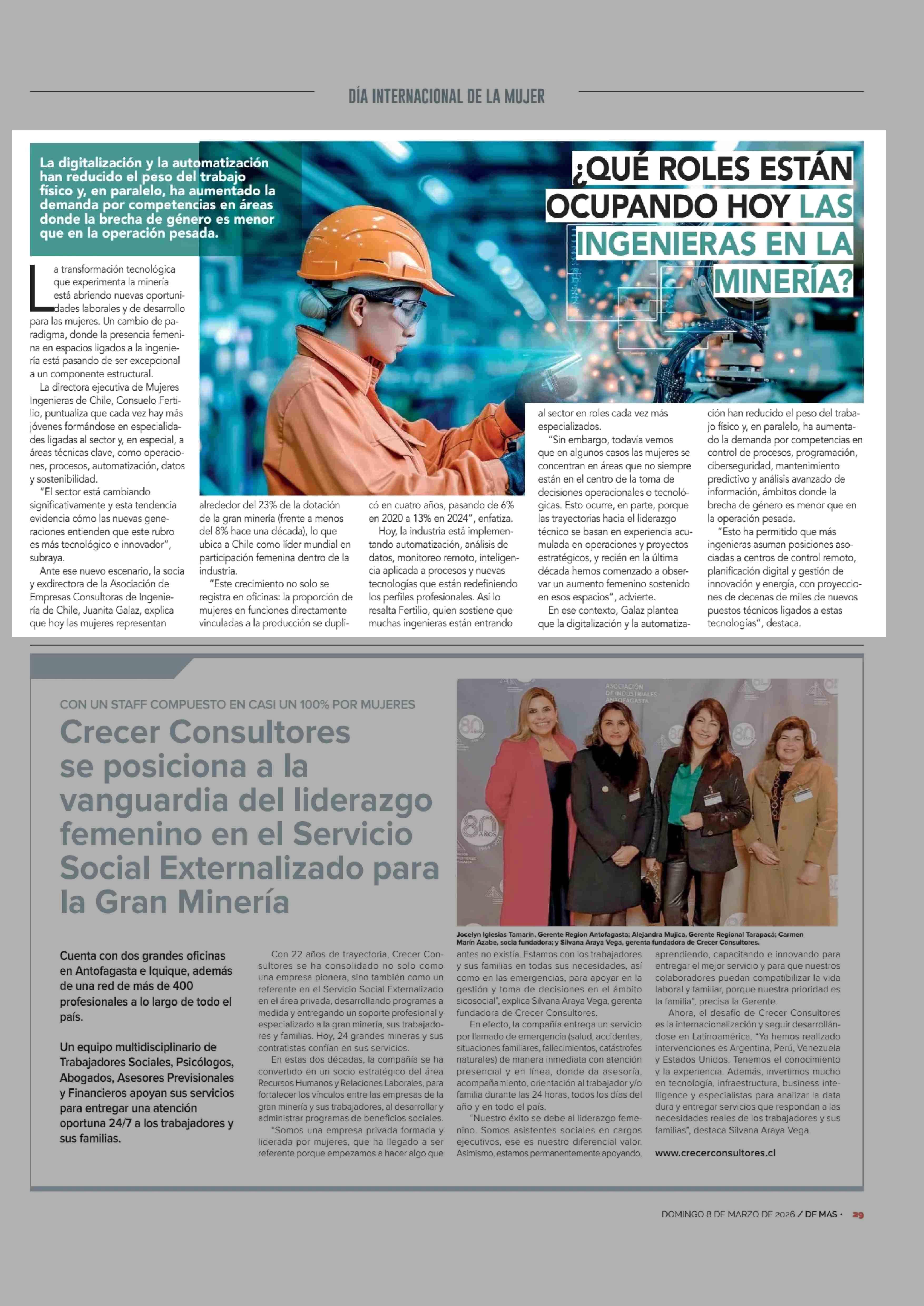 ¿QUÉ ROLES ESTÁN OCUPANDO HOY LAS INGENIERAS EN LA MINERÍA? 08-03-2026 Diario Financiero |