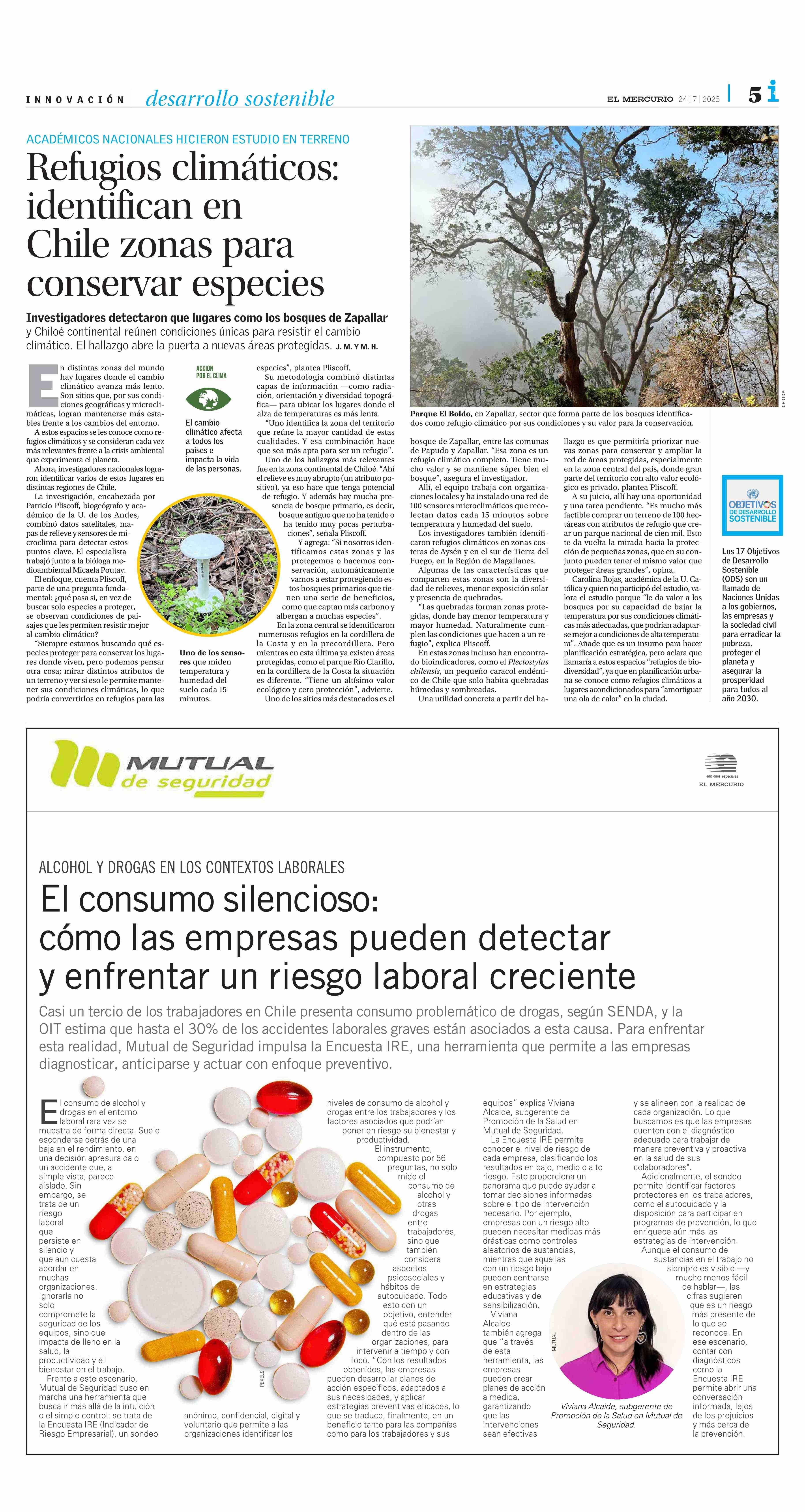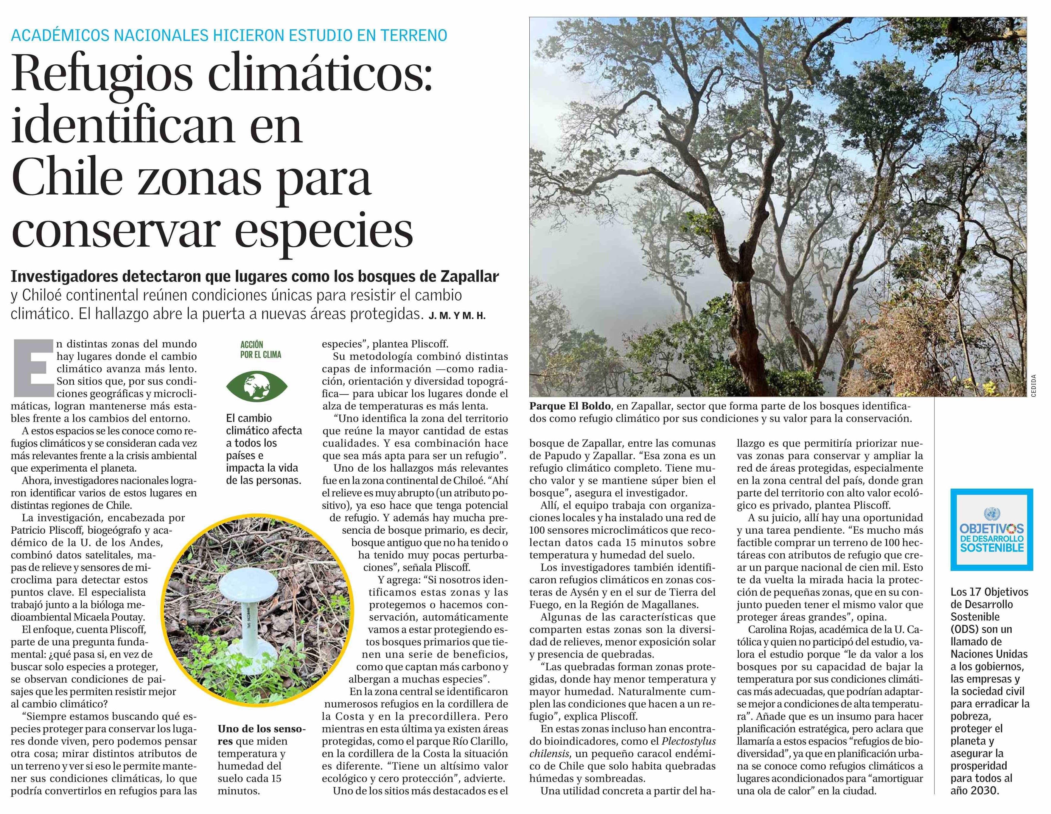 Refugios climáticos: identifican en Chile zonas para conservar especies 24-07-2025 El Mercurio |