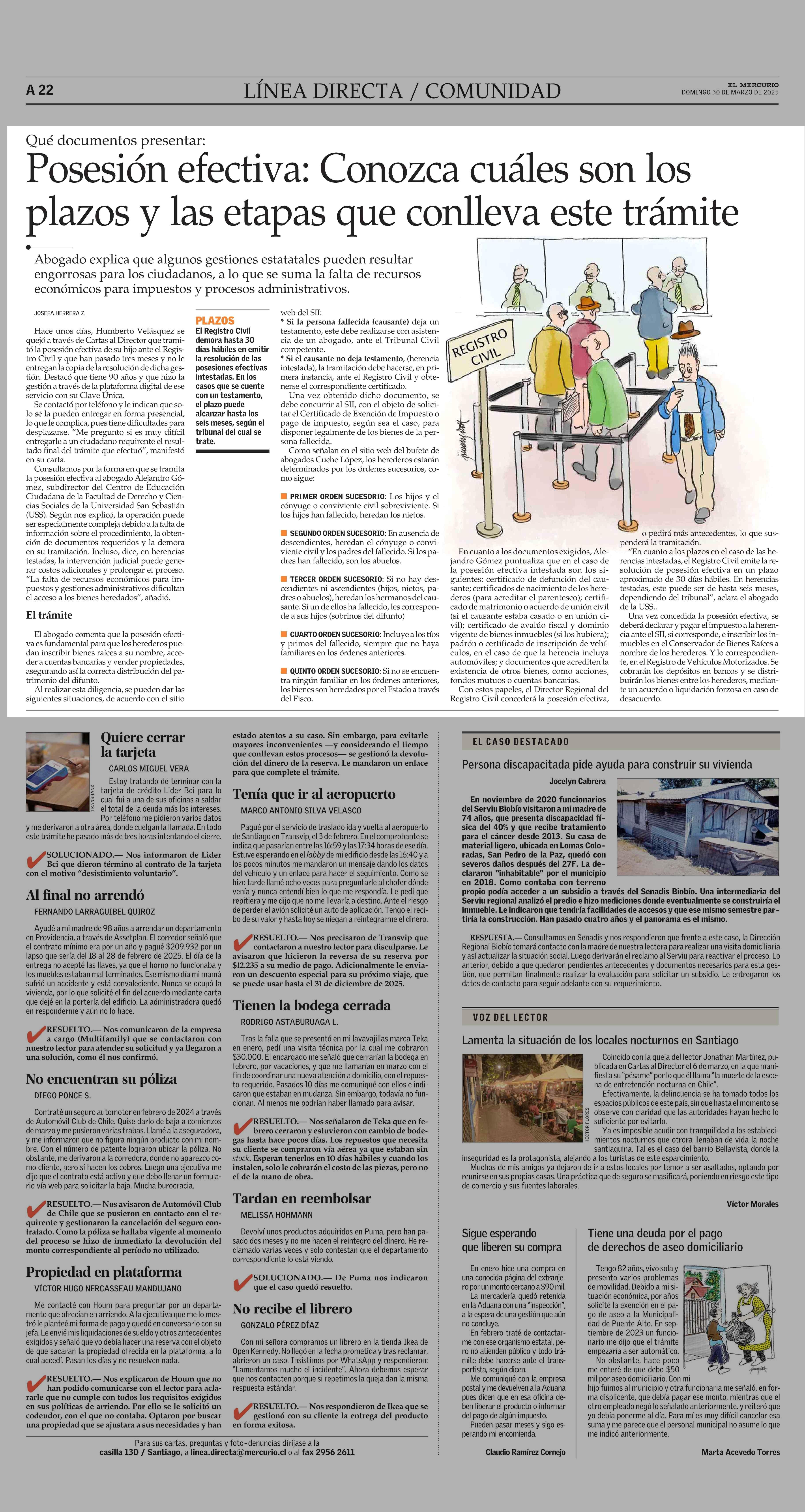Posesión efectiva: Conozca cuáles son los plazos y las etapas que conlleva este trámite 30-03-2025 El Mercurio |