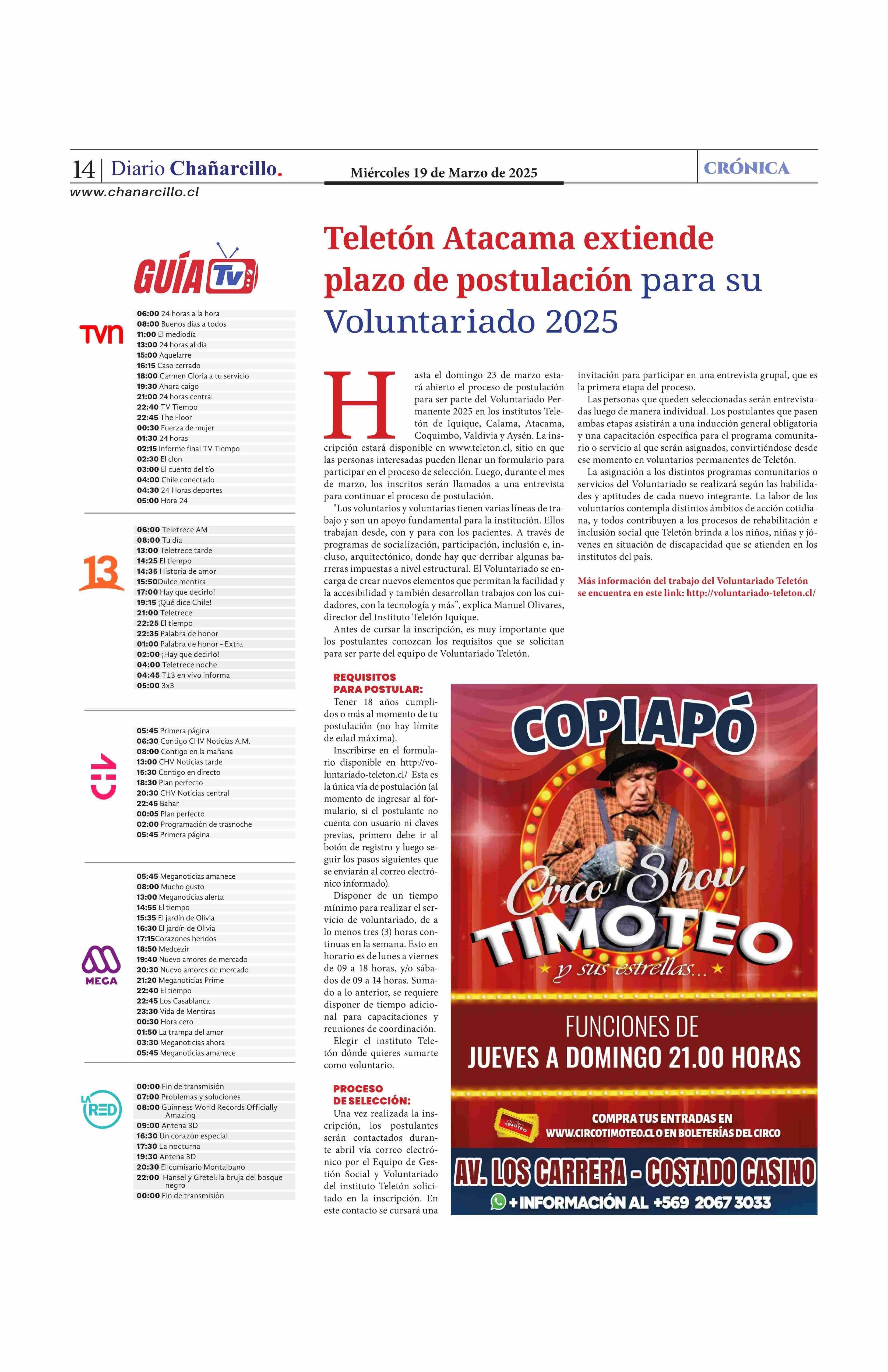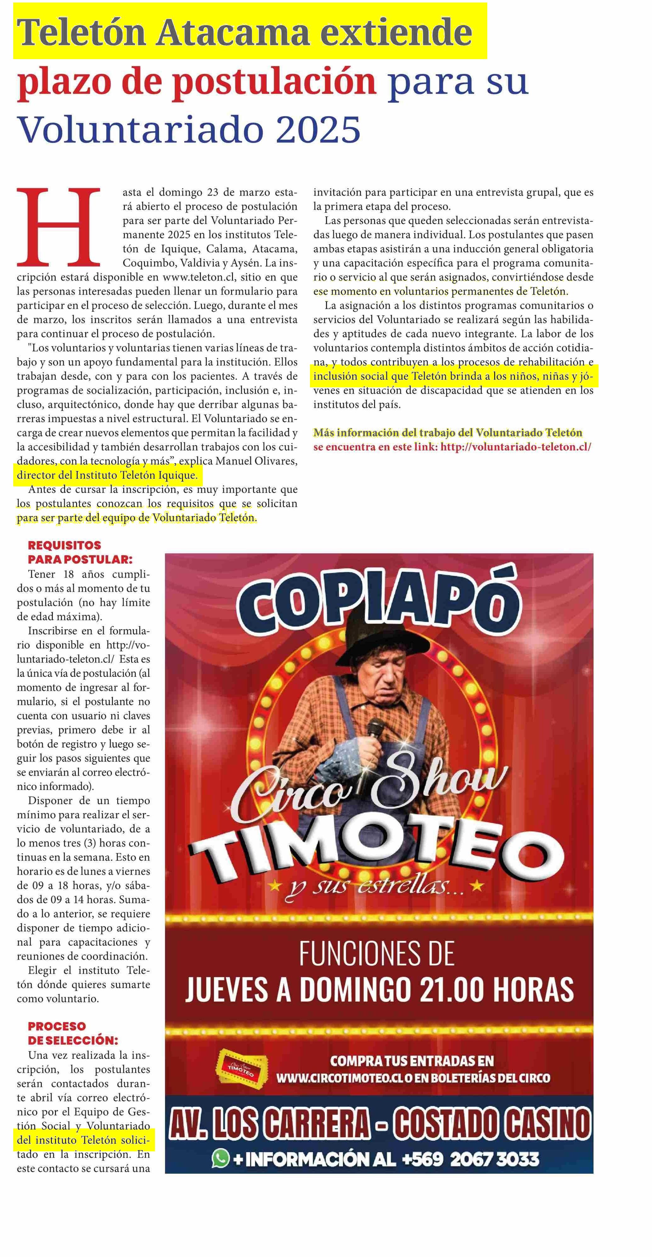 Teletón Atacama extiende plazo de postulación plazo de postulación Voluntariado 2025 19-03-2025 Diario Chañarcillo |