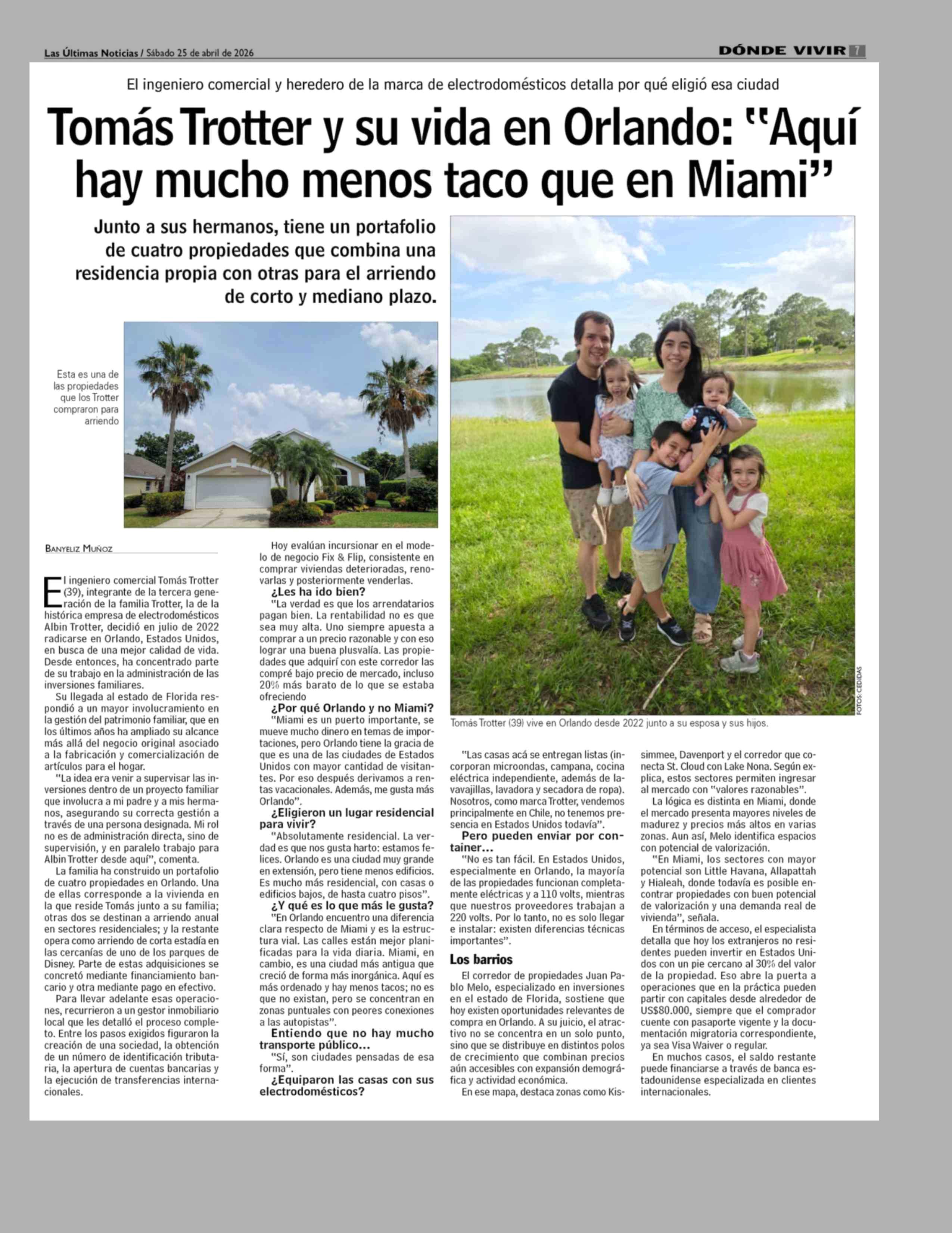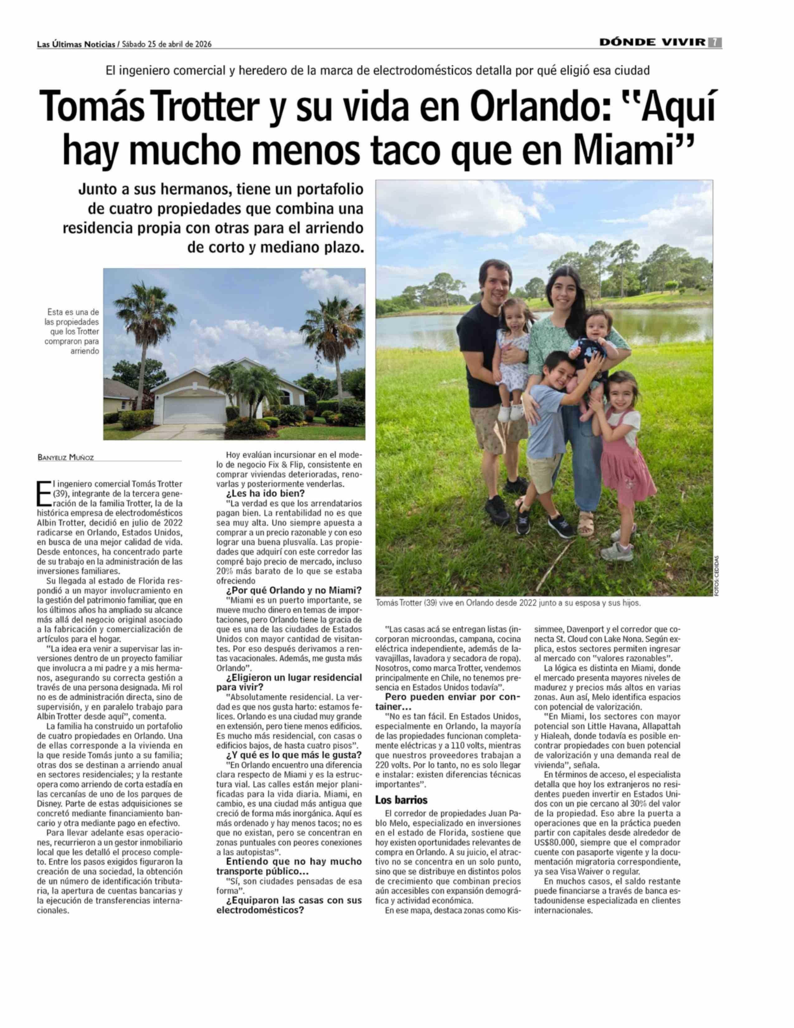 Tomás Trotter y su vida en Orlando: "Aquí hay mucho menos taco que en Miami" 25-04-2026 Las Últimas Noticias |