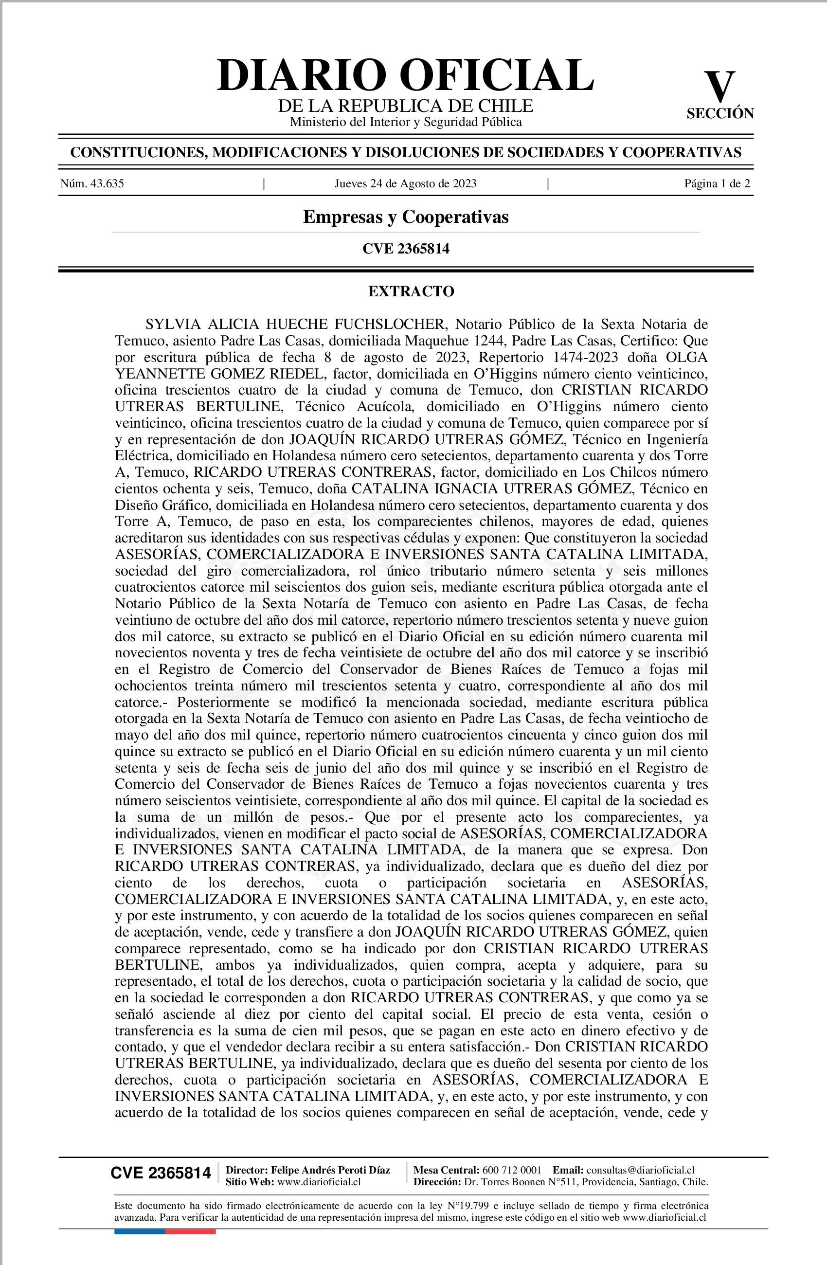 Extracto 24-08-2023 Diario Oficial Edición Electrónica |