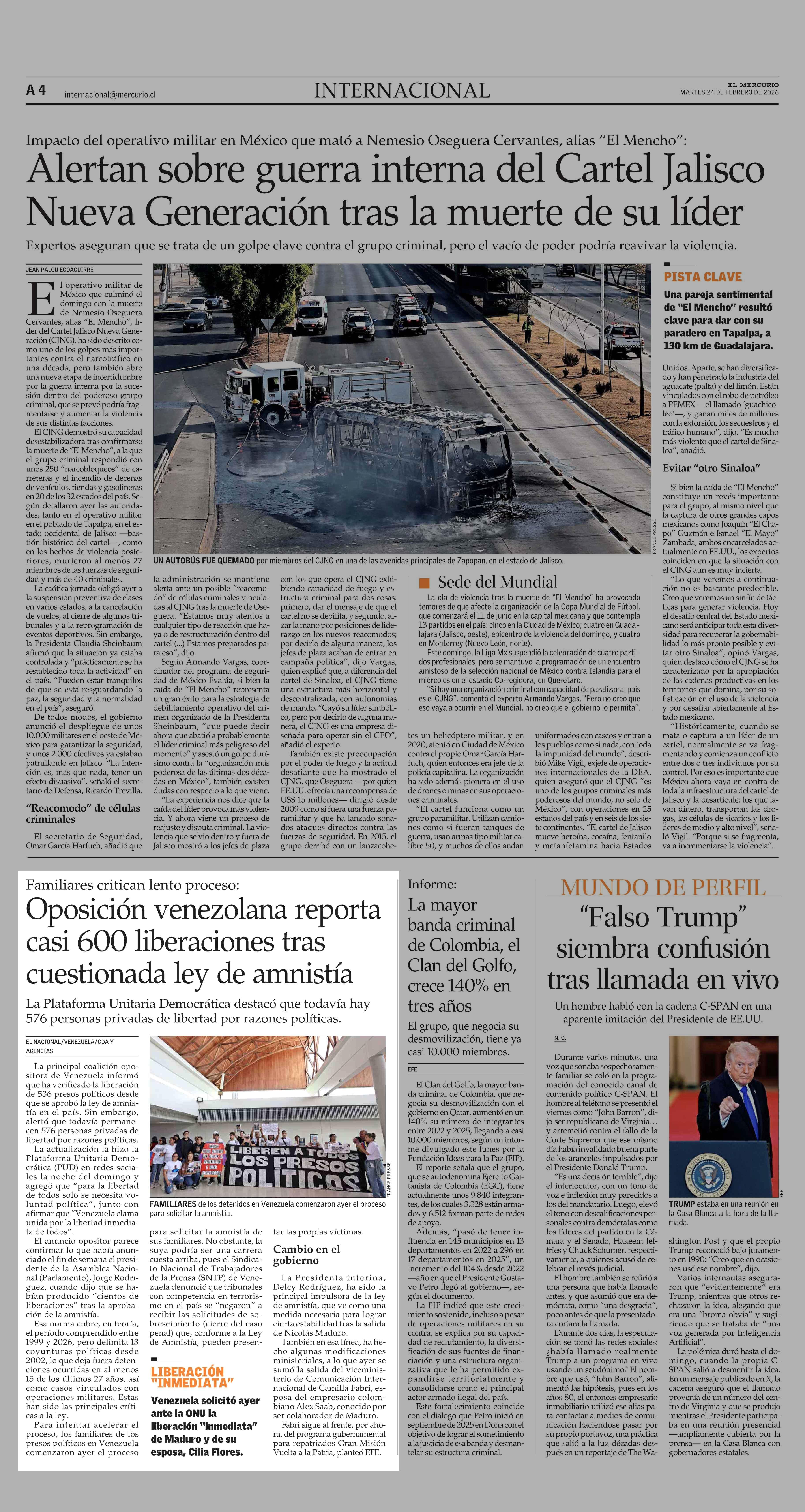 Oposición venezolana reporta casi 600 liberaciones tras cuestionada ley de amnistía 24-02-2026 El Mercurio |