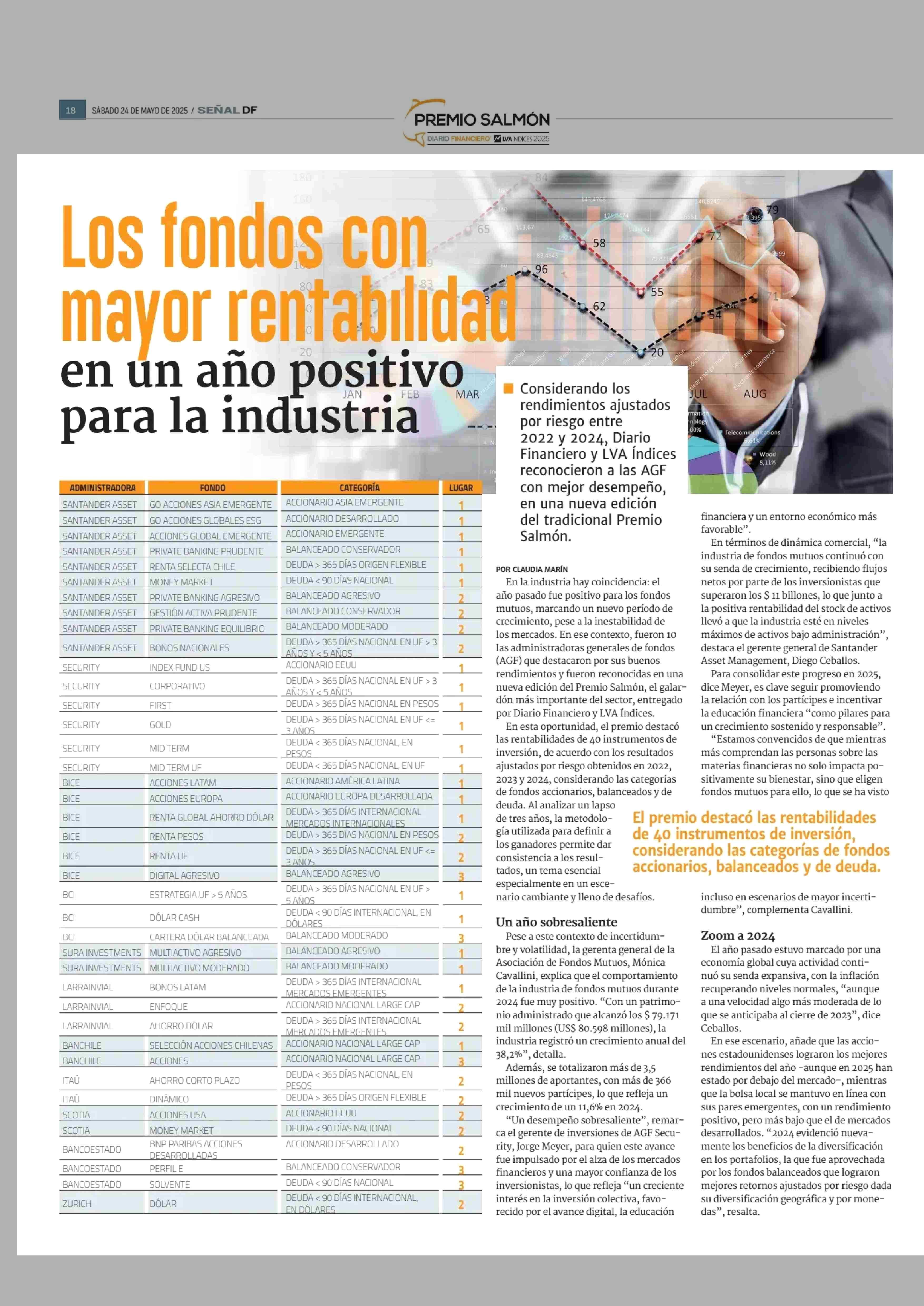 Los fondos con mayor rentabilidad en un año positivo para la industria 24-05-2025 Diario Financiero |
