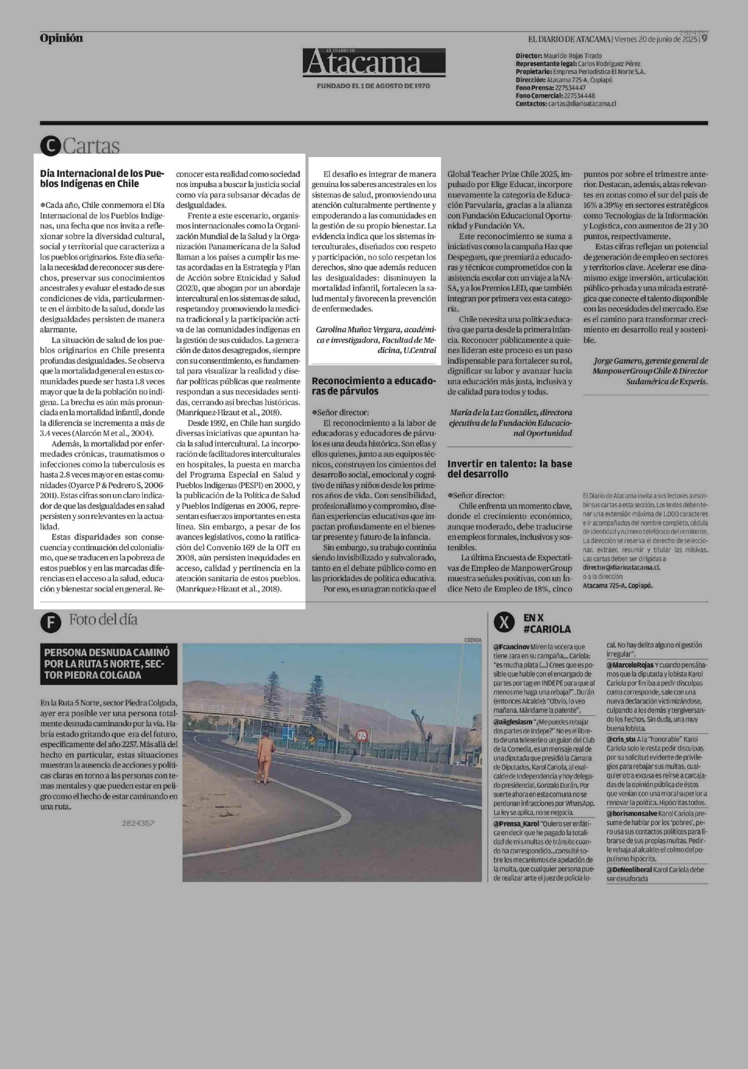 CARTAS: Día Internacional de los Pueblos Indigenas en Chile 20-06-2025 El Diario de Atacama |
