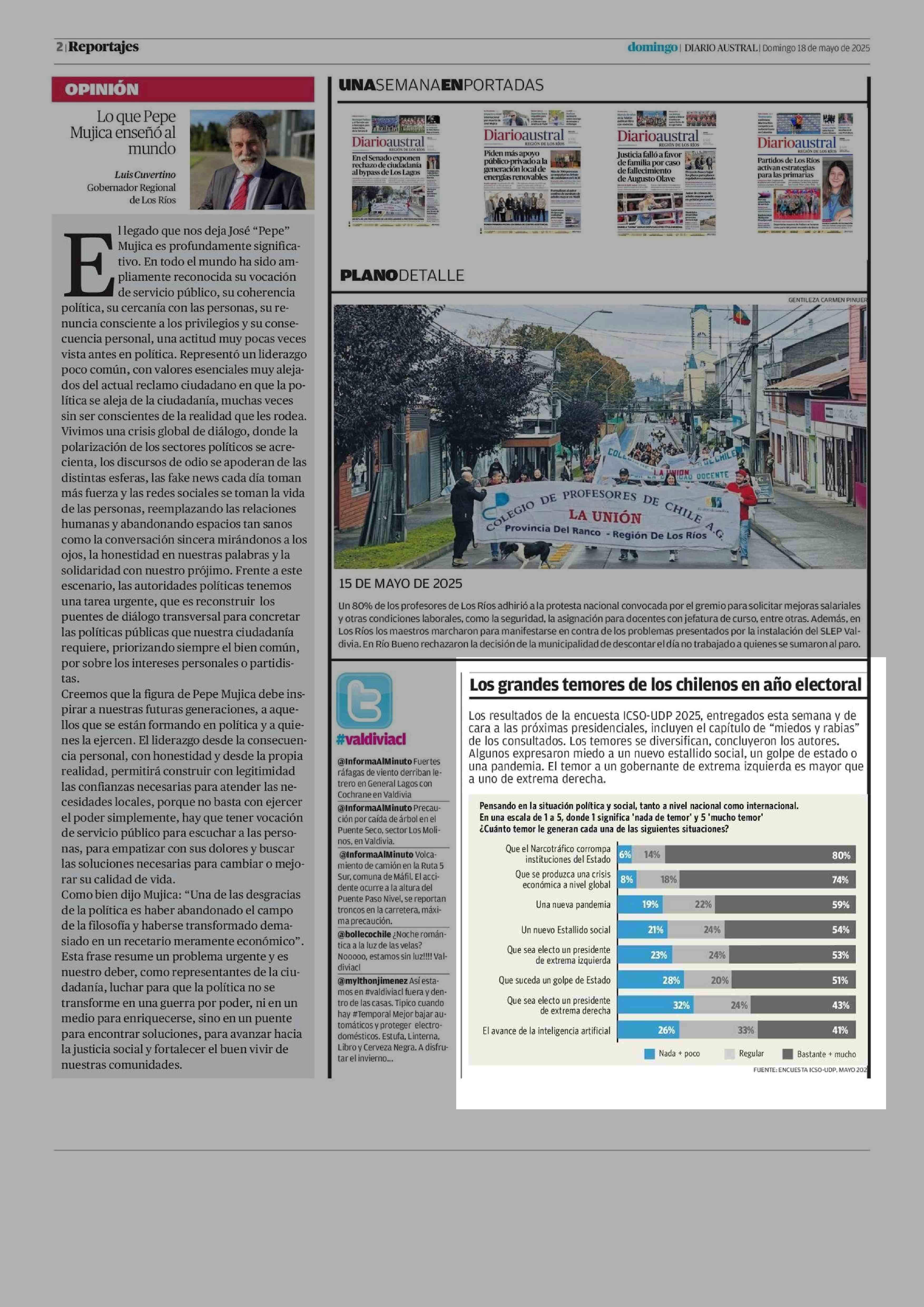 | Los grandes temores de los chilenos en año electoral 18-05-2025 Diario Austral Región de Los Ríos |