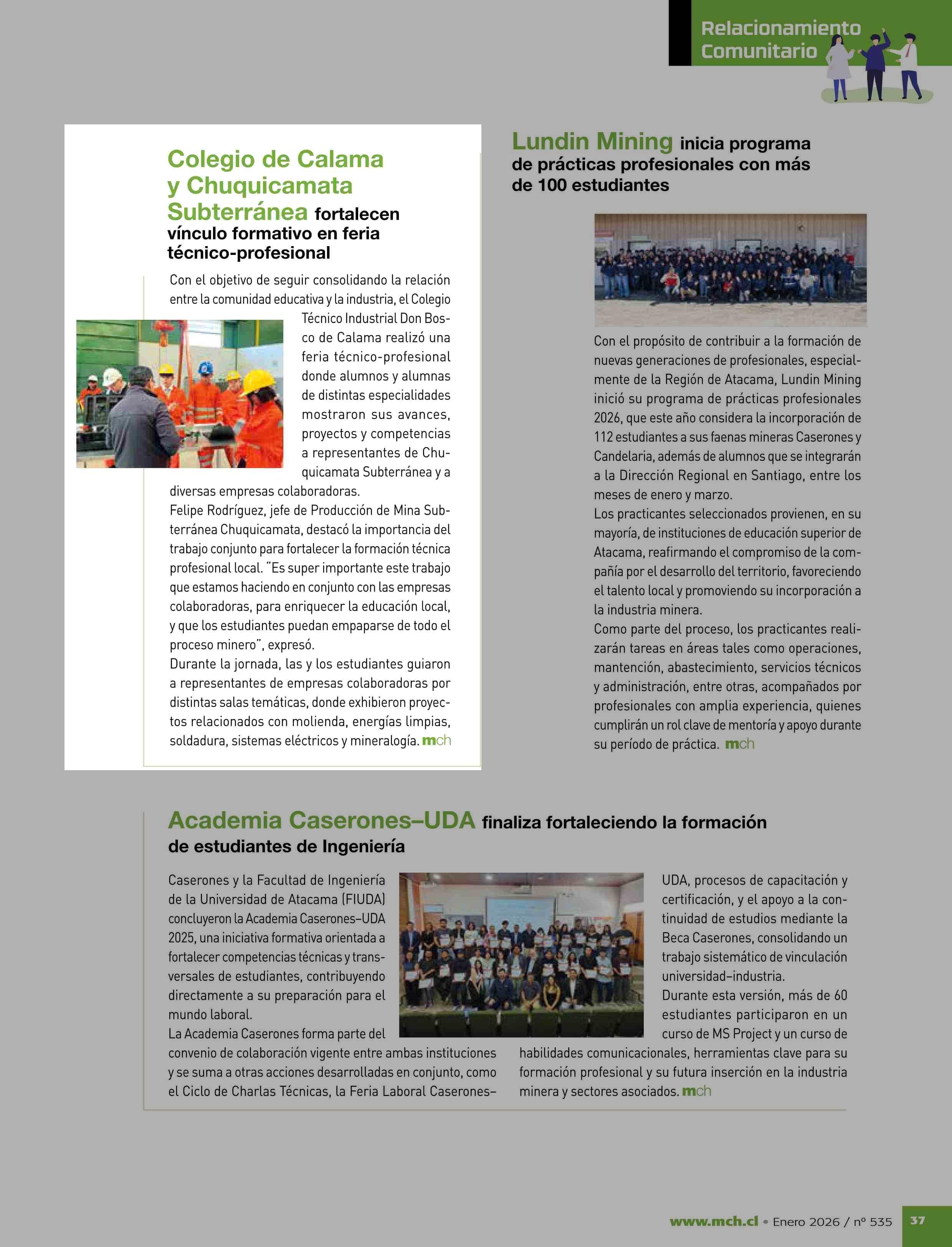 Colegio de Calama y Chuquicamata Subterránea 23-01-2026 Revista Minería Chilena |
