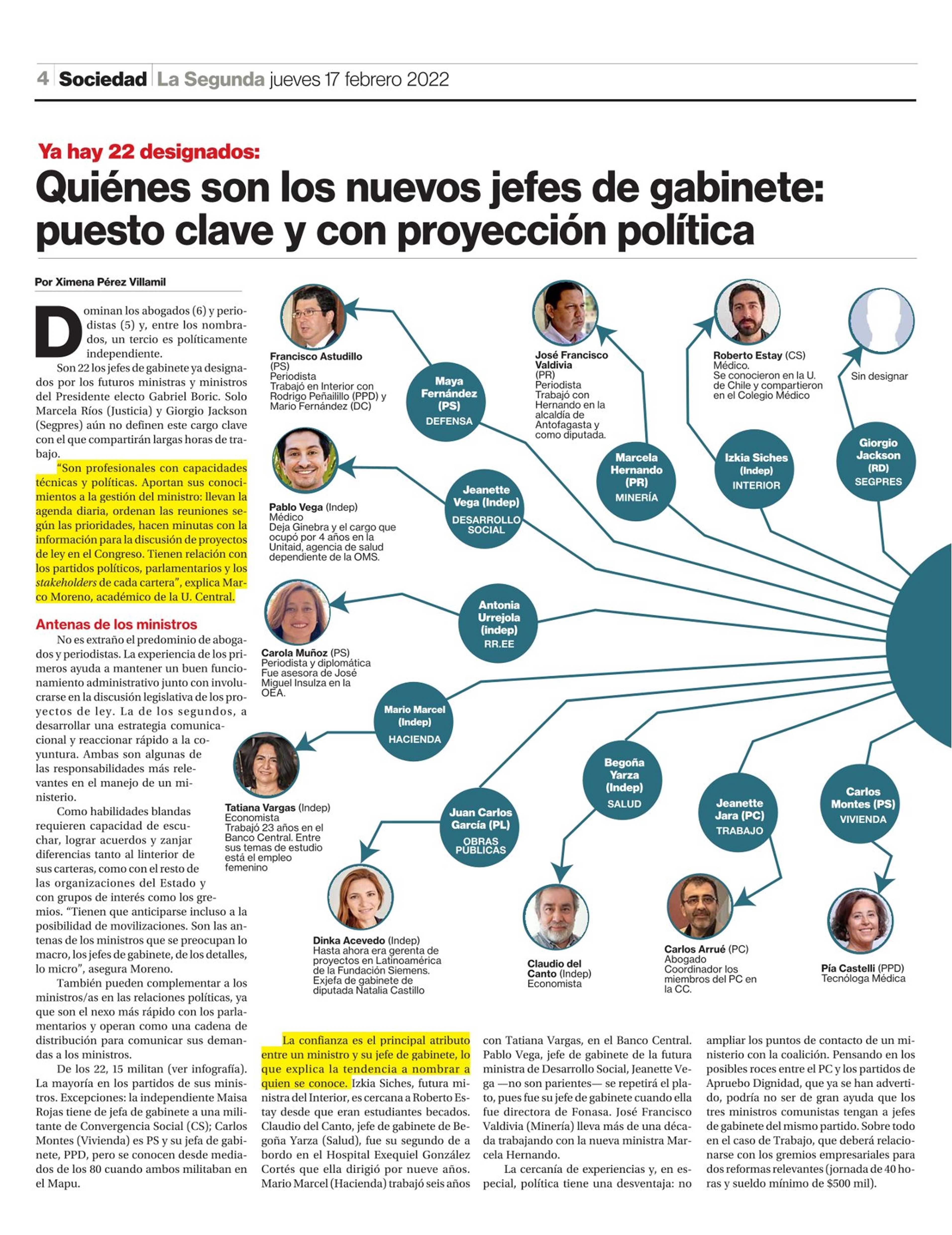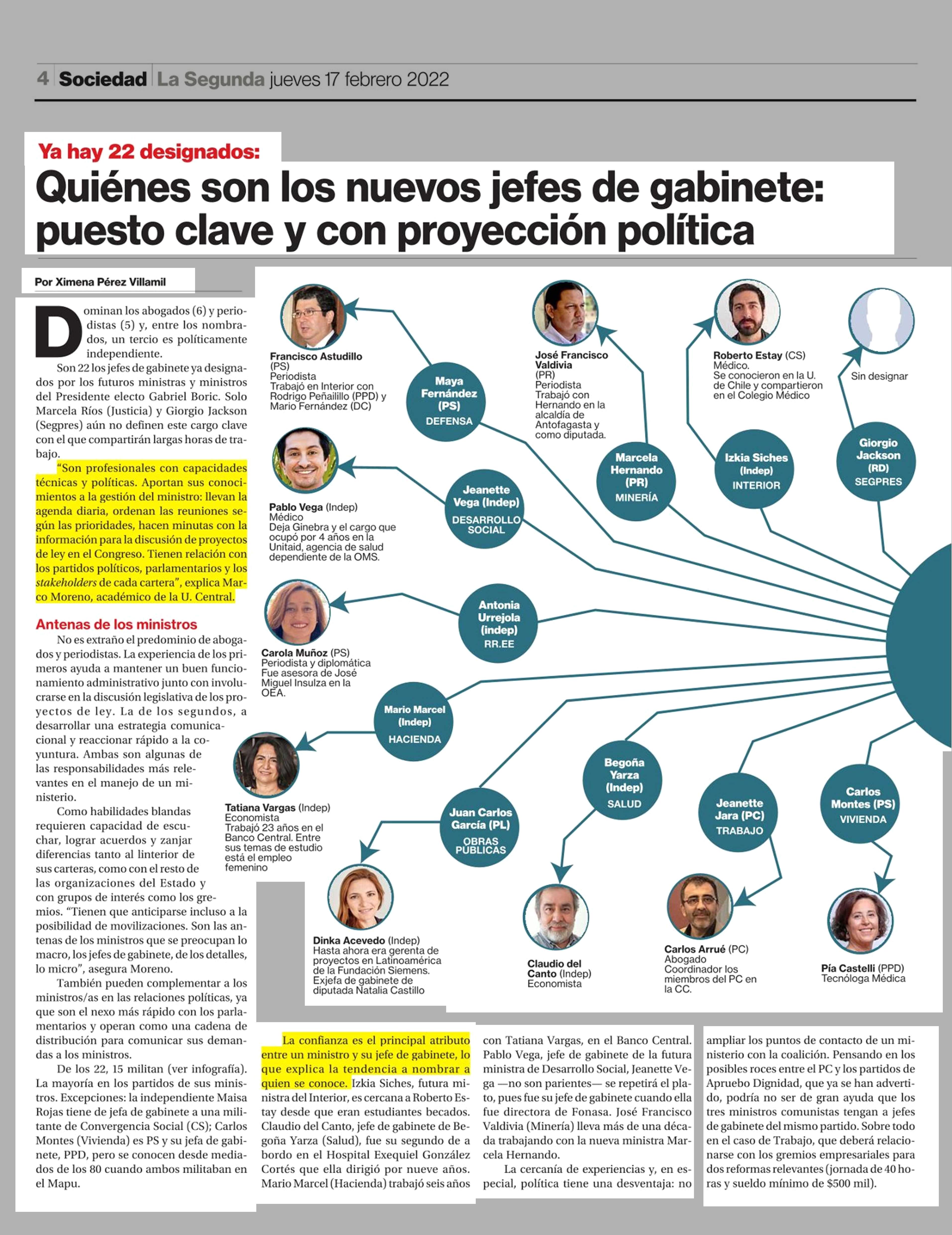 Quiénes son los nuevos jefes de gabinete: puesto clave y con proyección política 17-02-2022 La Segunda |