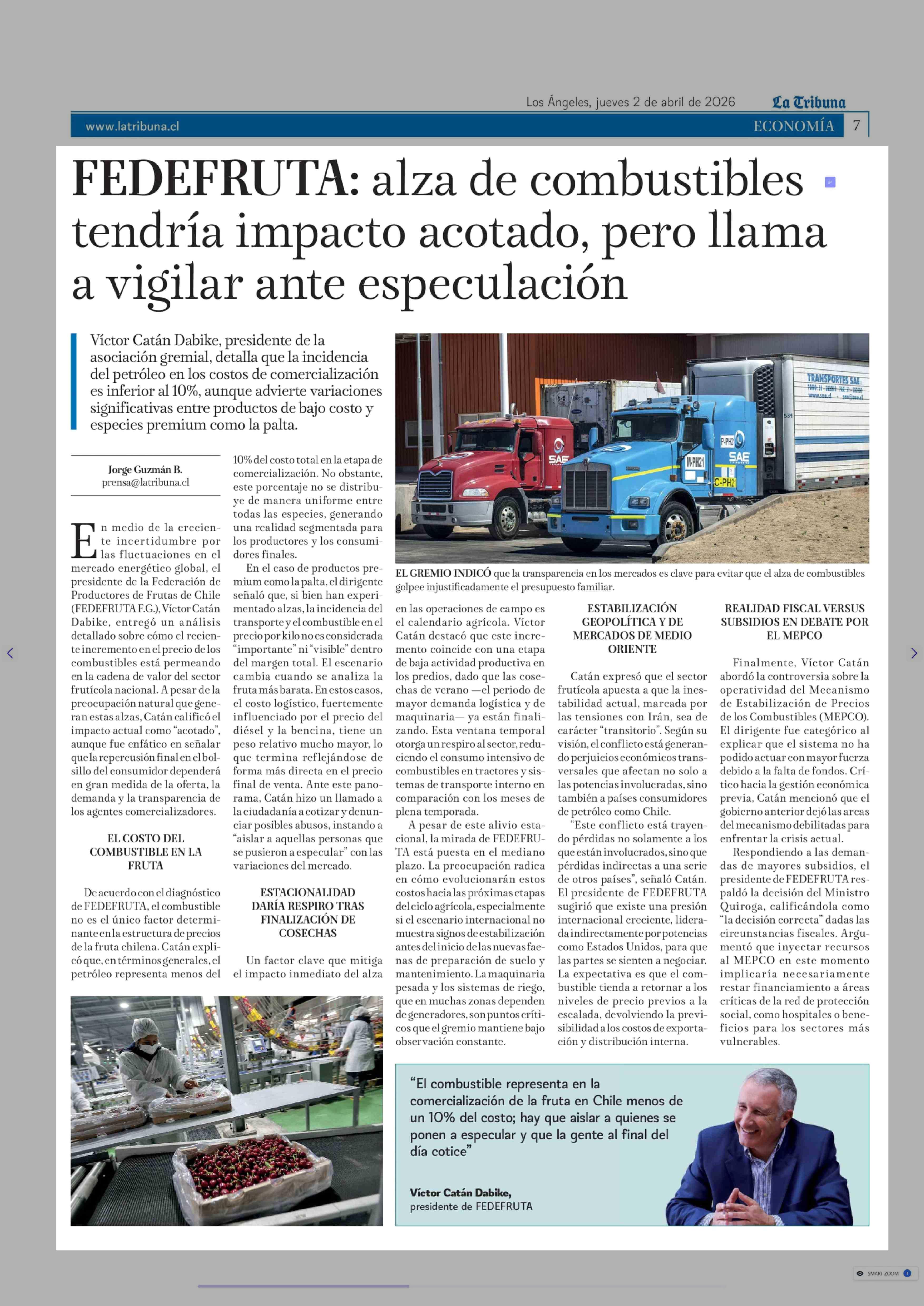 FEDEFRUTA: alza de combustibles tendría impacto acotado, pero llama a vigilar ante especulación 02-04-2026 La Tribuna |
