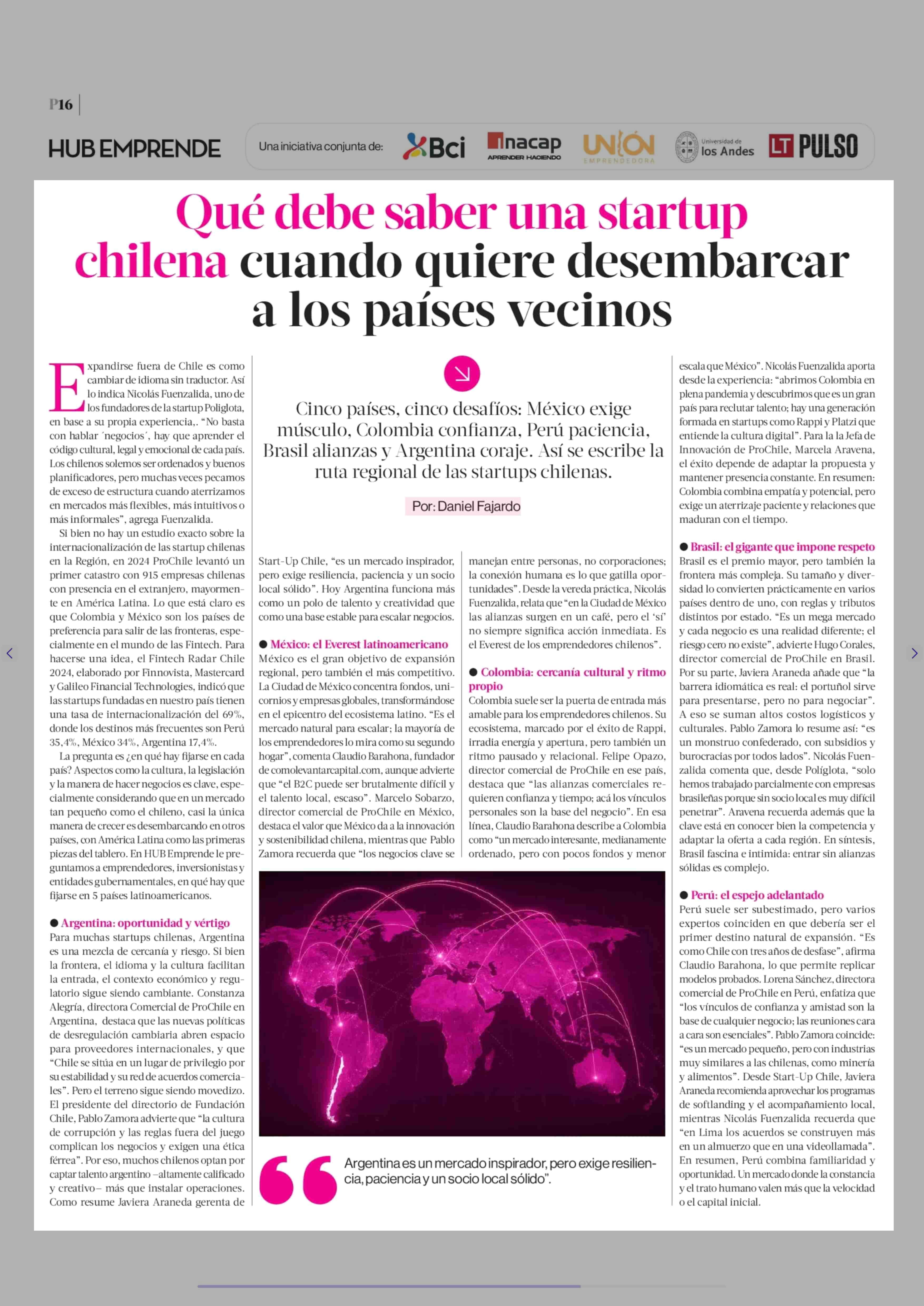 Que debe saber una startup chilena cuando quiere desembarcar a los países vecinos 26-10-2025 La Tercera |