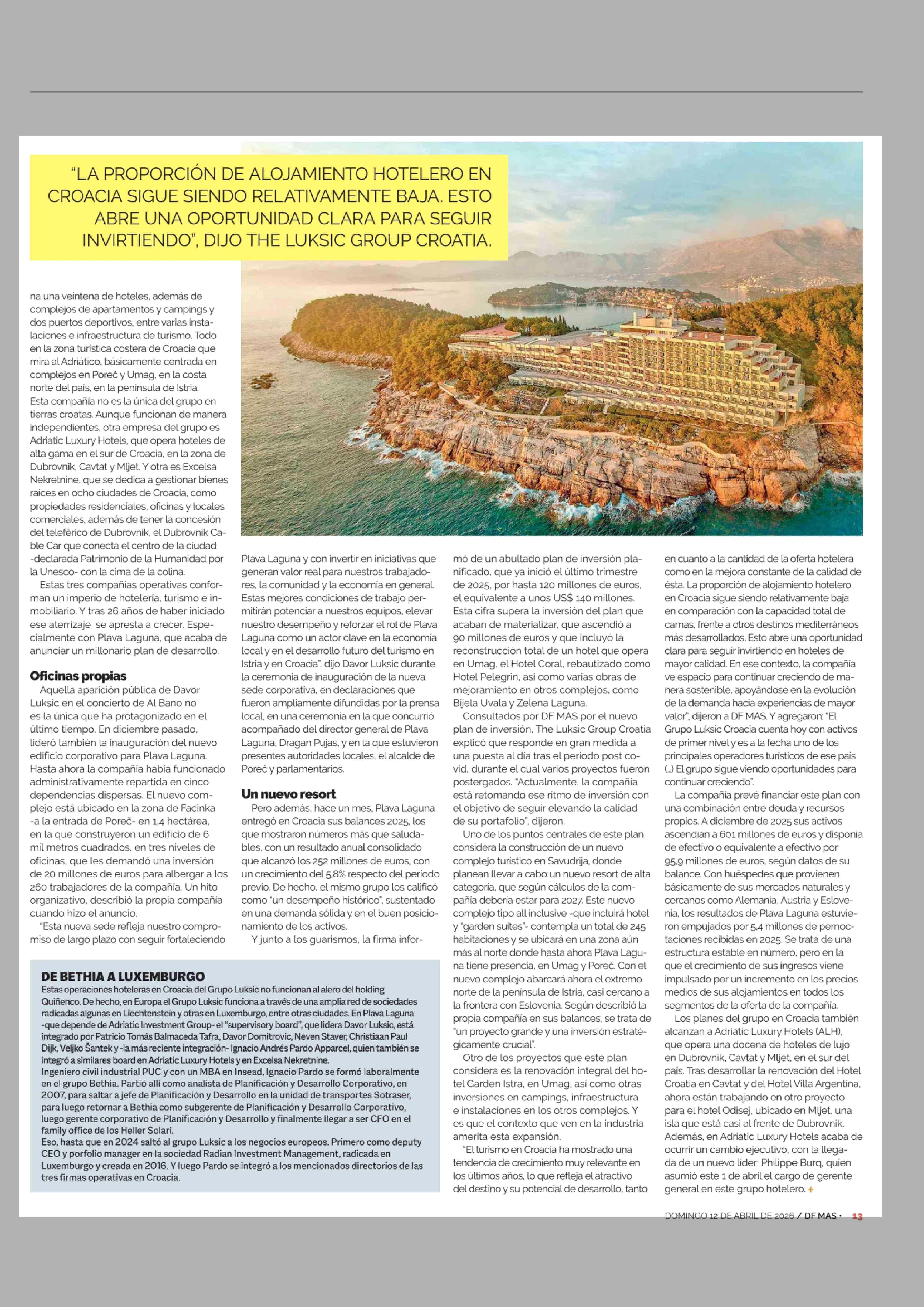 Título: EL PLAN DE EXPANSION QUE LIDERA DAVOR LUKSIC EN CROACIA