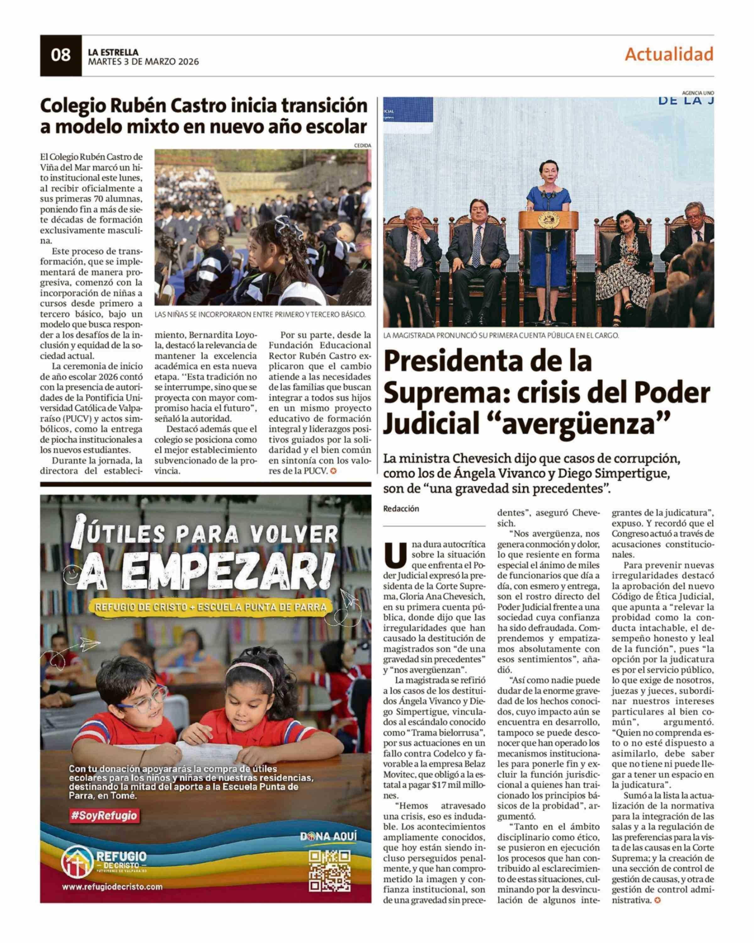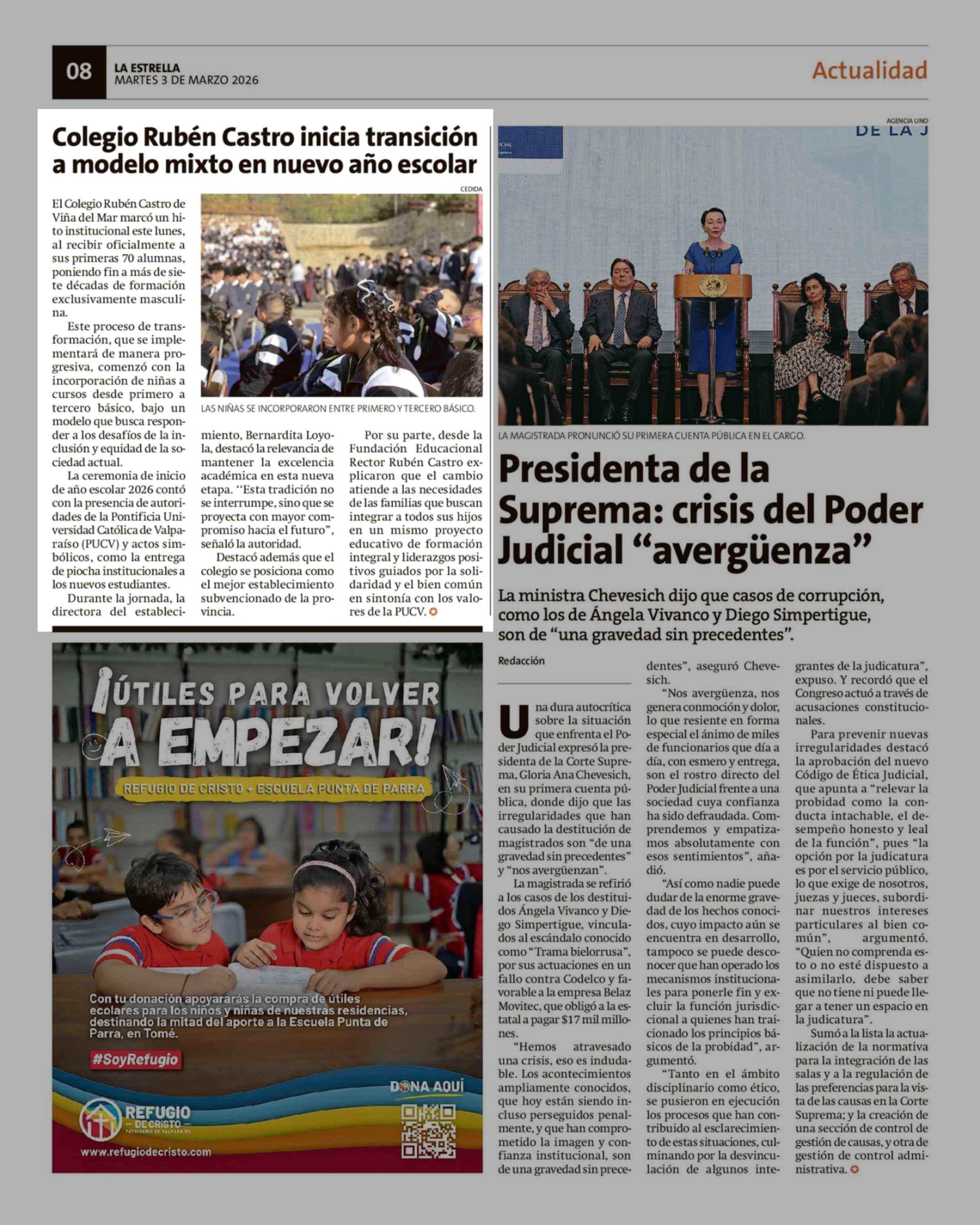 Colegio Rubén Castro inicia transición a modelo mixto en nuevo año escolar 03-03-2026 La Estrella de Valparaíso |