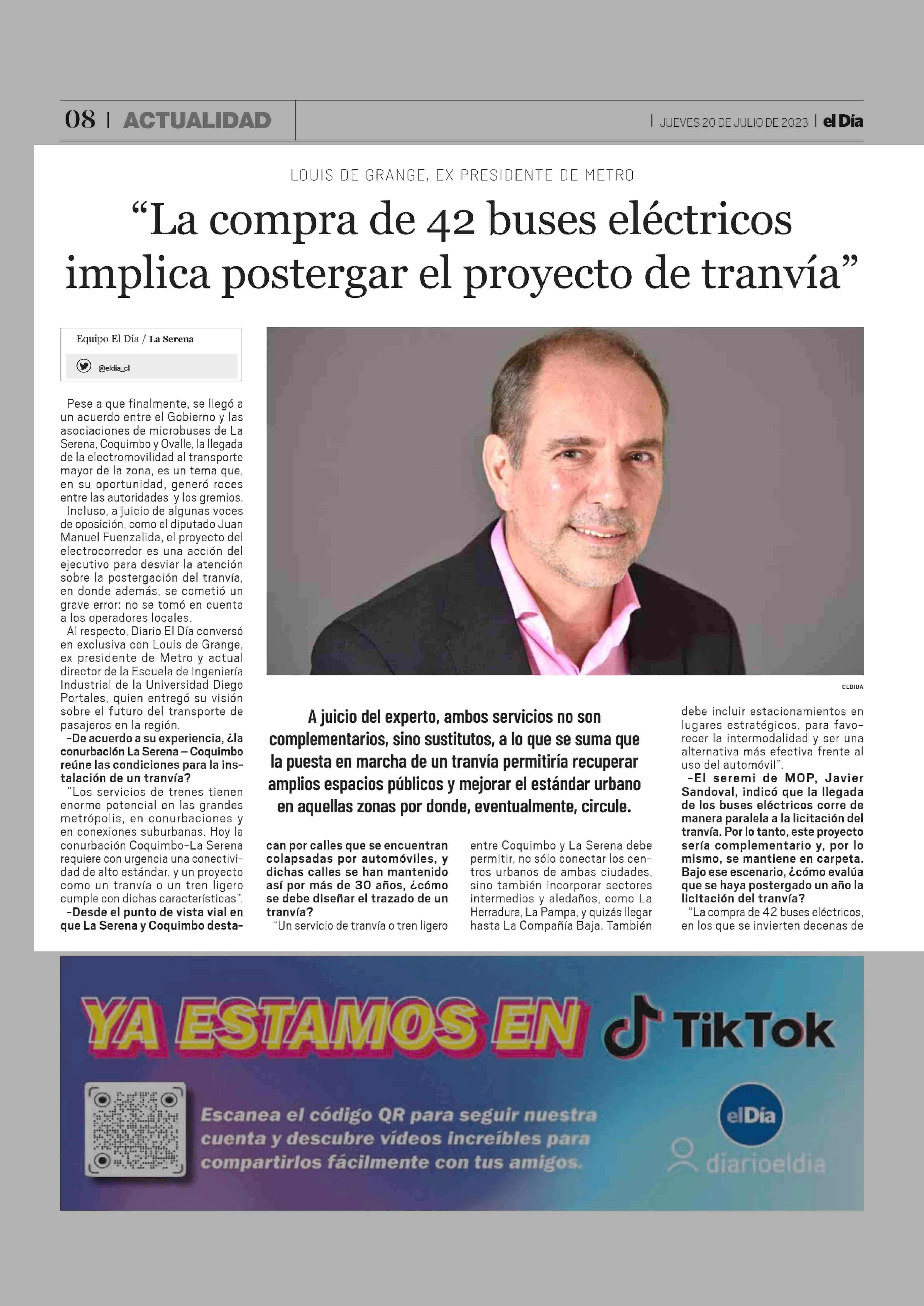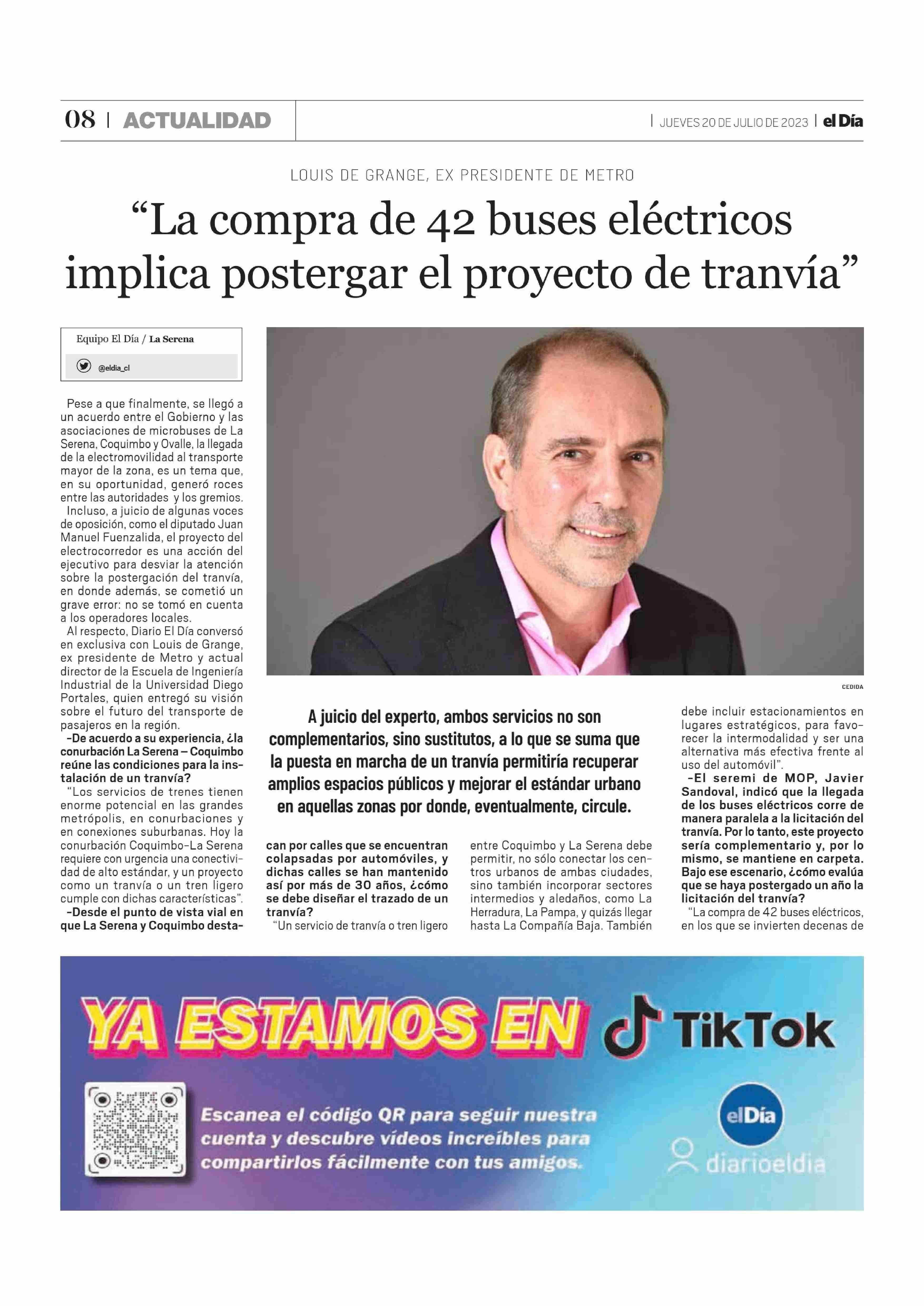 Título: "La compra de 42 buses eléctricos implica postergar el proyecto de tranvía"