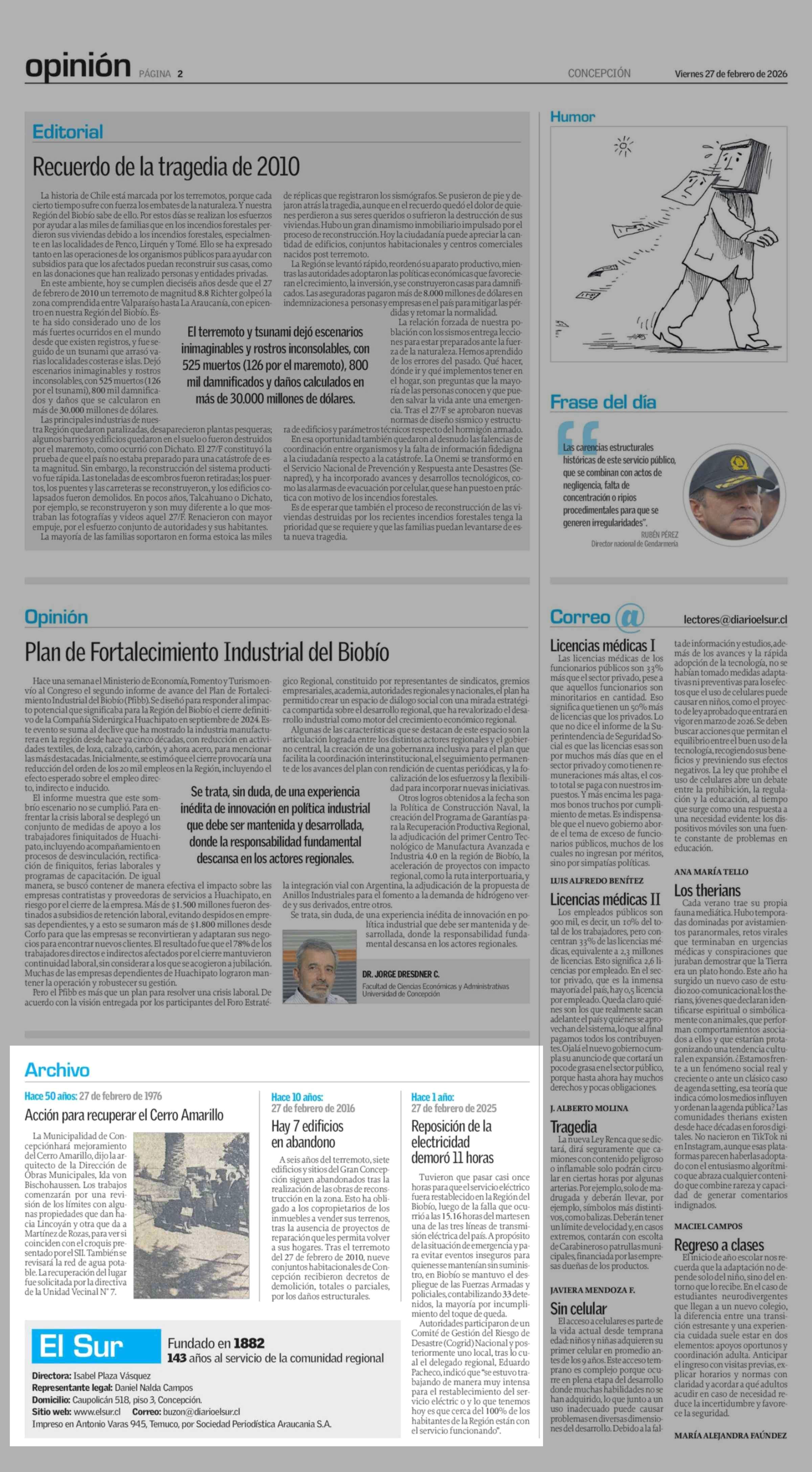 Fecha: 27-02-2026 Sector: Noticia general Región: Región del Bío-Bío