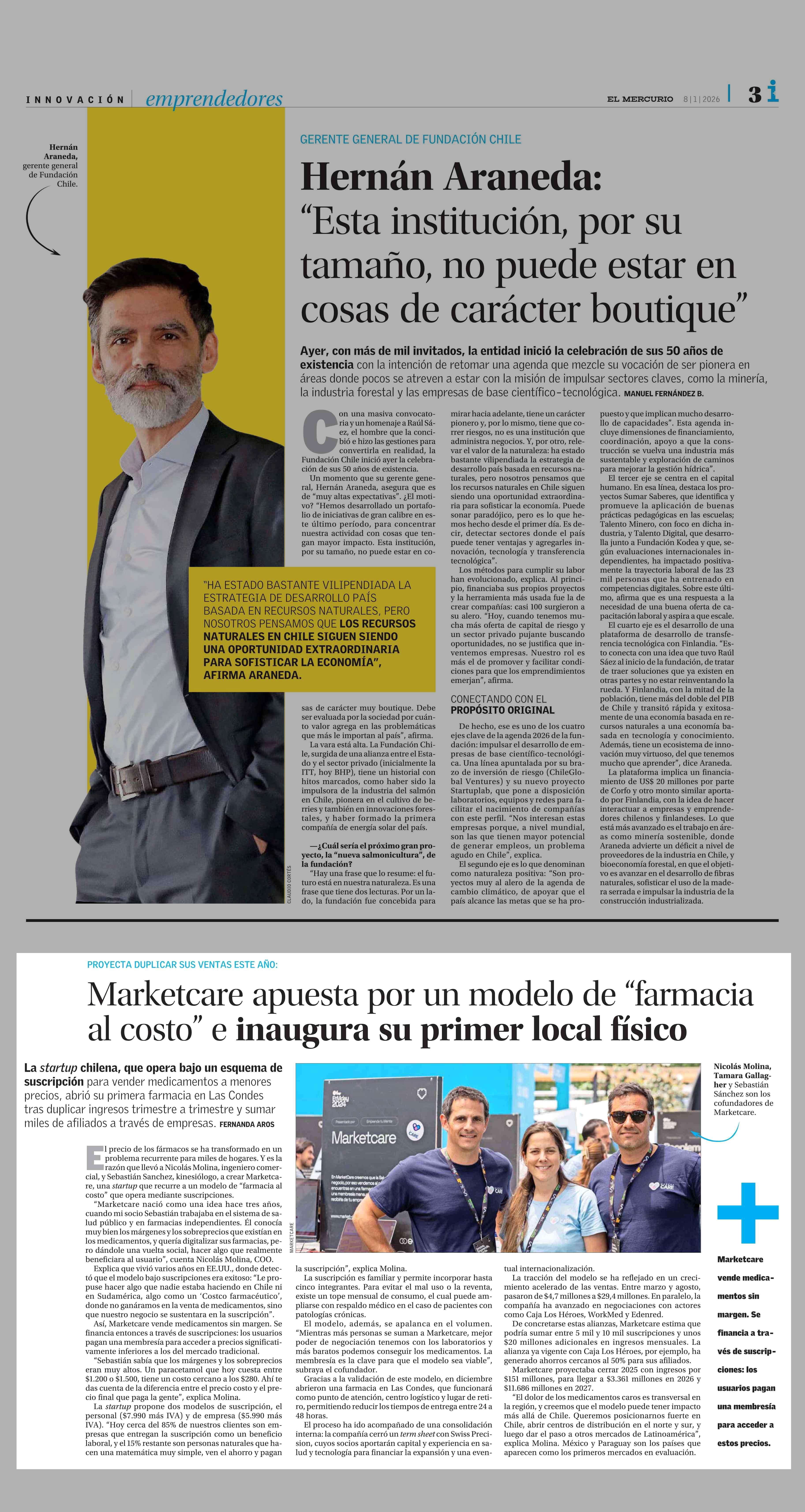 Marketcare apuesta por un modelo de “farmacia al costo” e inaugura su primer local físico 08-01-2026 El Mercurio |