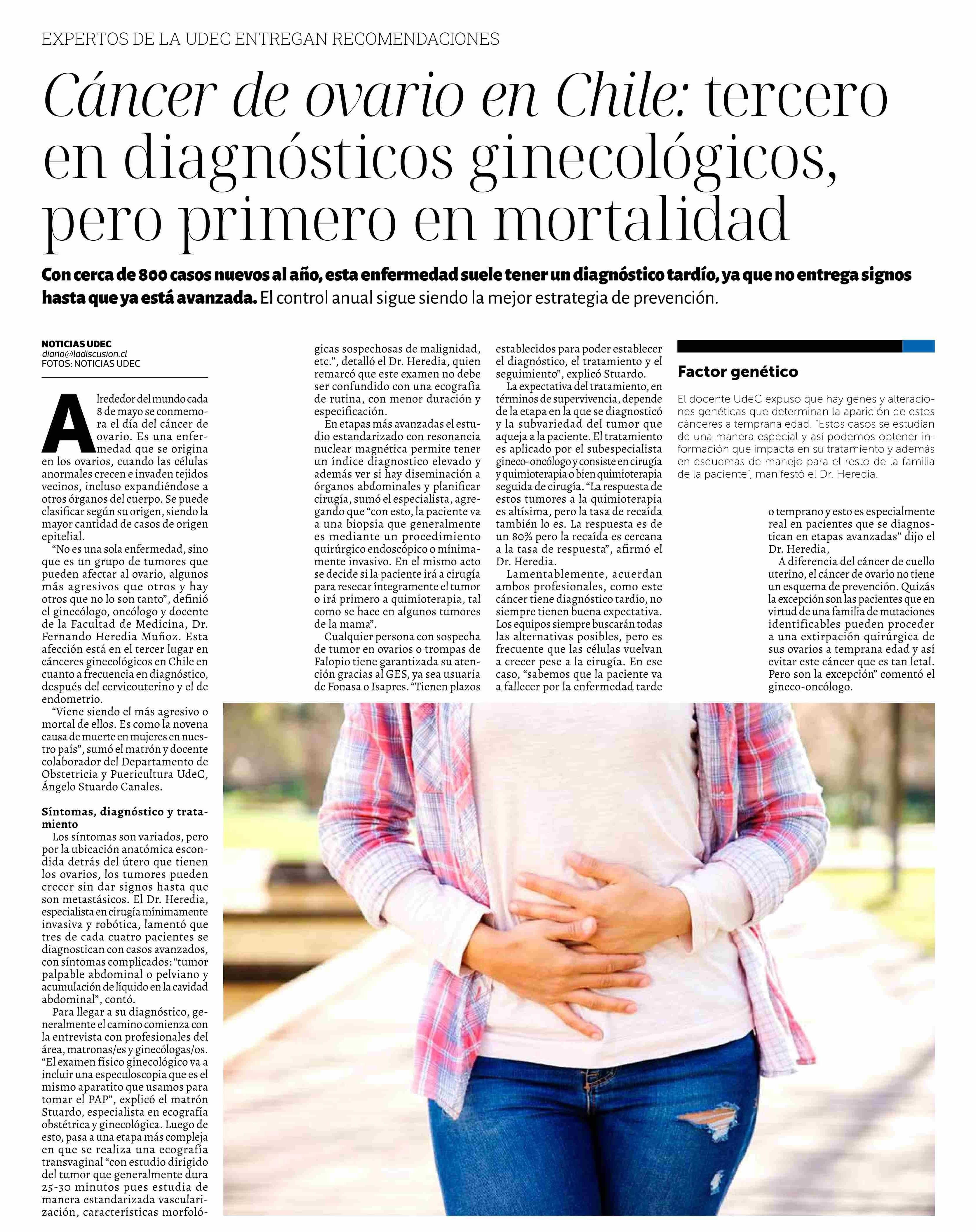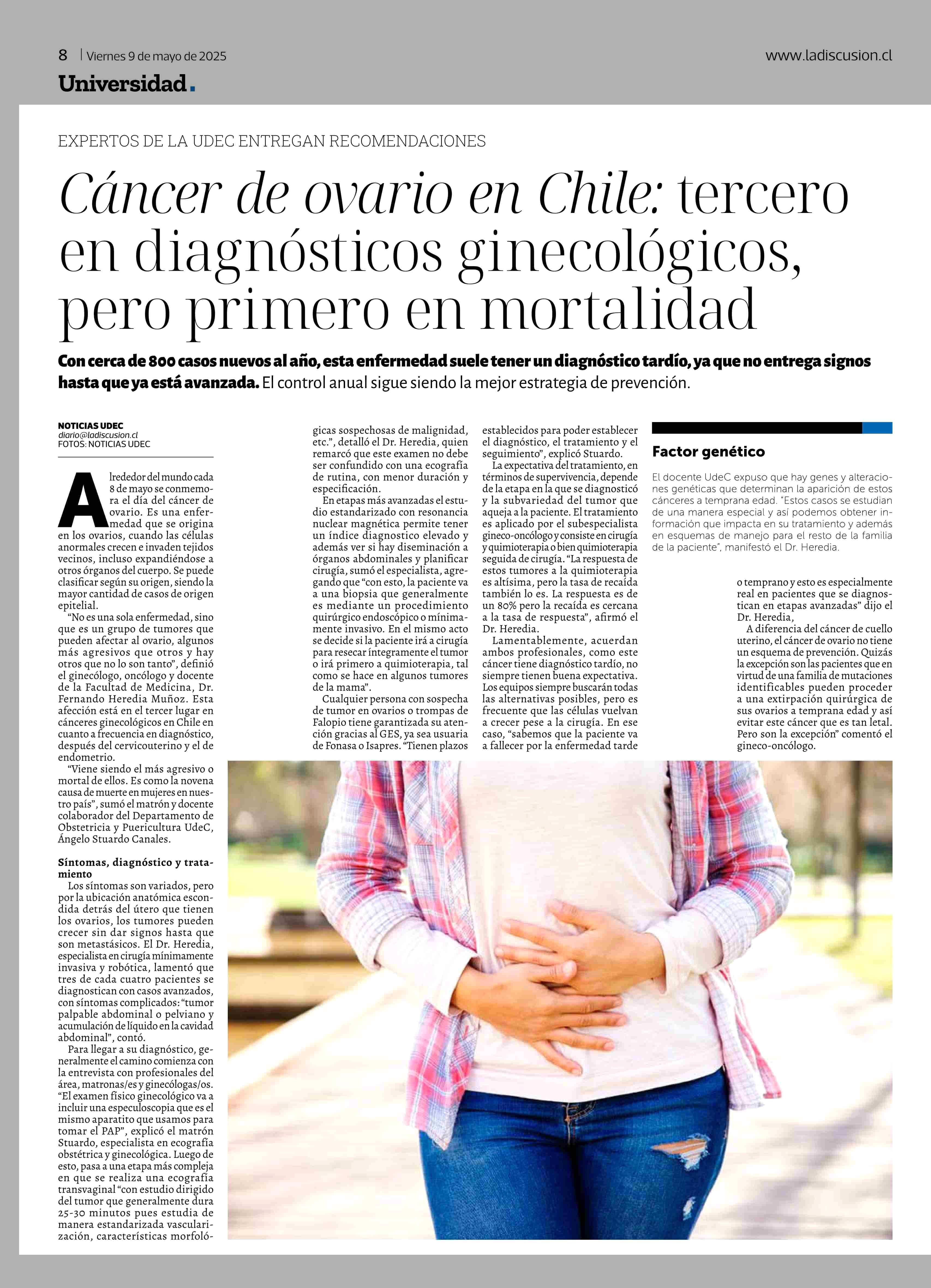 Cáncer de ovario en Chile: tercero en diagnósticos ginecológicos, pero primero en mortalidad 09-05-2025 La Discusión |