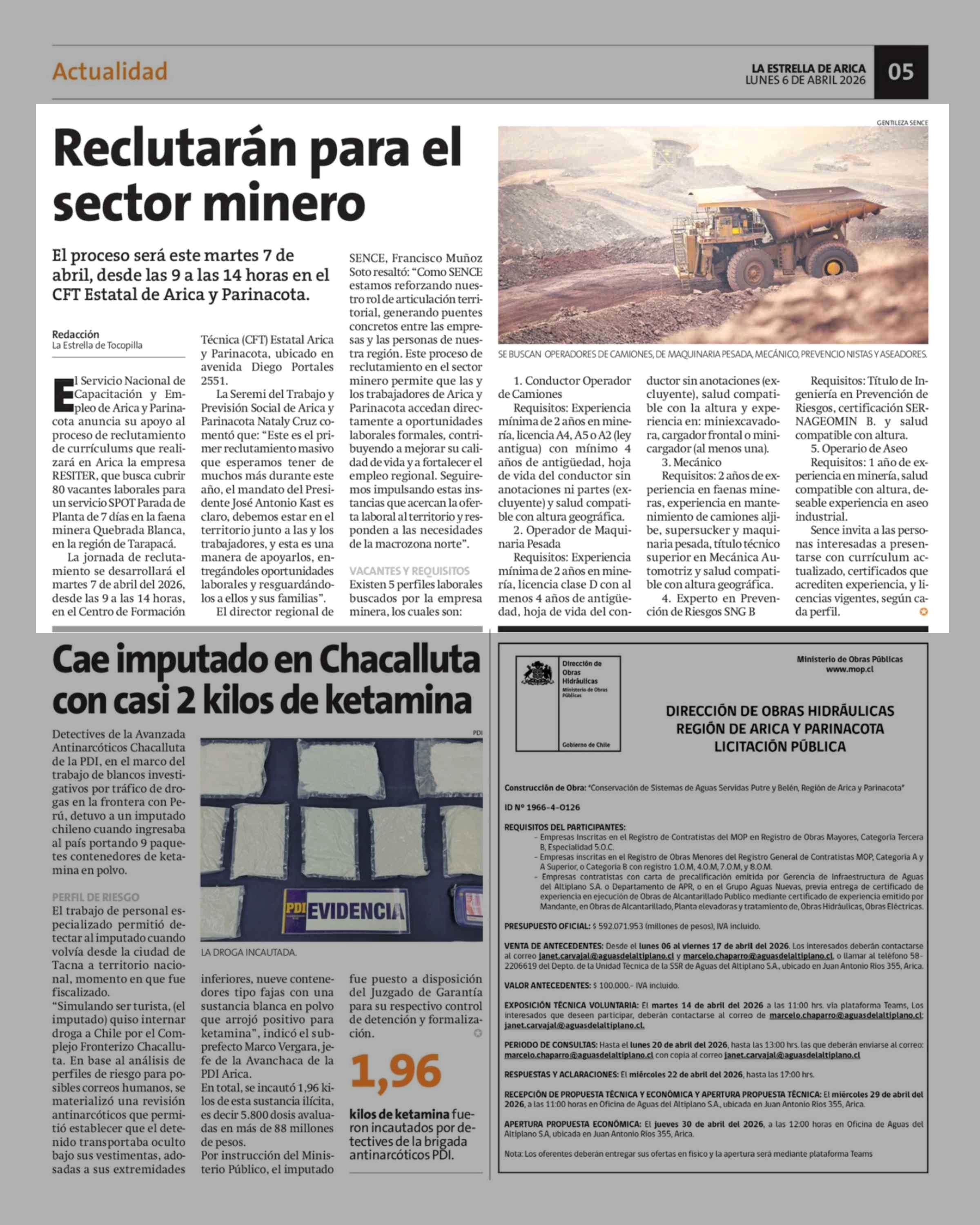 Fecha: 06-04-2026 Sector: Noticia general Región: Región de Arica y Parinacota