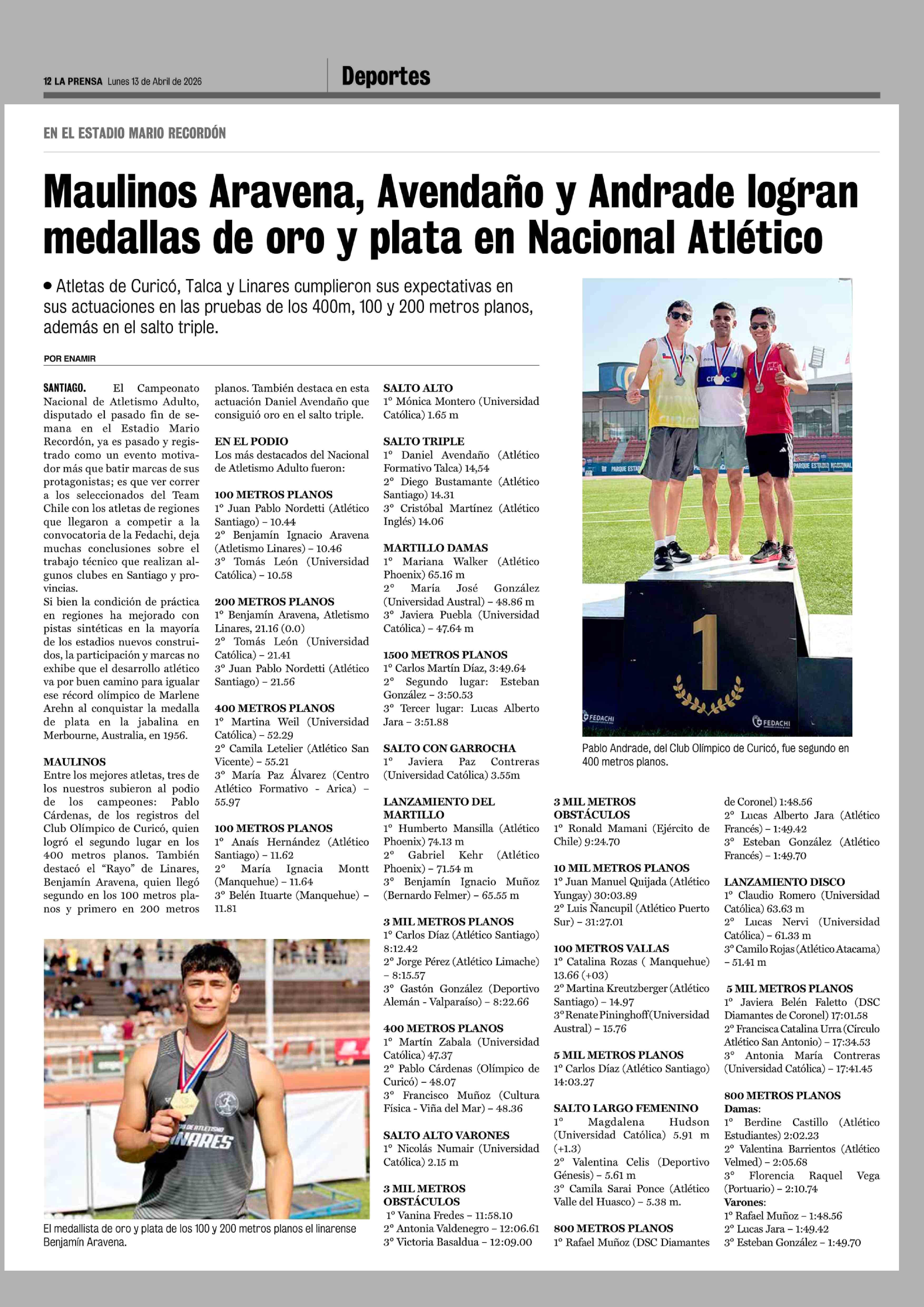 Título: Maulinos Aravena, Avendaño y Andrade logran medallas de oro y plata en Nacional Atlético