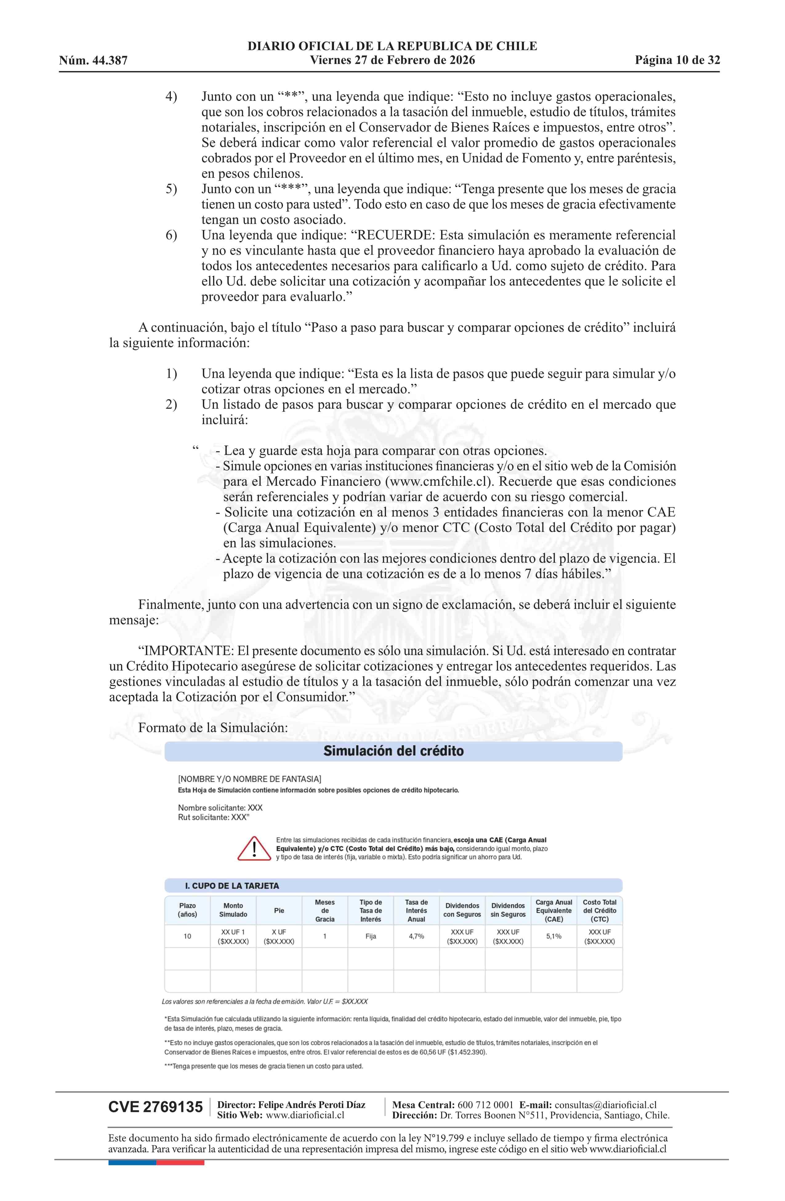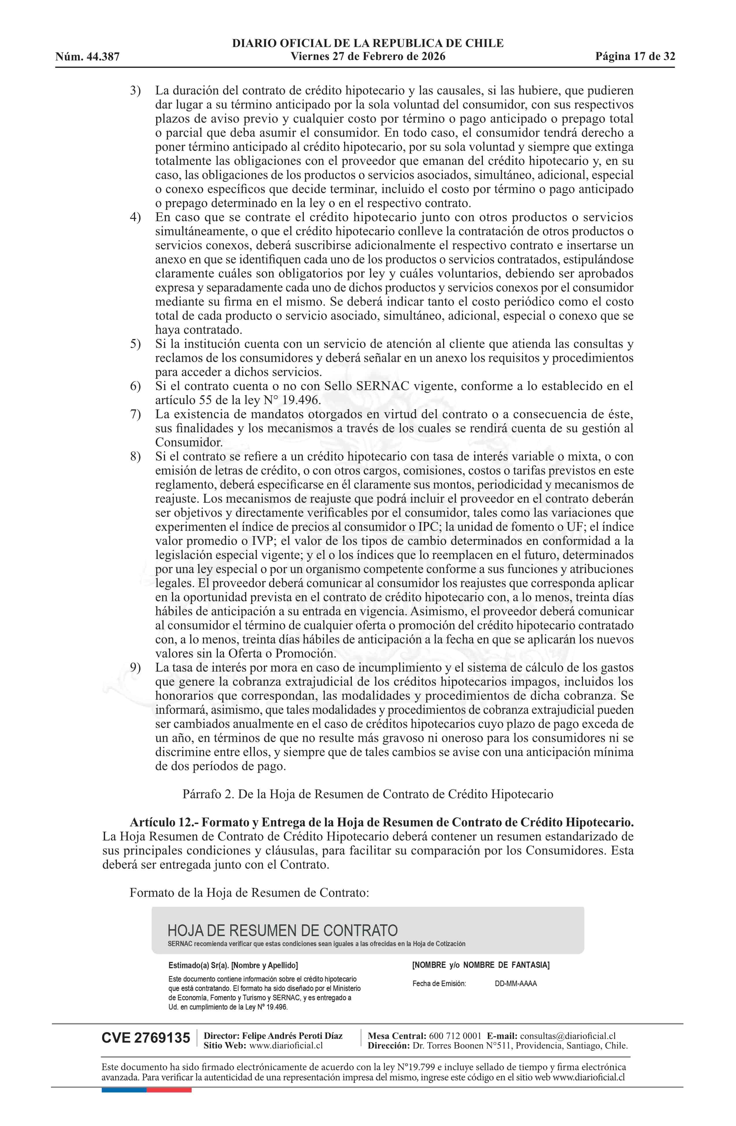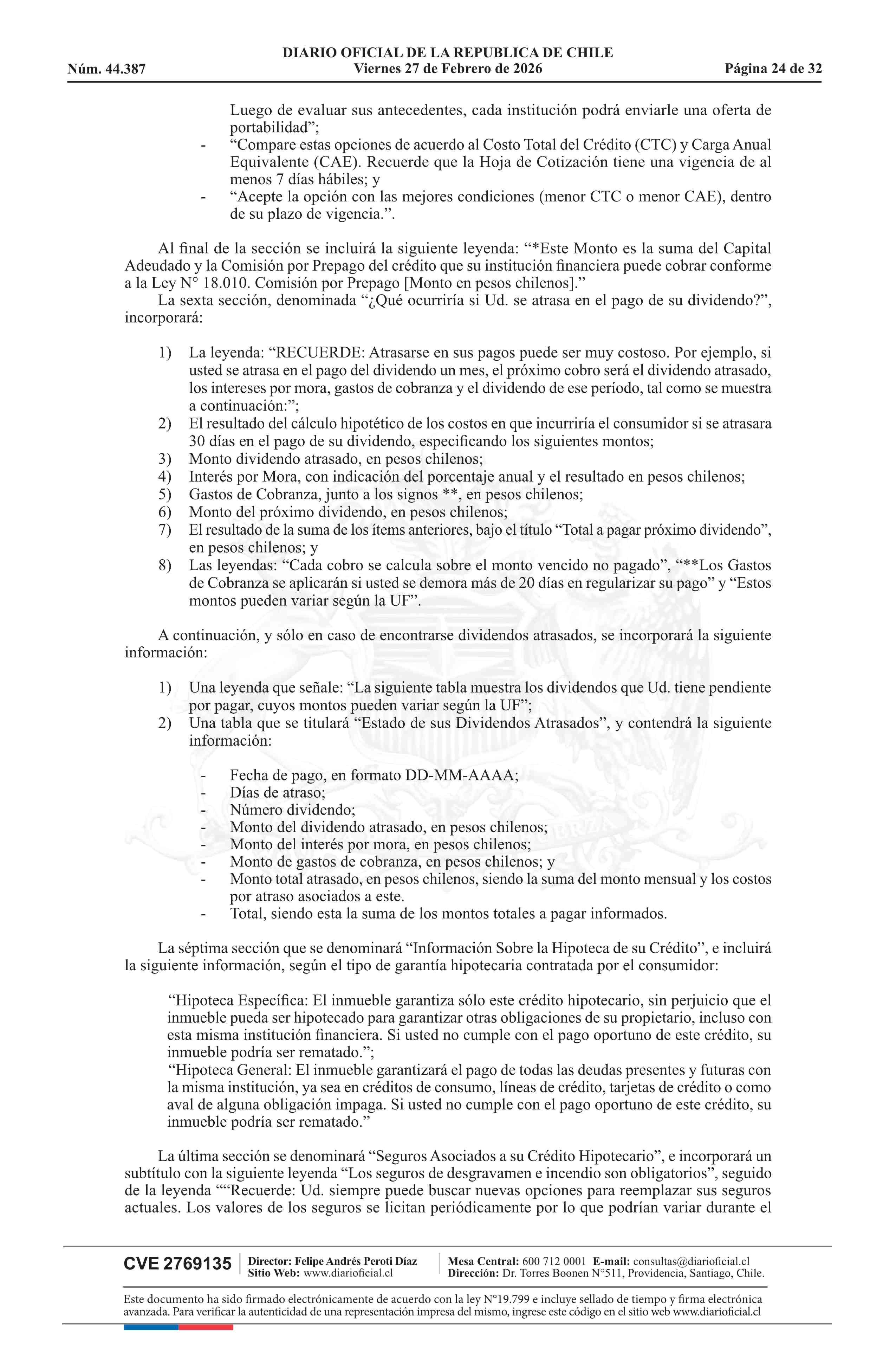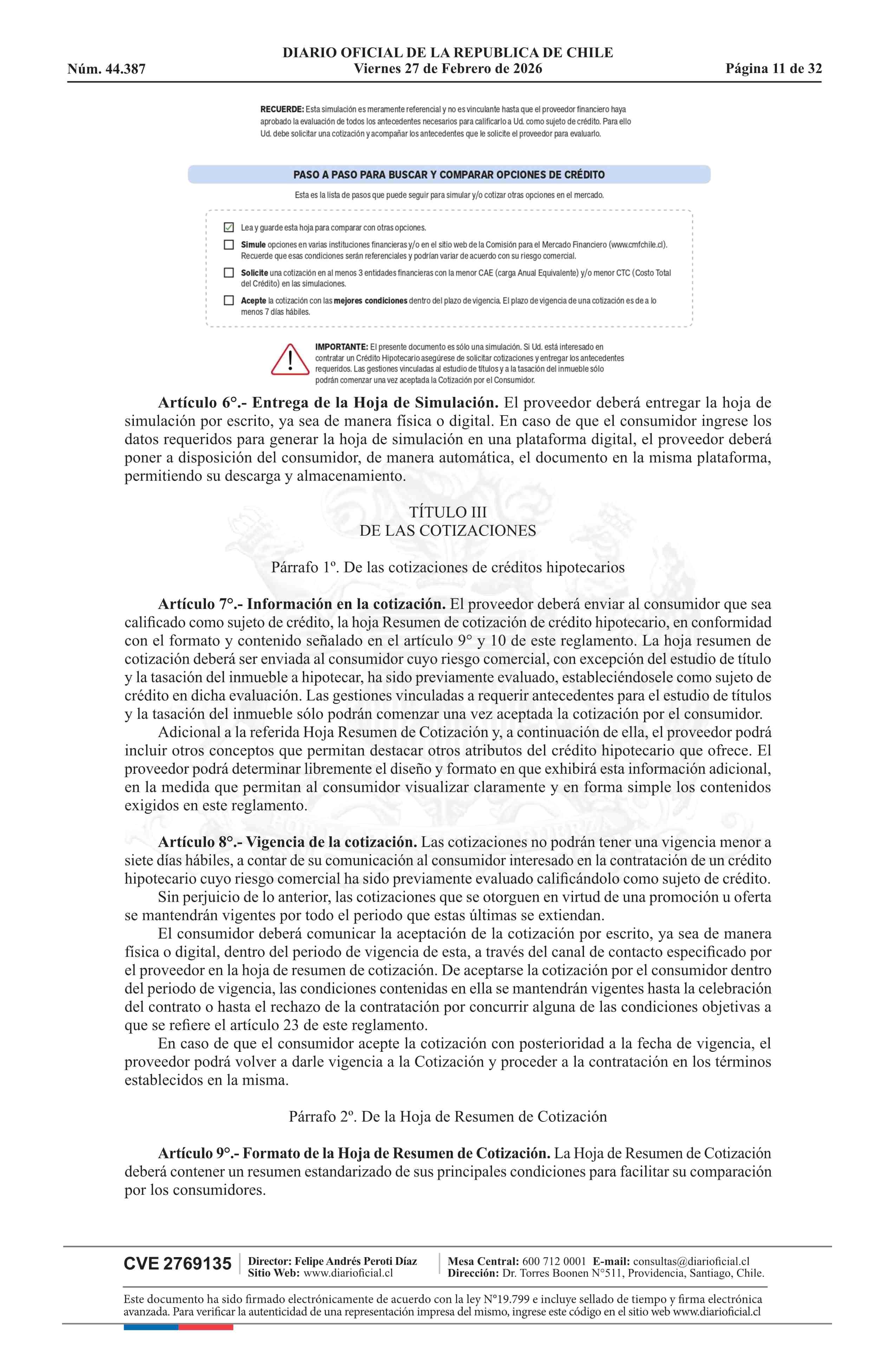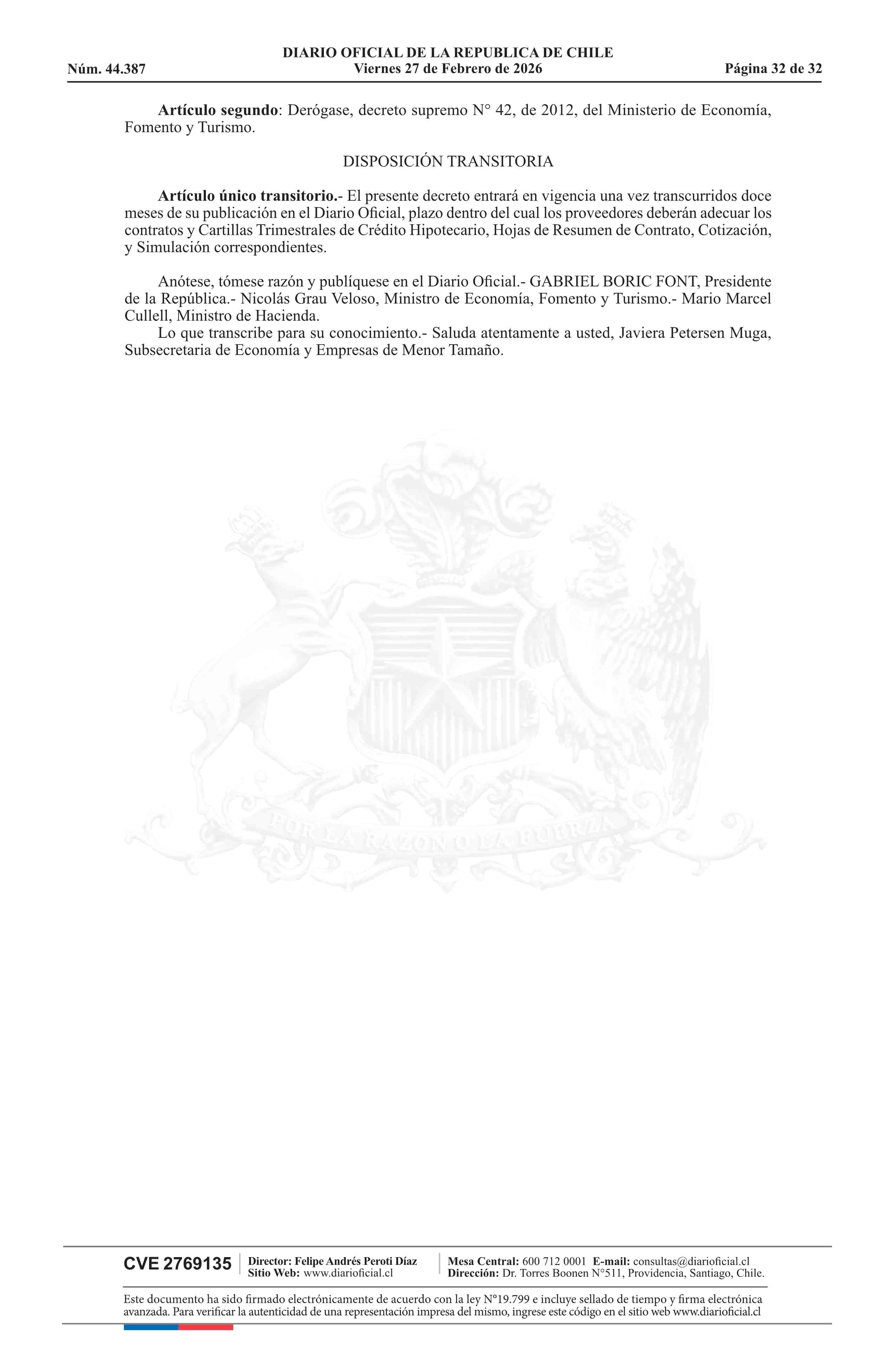 Decreto número 49, de 2024.- Aprueba nuevo Reglamento sobre información al consumidor de créditos hipotecarios y deja sin efecto el decreto N° 42 de 2012 27-02-2026 Diario Oficial Edición Electrónica |