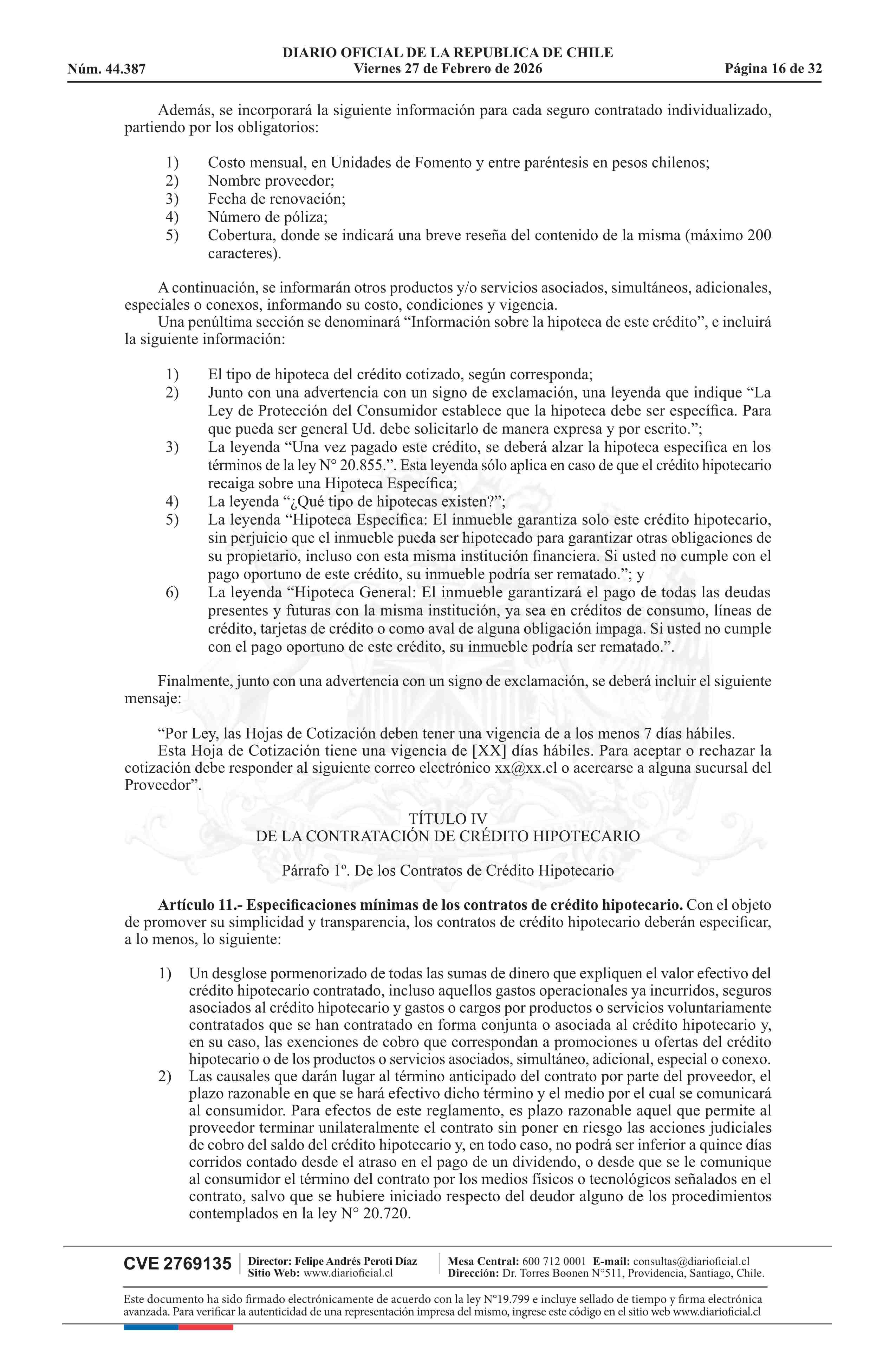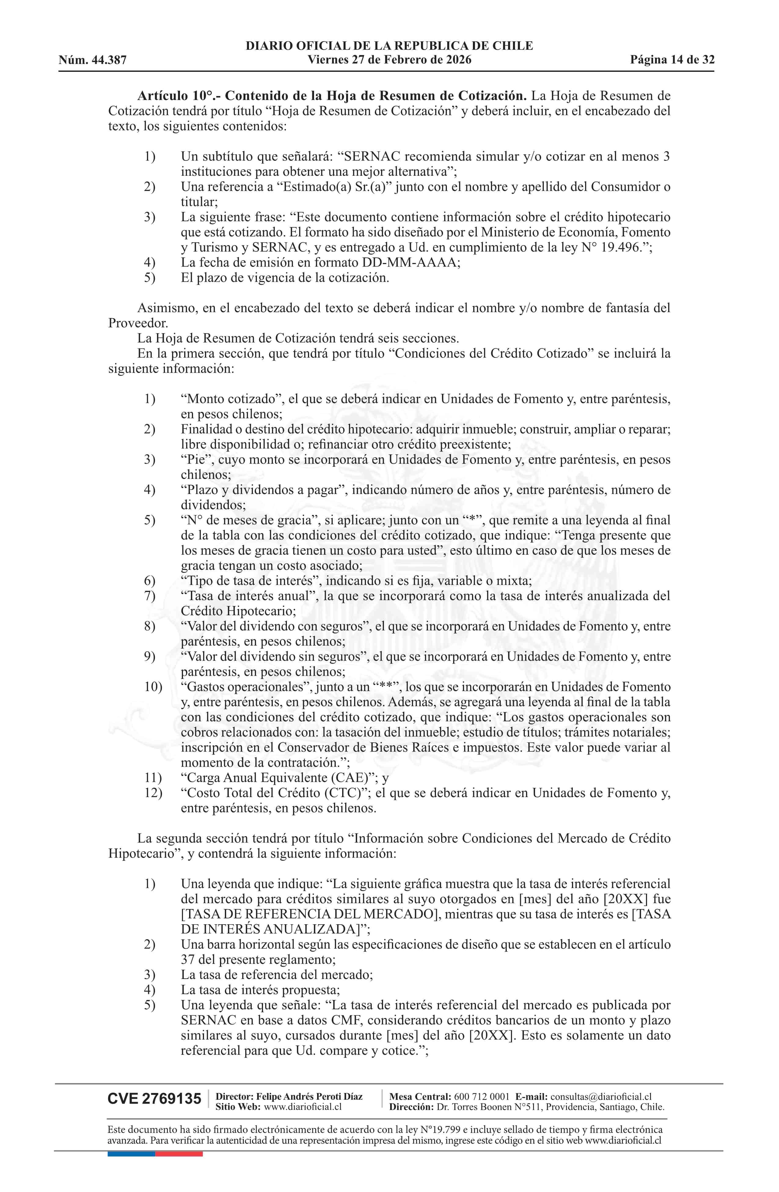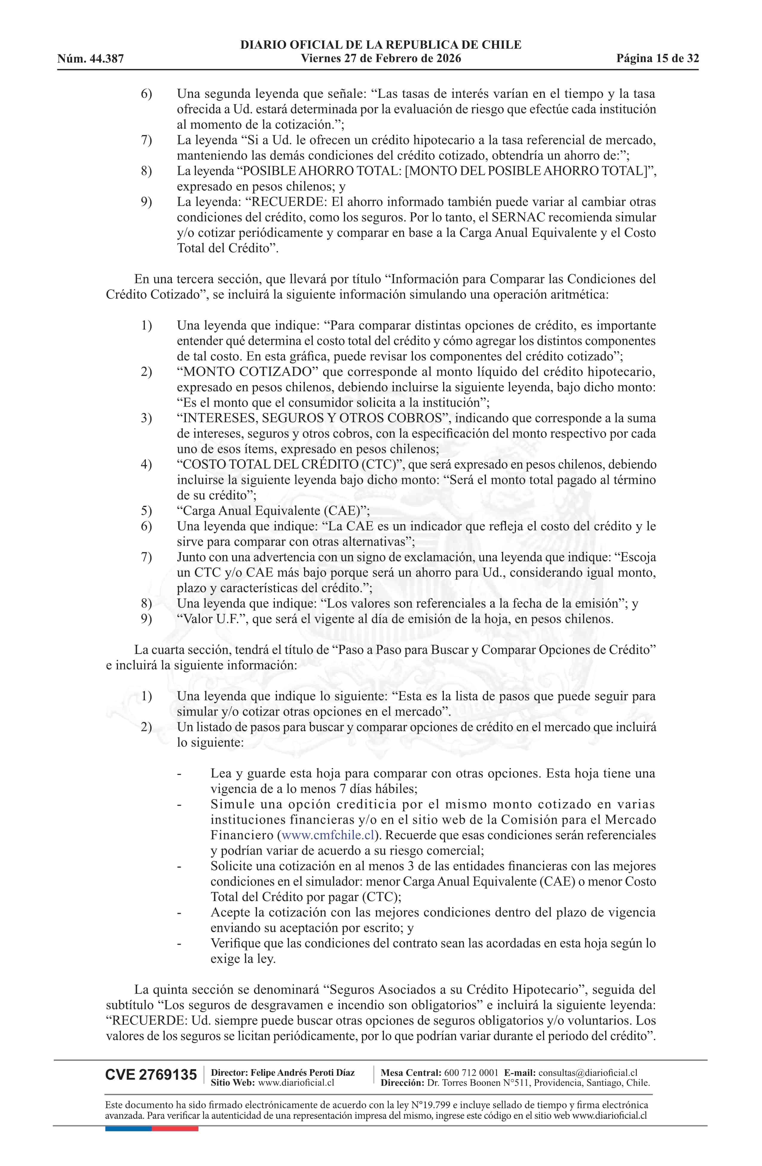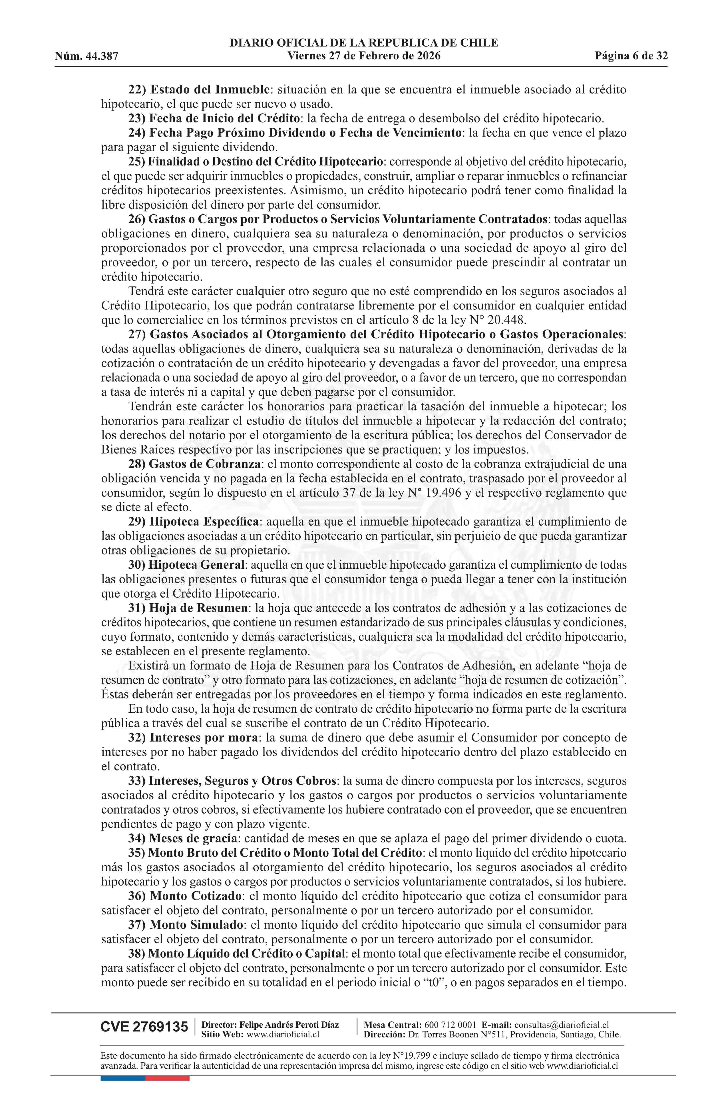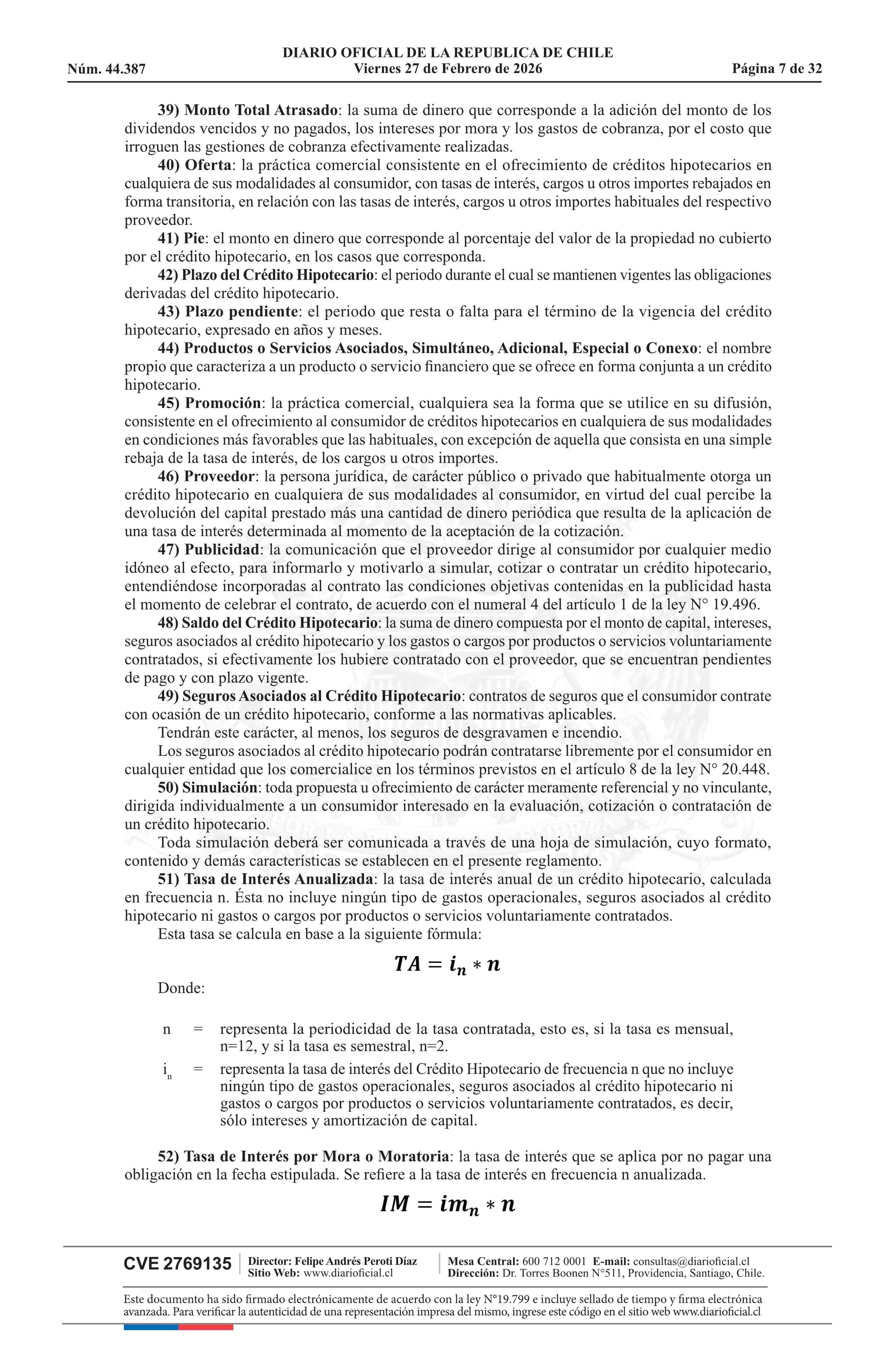 Decreto número 49, de 2024.- Aprueba nuevo Reglamento sobre información al consumidor de créditos hipotecarios y deja sin efecto el decreto N° 42 de 2012 27-02-2026 Diario Oficial Edición Electrónica |