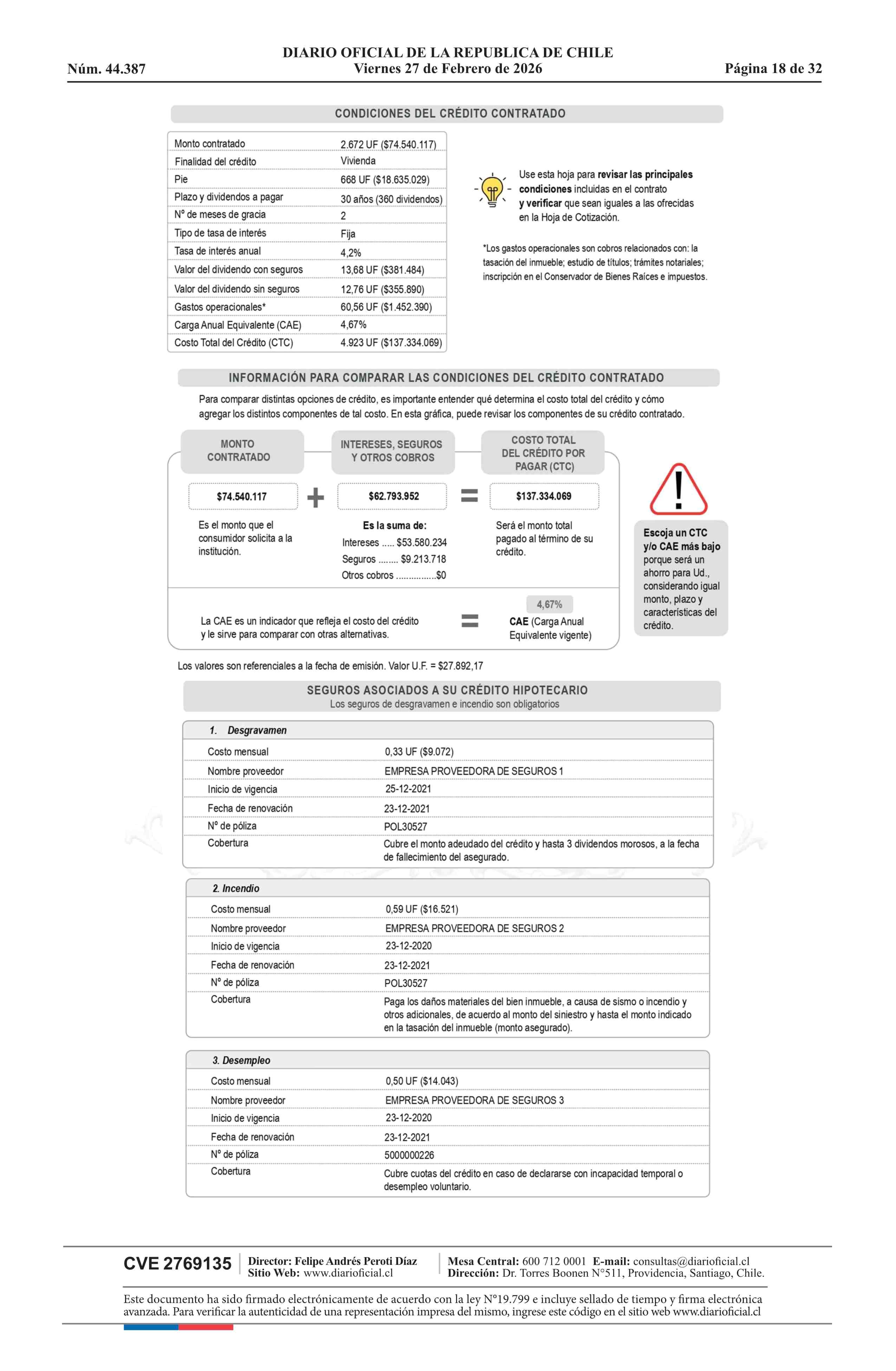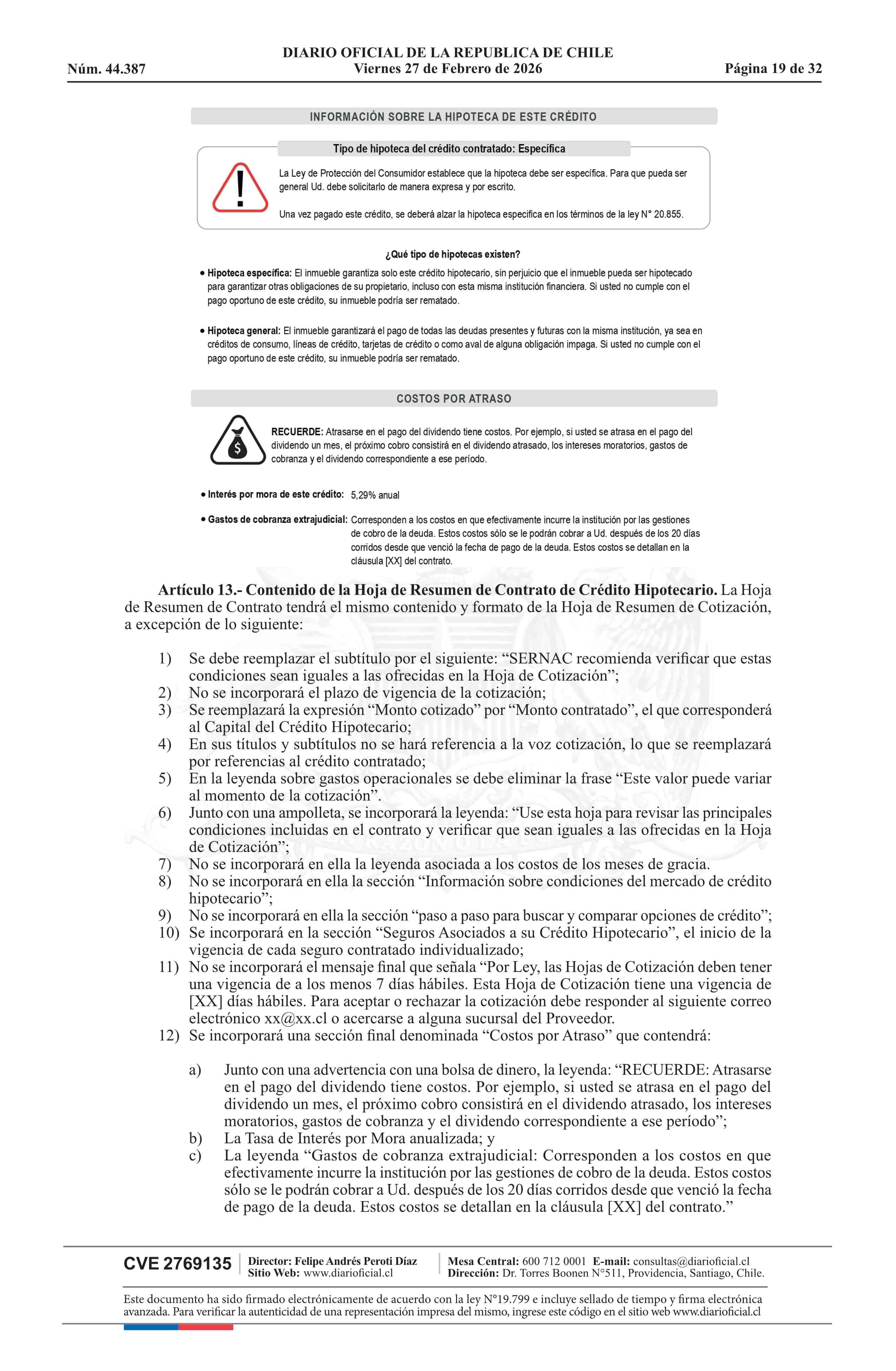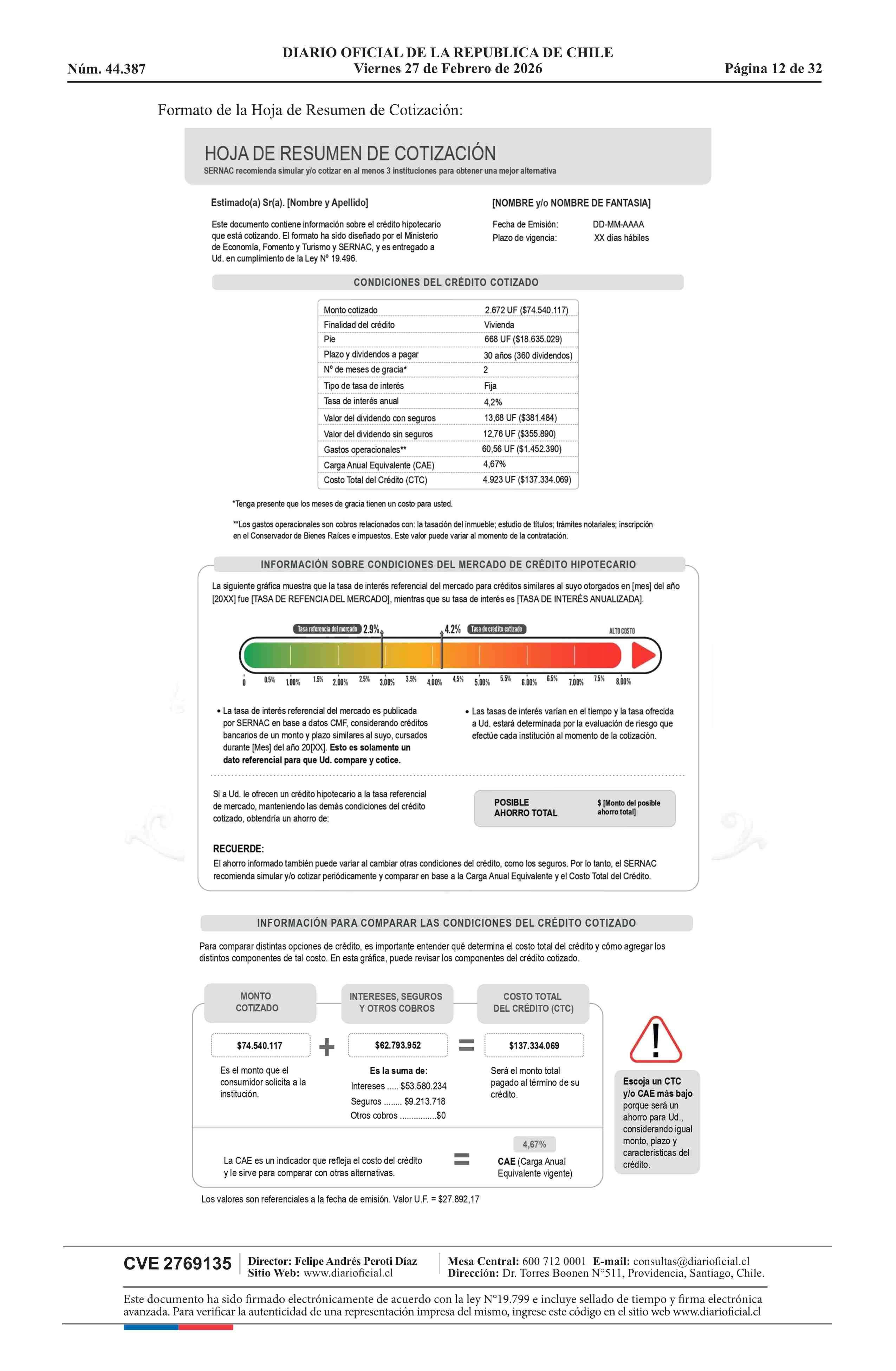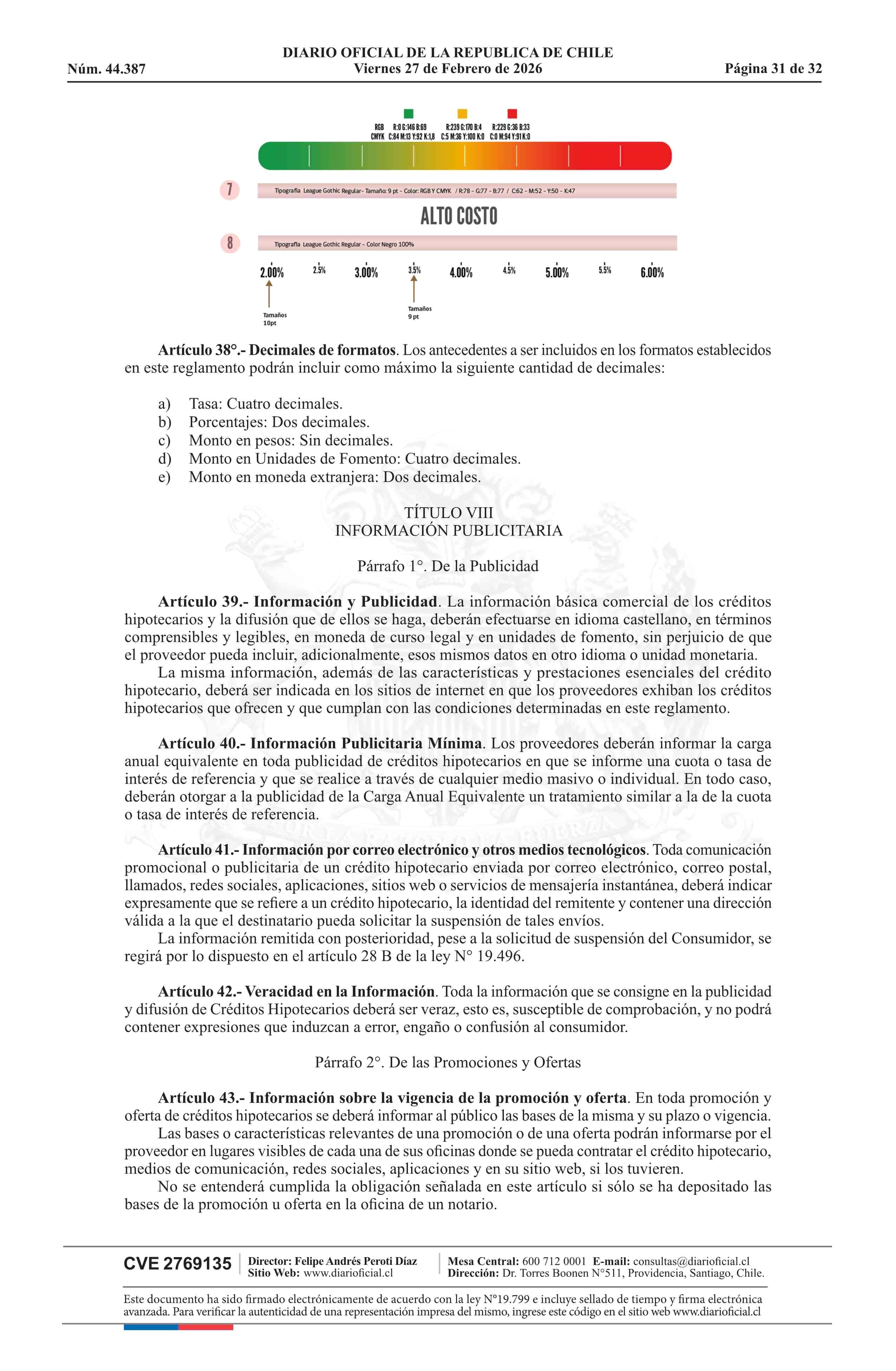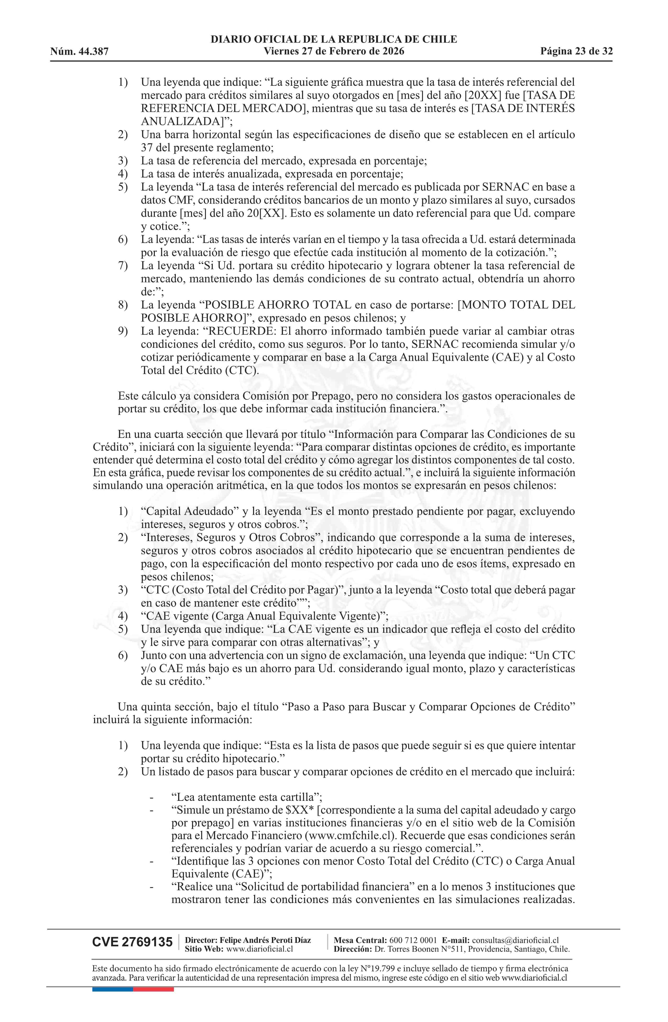 Decreto número 49, de 2024.- Aprueba nuevo Reglamento sobre información al consumidor de créditos hipotecarios y deja sin efecto el decreto N° 42 de 2012 27-02-2026 Diario Oficial Edición Electrónica |