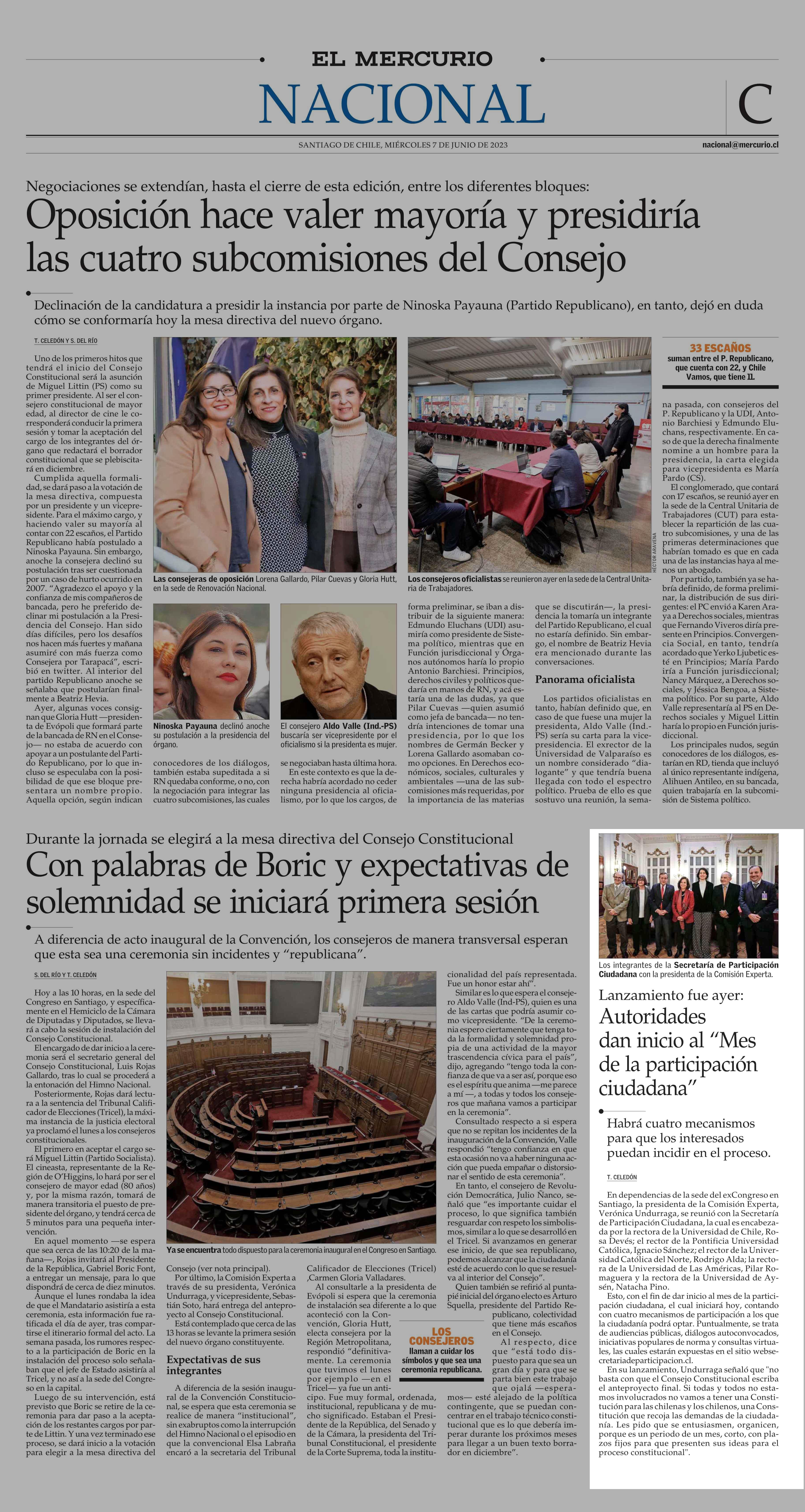 Autoridades dan inicio al “Mes de la participación ciudadana” 07-06-2023 El Mercurio |